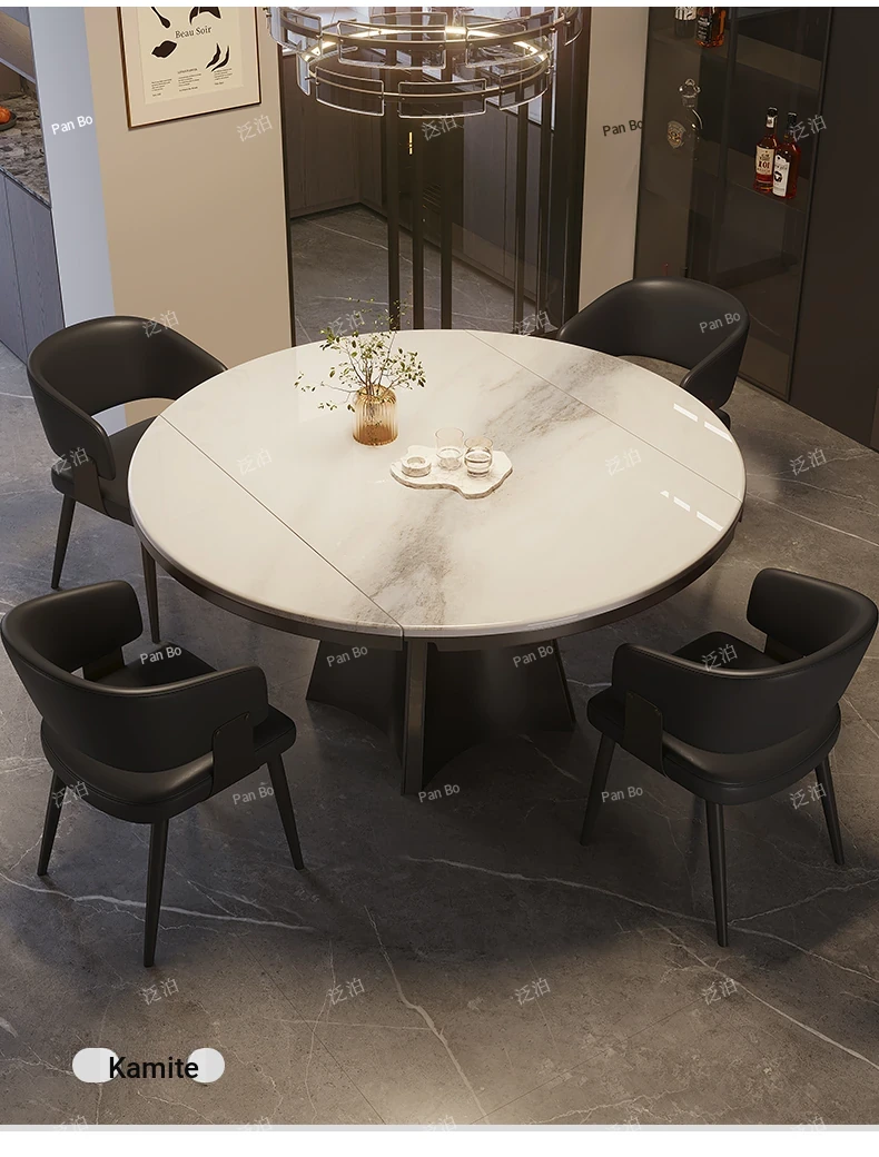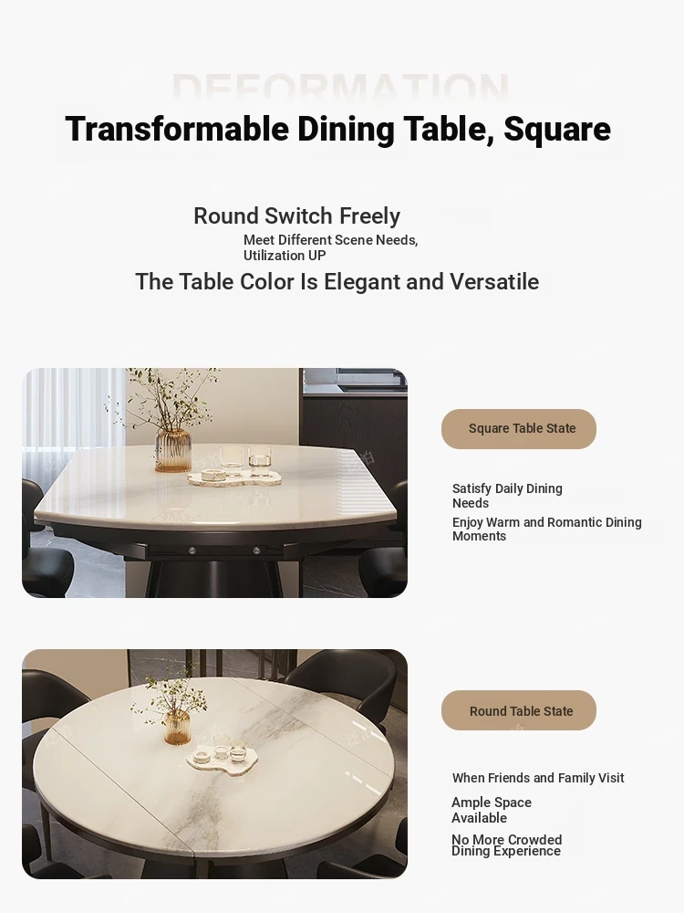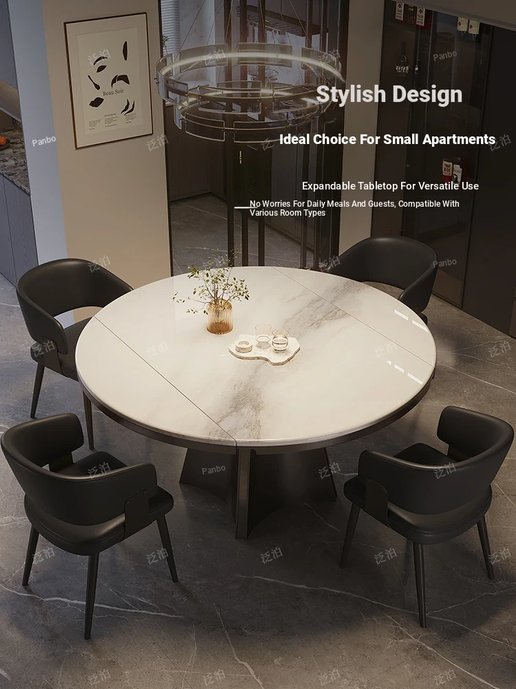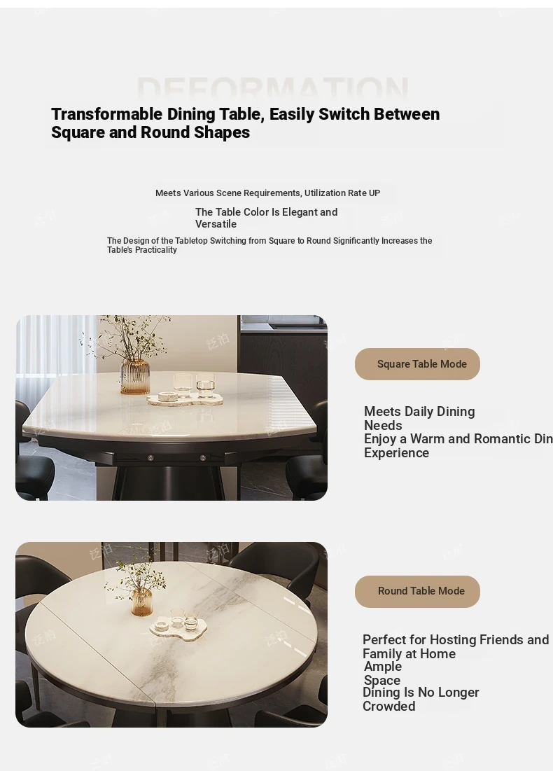 Foldable Expandable Microcrystalline Stone Dining Table - Versatile Rectangular to Round Design for Home, Modern Minimalist Dining Set with Chairs