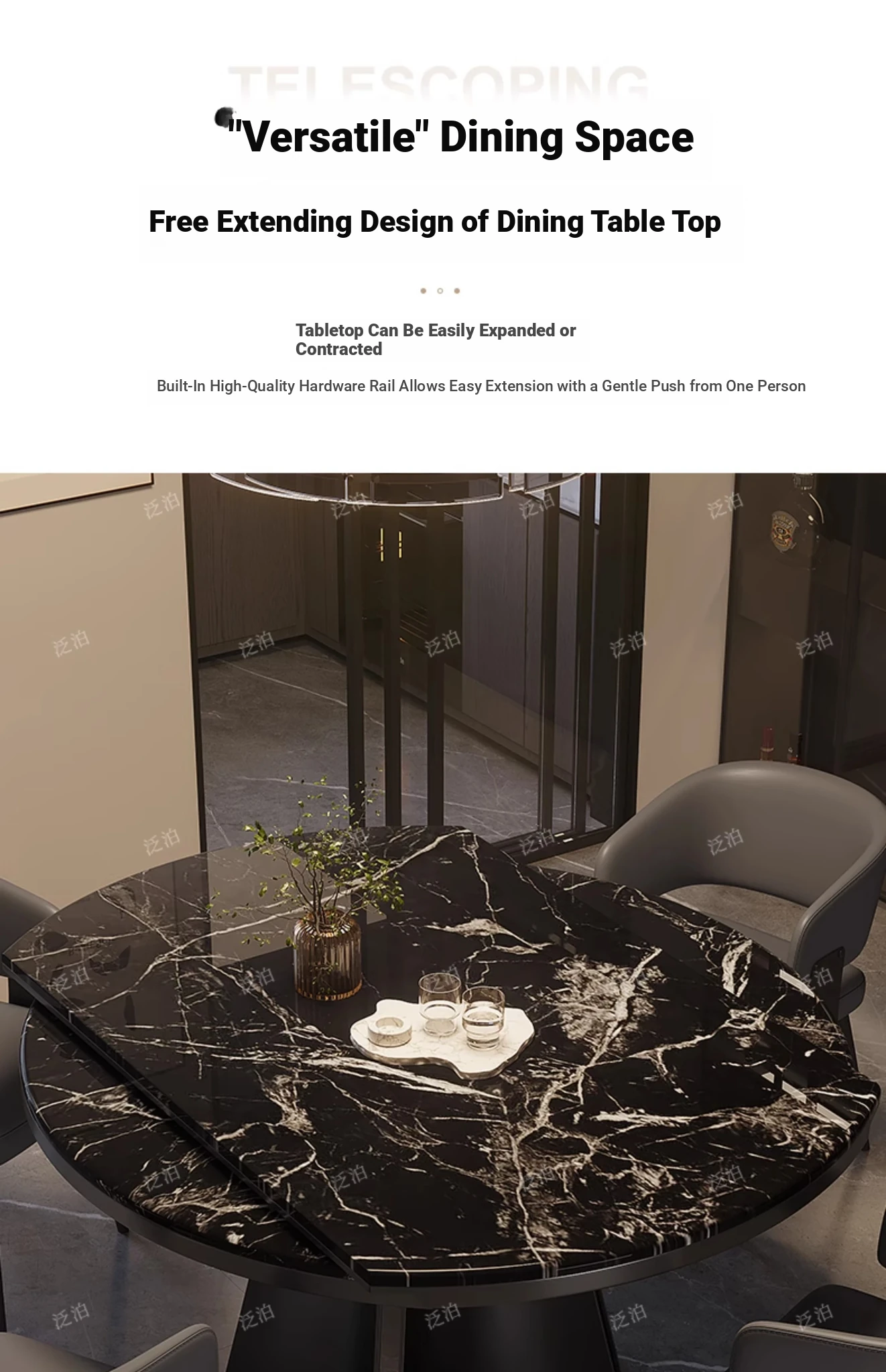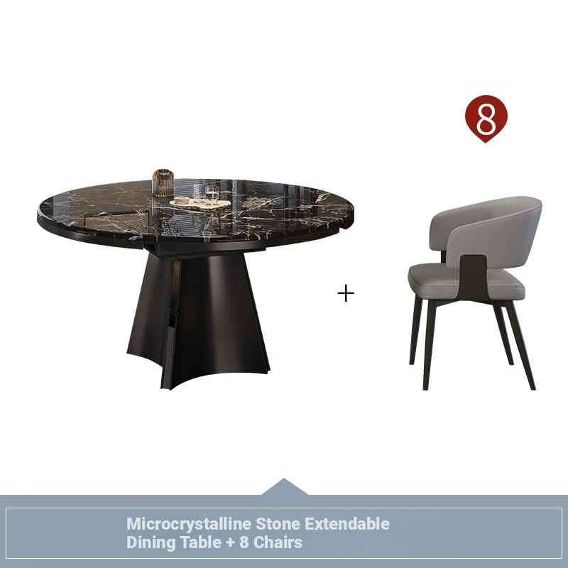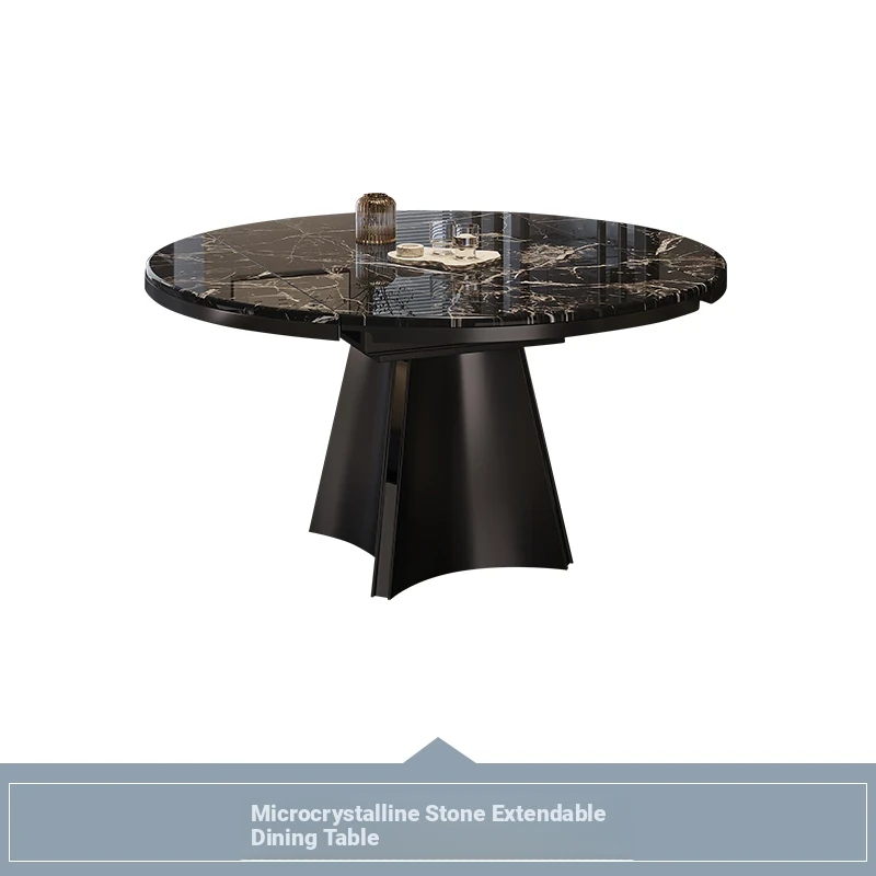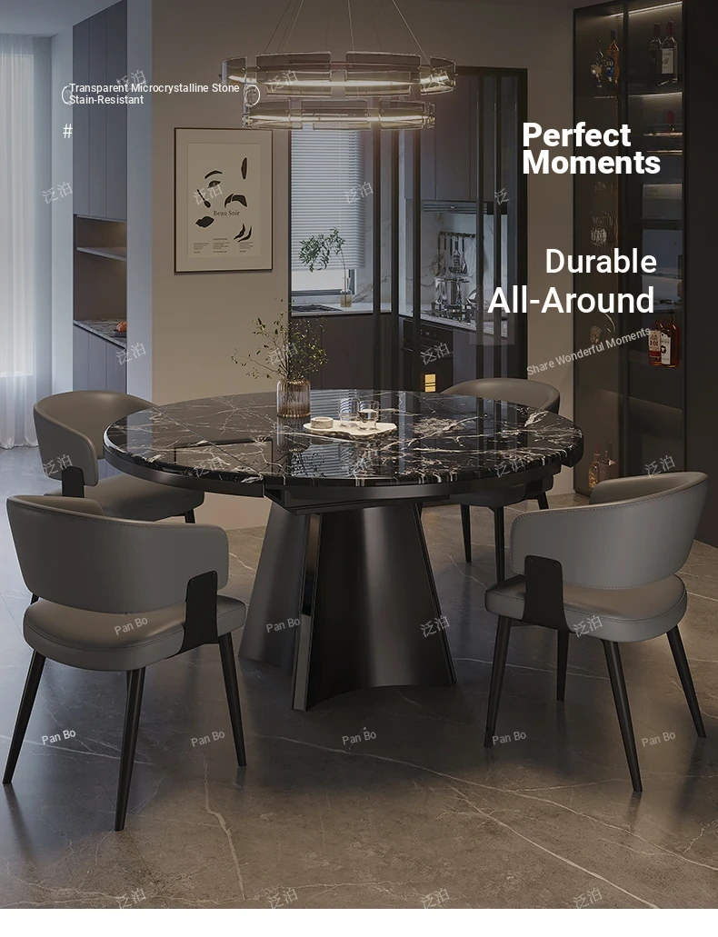 Foldable Expandable Microcrystalline Stone Dining Table - Versatile Rectangular to Round Design for Home, Modern Minimalist Dining Set with Chairs
