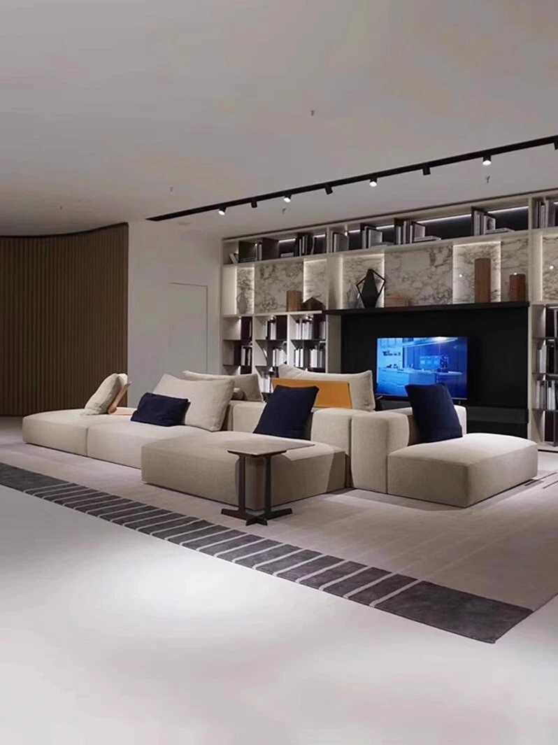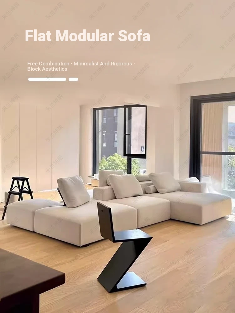 Italian Minimalist Double-Sided Back-to-Back Modular Tofu Sofa - Modern Luxury Square Couch for Spacious Living Rooms