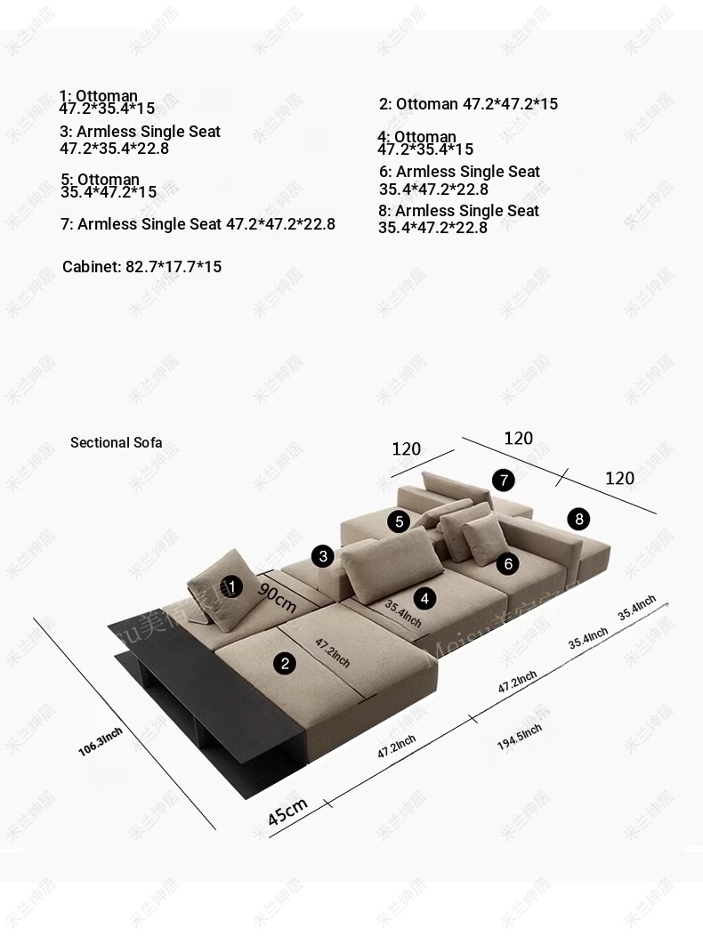 Italian Cream Upholstered Sofa - Modern Minimalist Modular Island Design for Your Living Room, Versatile Tofu Style, Luxurious and Chic Comfort