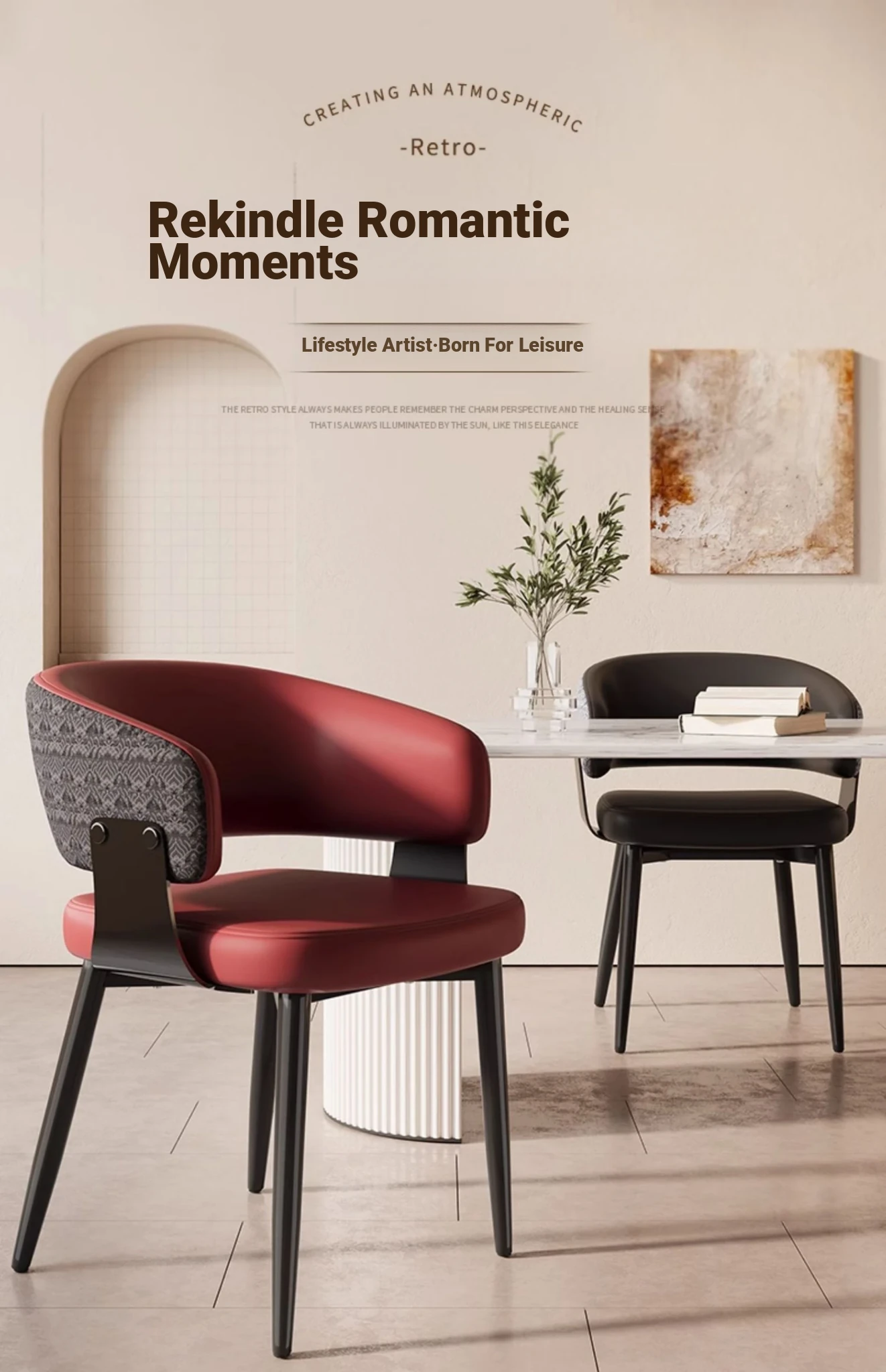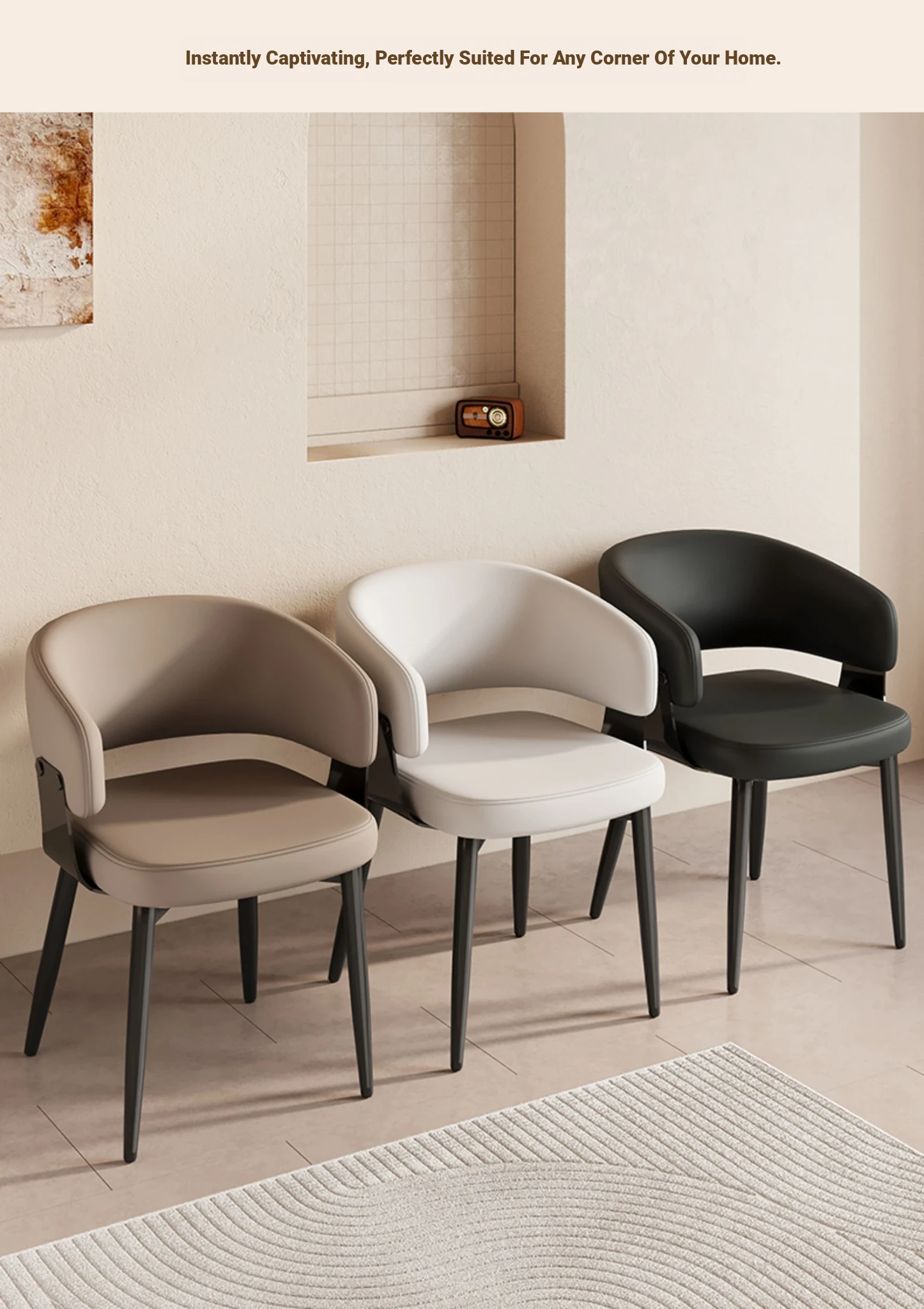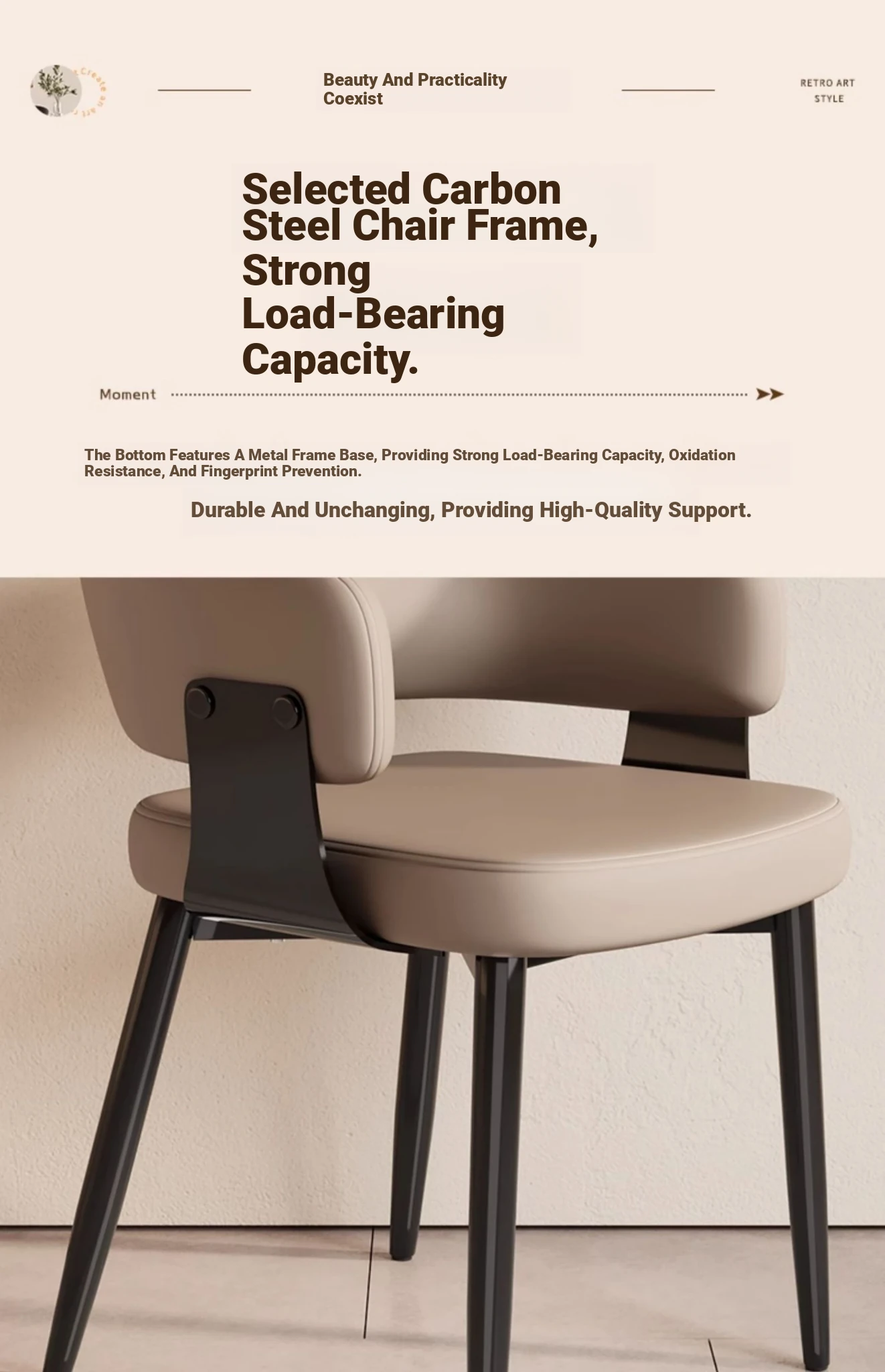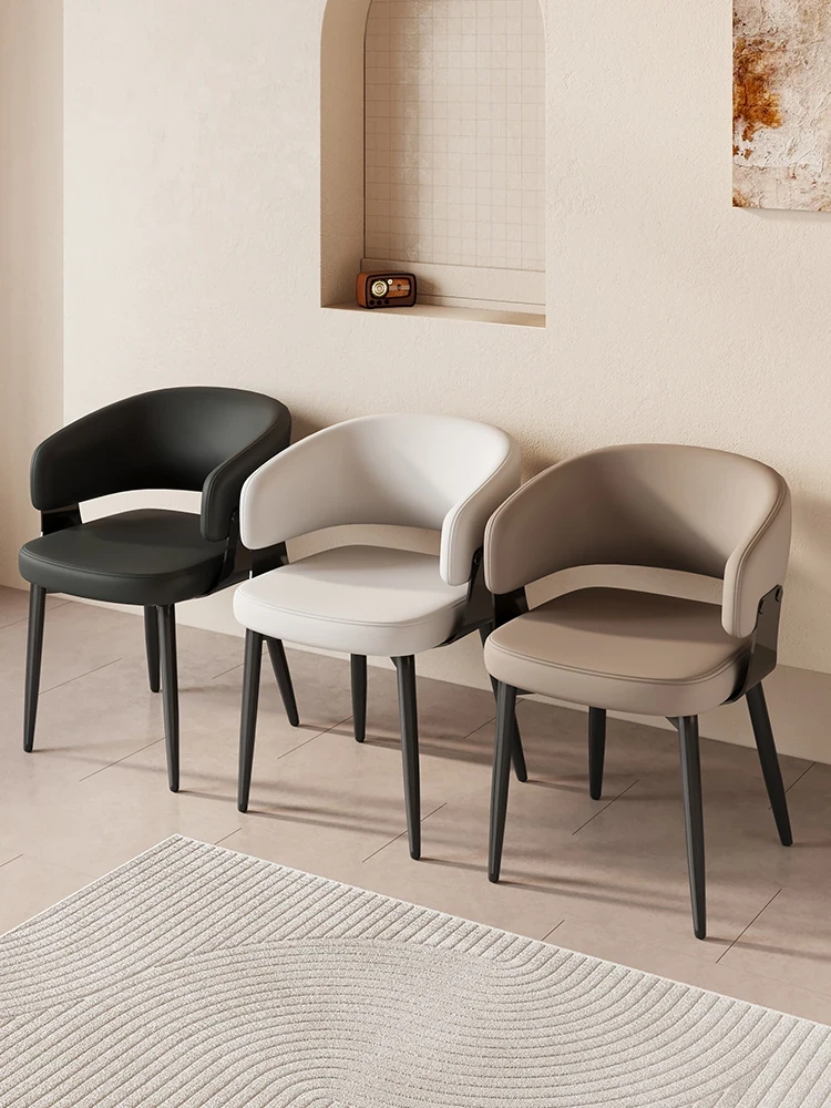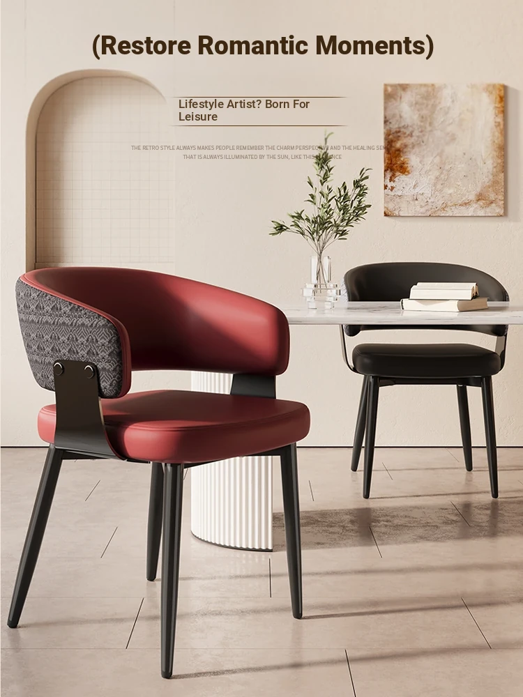 Italian Minimalist Genuine Leather Dining Chair - Modern Simple Design for Home, Stylish Backrest Chair for Hotels, Perfect for Small Spaces and Relaxation.