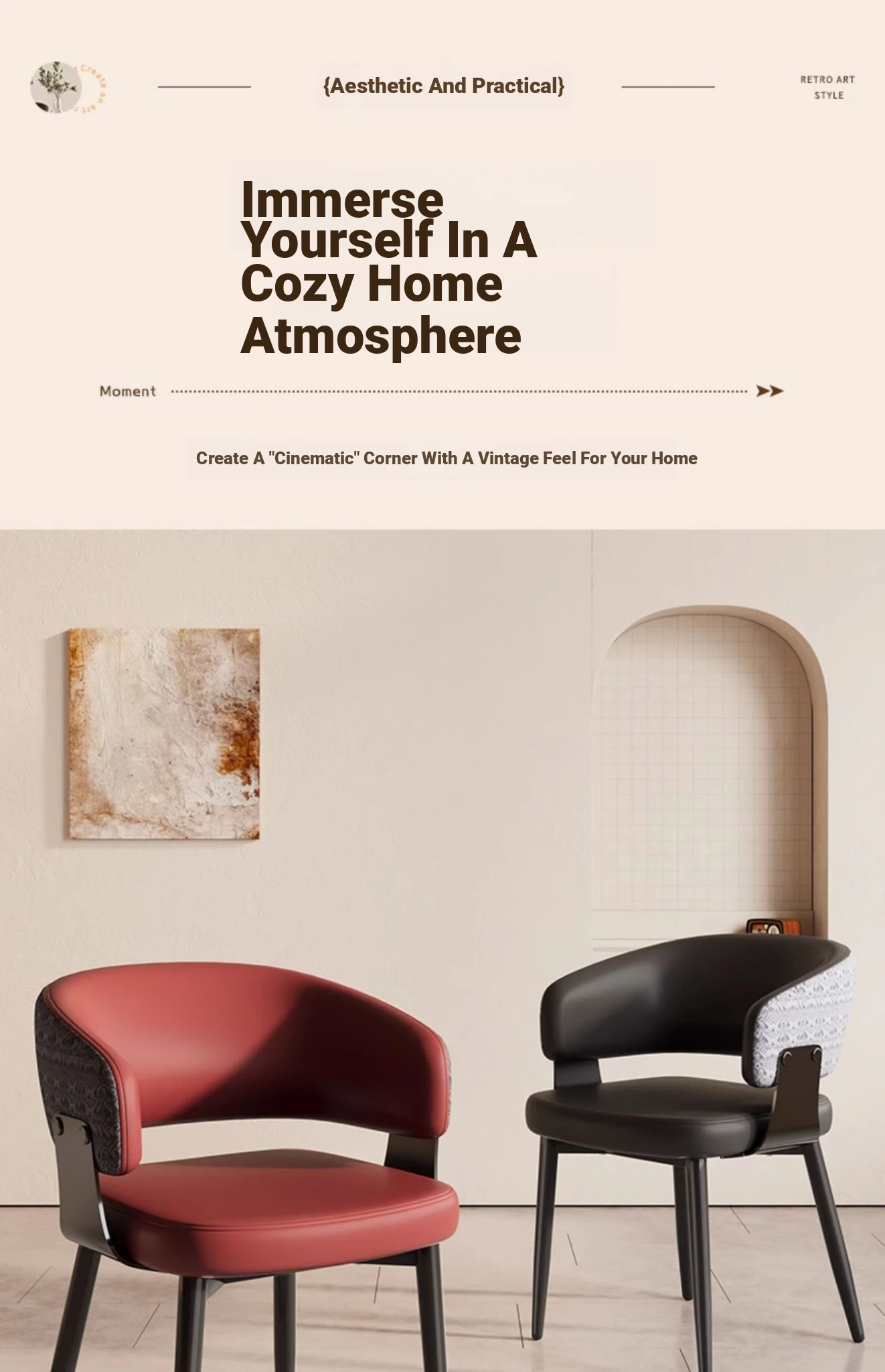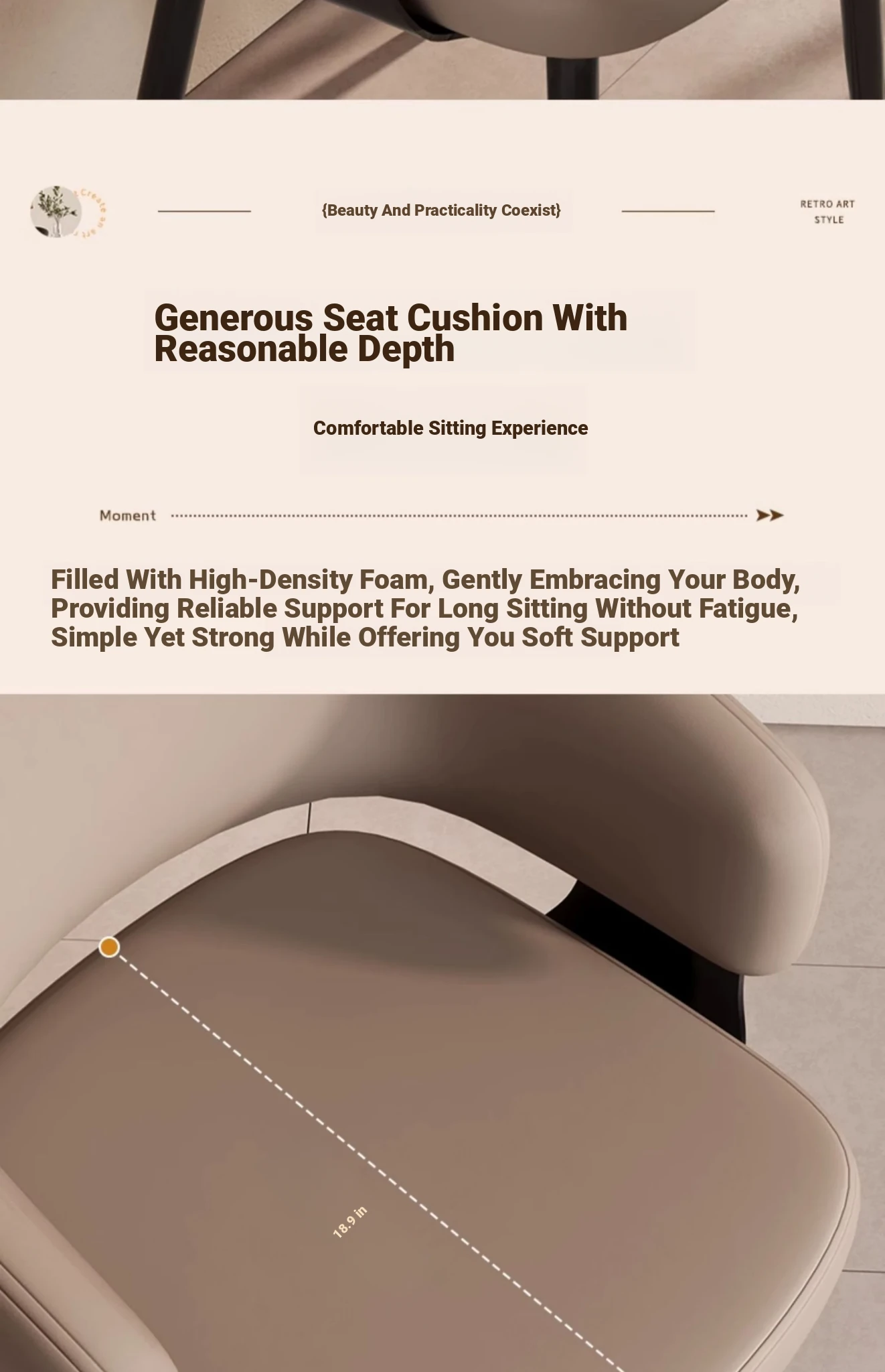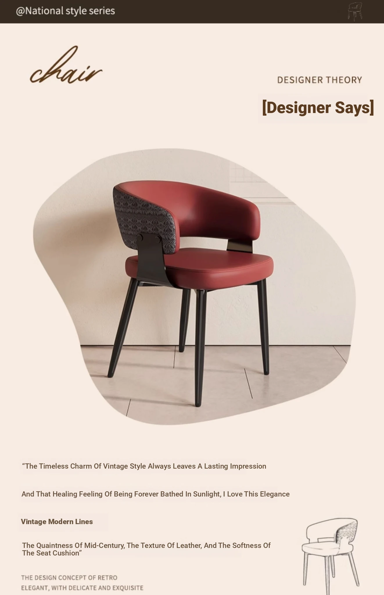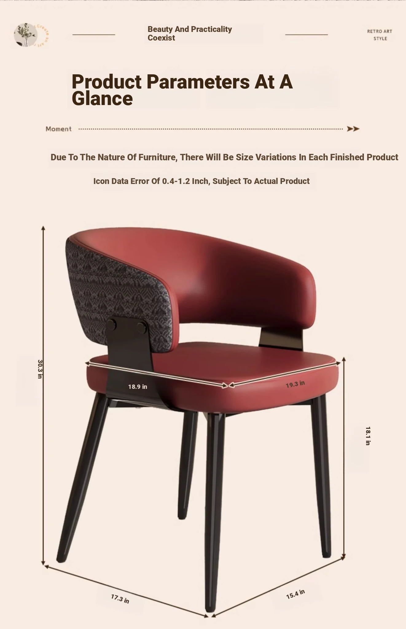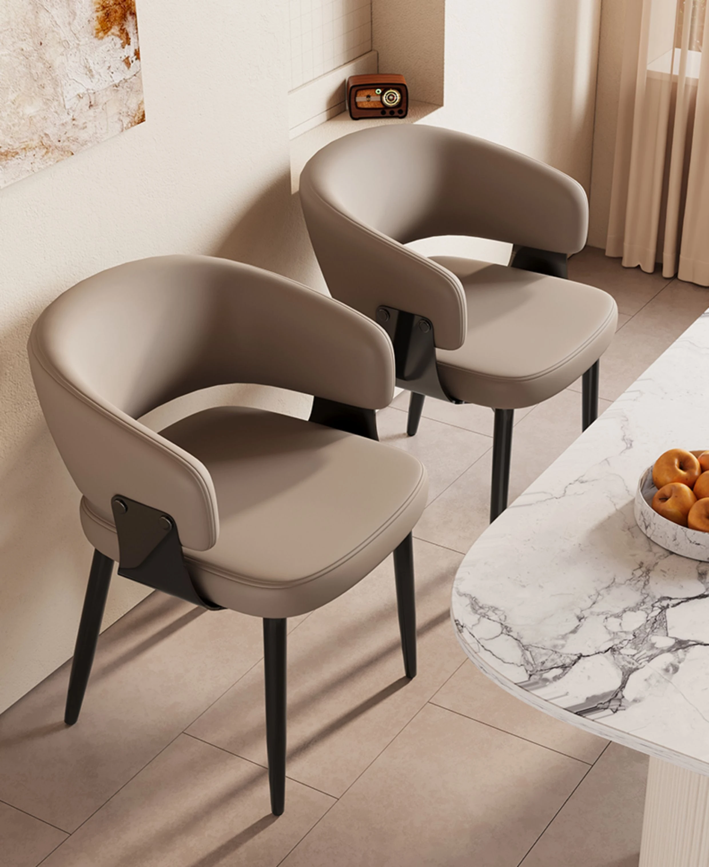 Italian Minimalist Genuine Leather Dining Chair - Modern Simple Design for Home, Stylish Backrest Chair for Hotels, Perfect for Small Spaces and Relaxation.