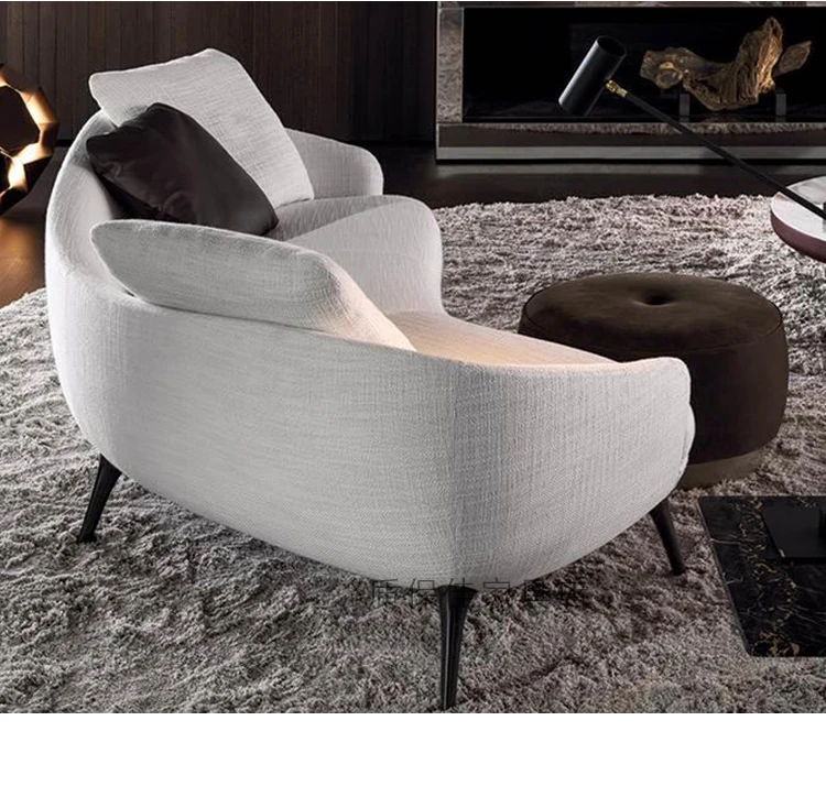 Italian Style Luxury Leather Single Chair - Minimalist Creative Leisure Chair for Small Spaces, Perfect for Balcony or Living Room, Elegant Fabric Art Sofa Chair