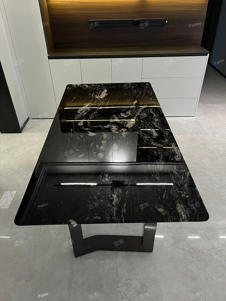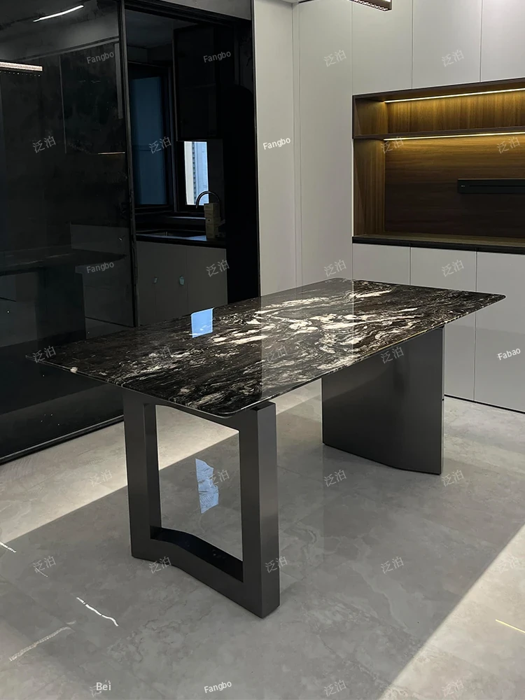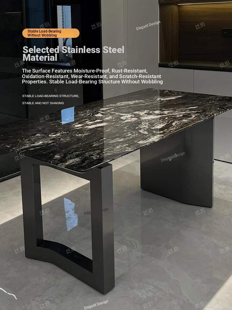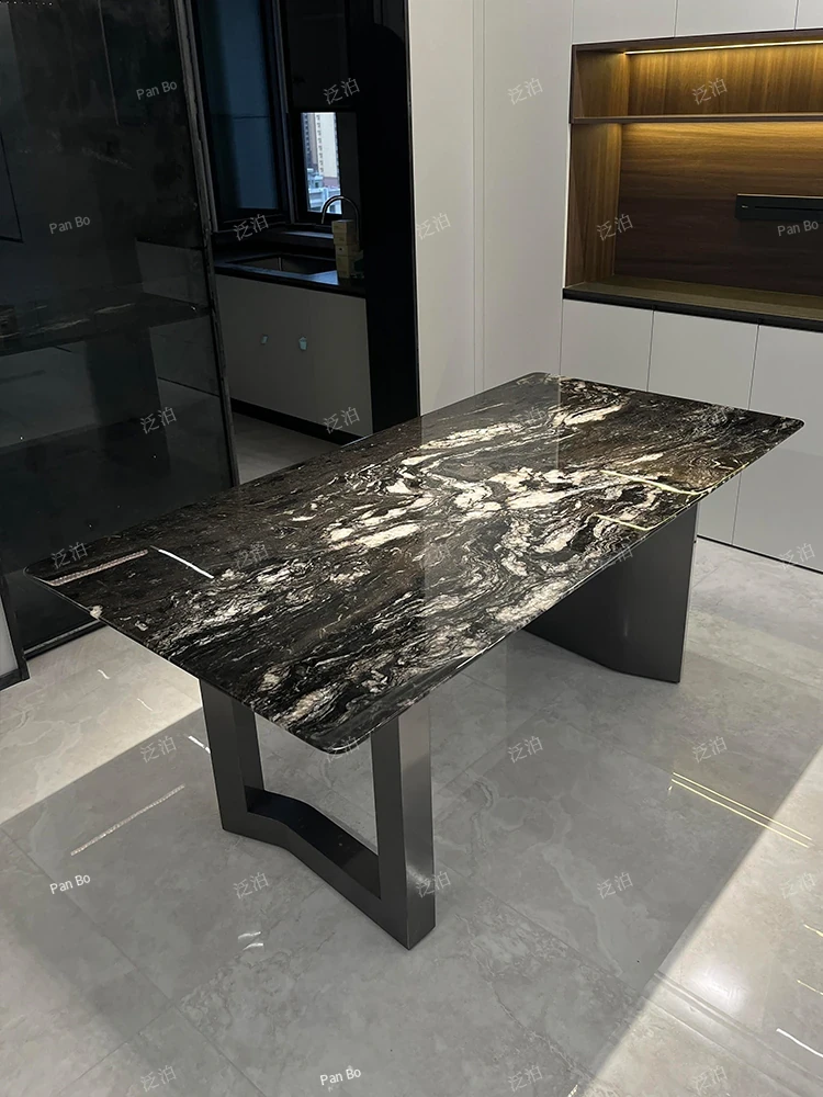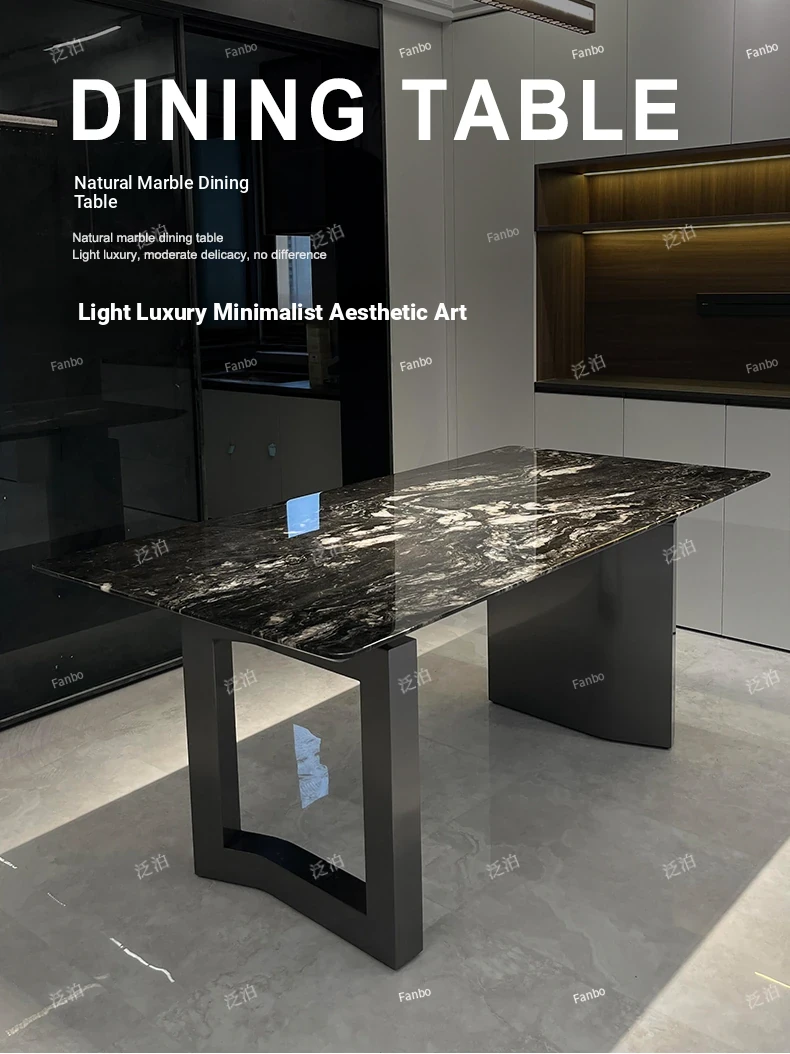Luxury Italian Designer Rectangular Dining Table Set with Natural Imported Marble - Elegant High-End Villa Furniture for Home Dining