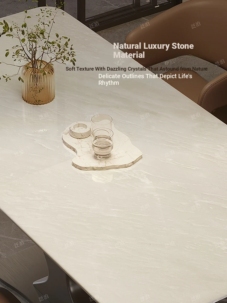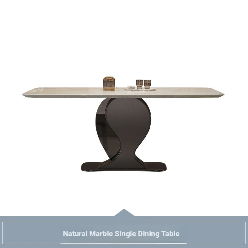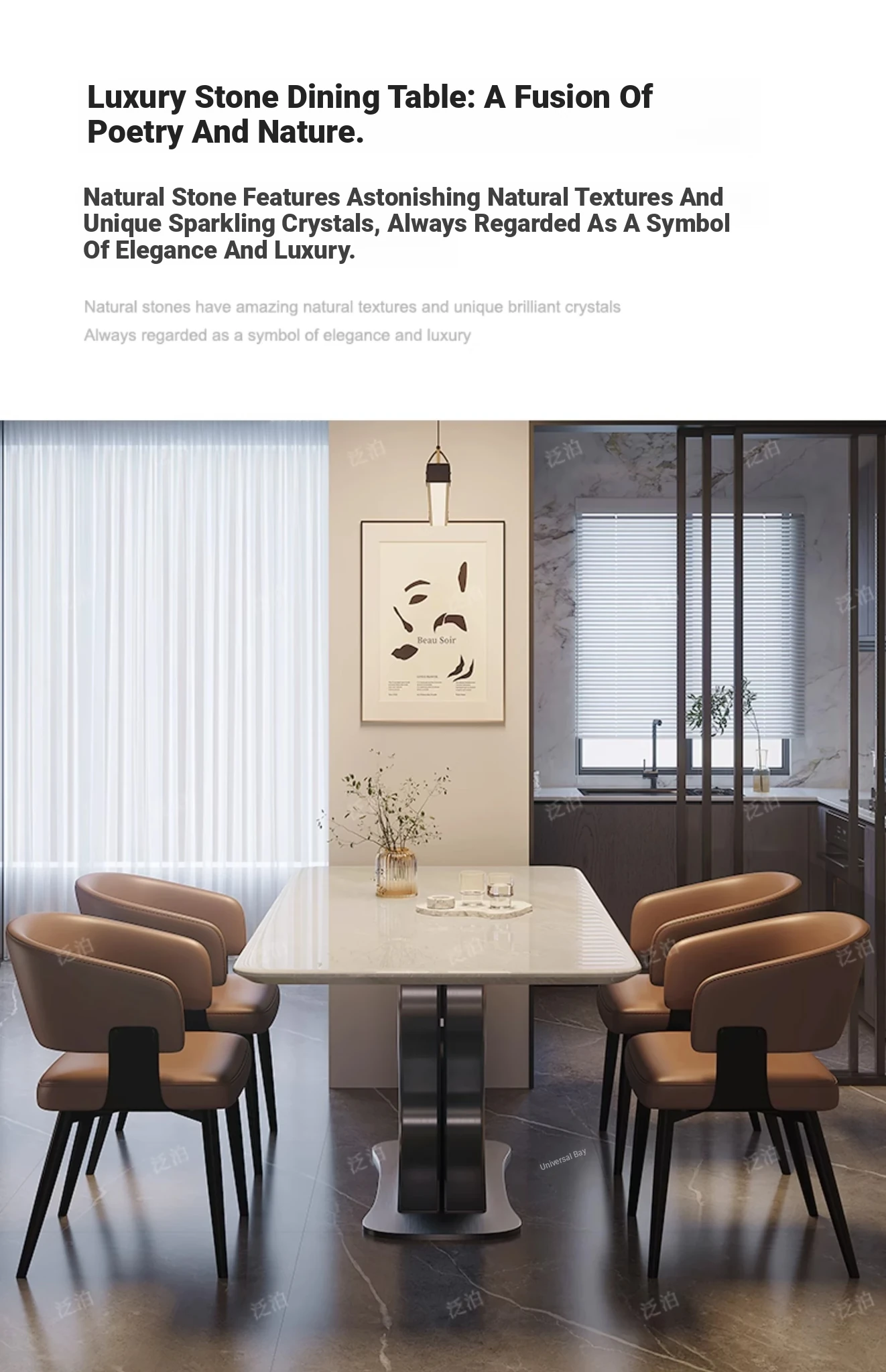 Luxury Natural Marble Dining Table Set - Modern Italian Minimalist Design with High-End Carbon Steel Chairs for a Chic Home Dining Experience
