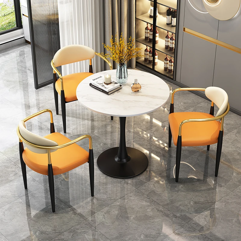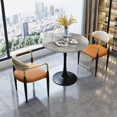 70 round + Orange + [black feet] a table three chairs