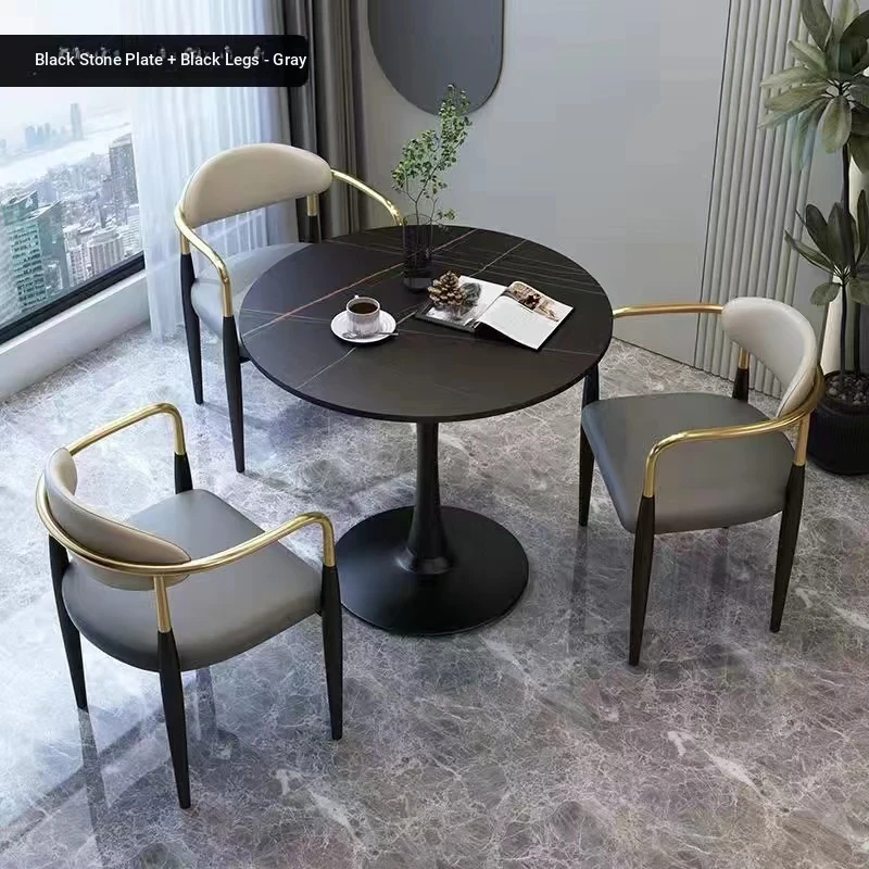 70 round + Gray + [black feet] a table three chairs