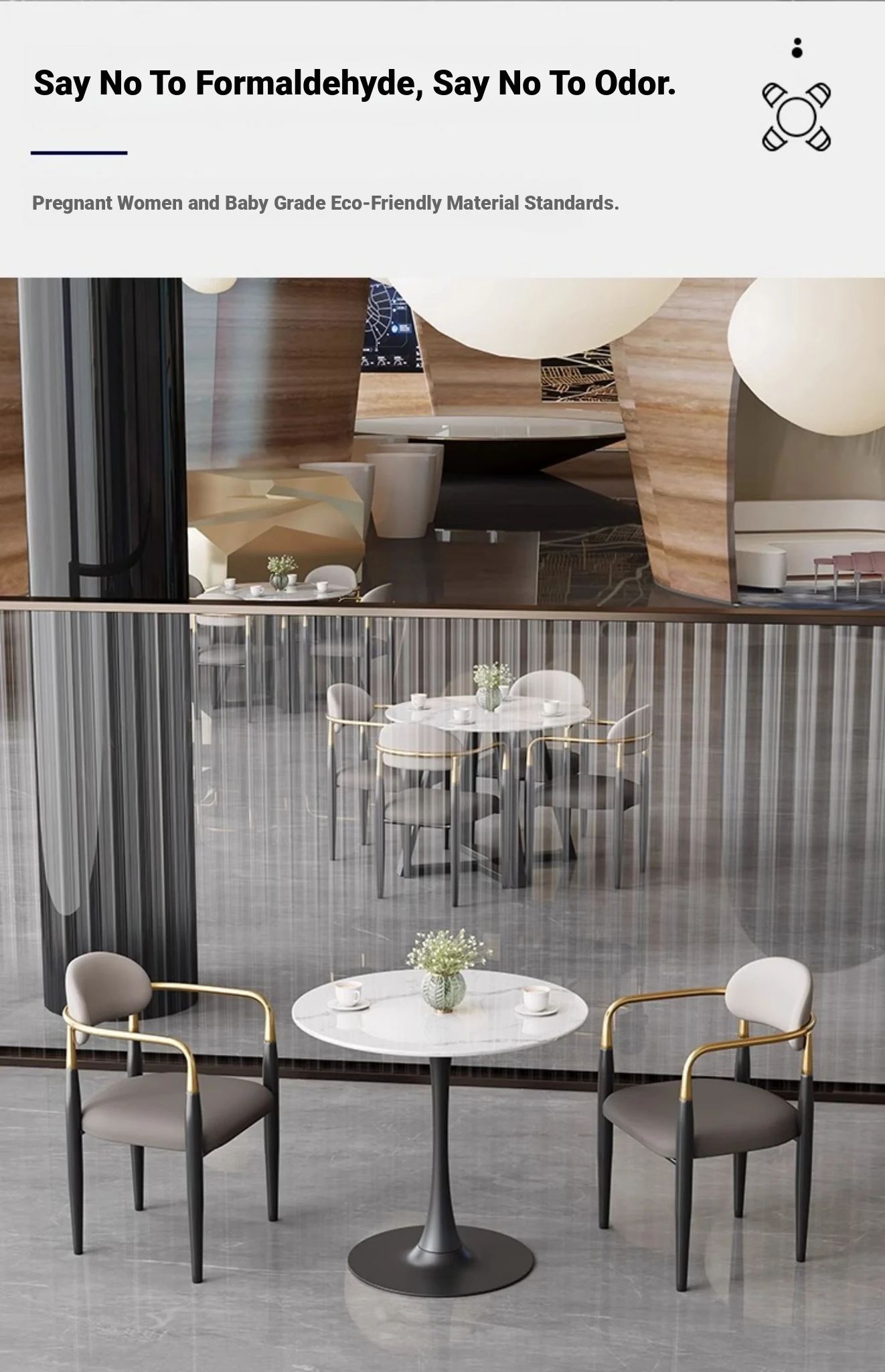 80 round + Gray + [black feet a table three chairs]]