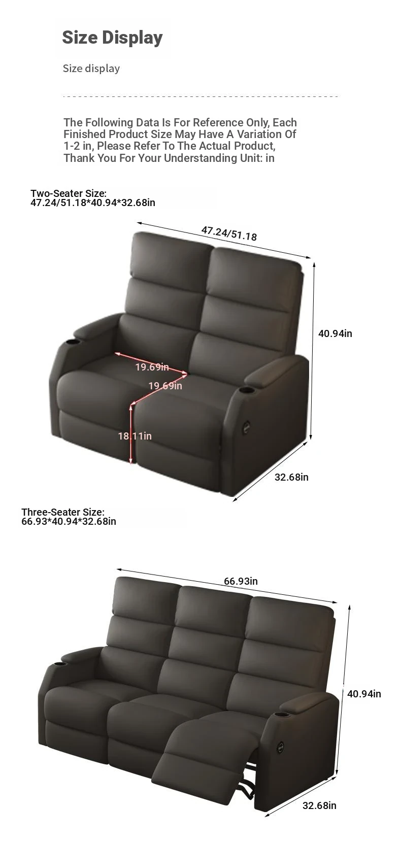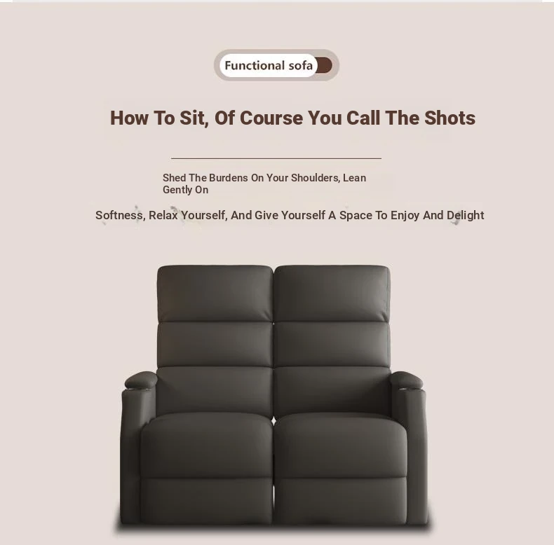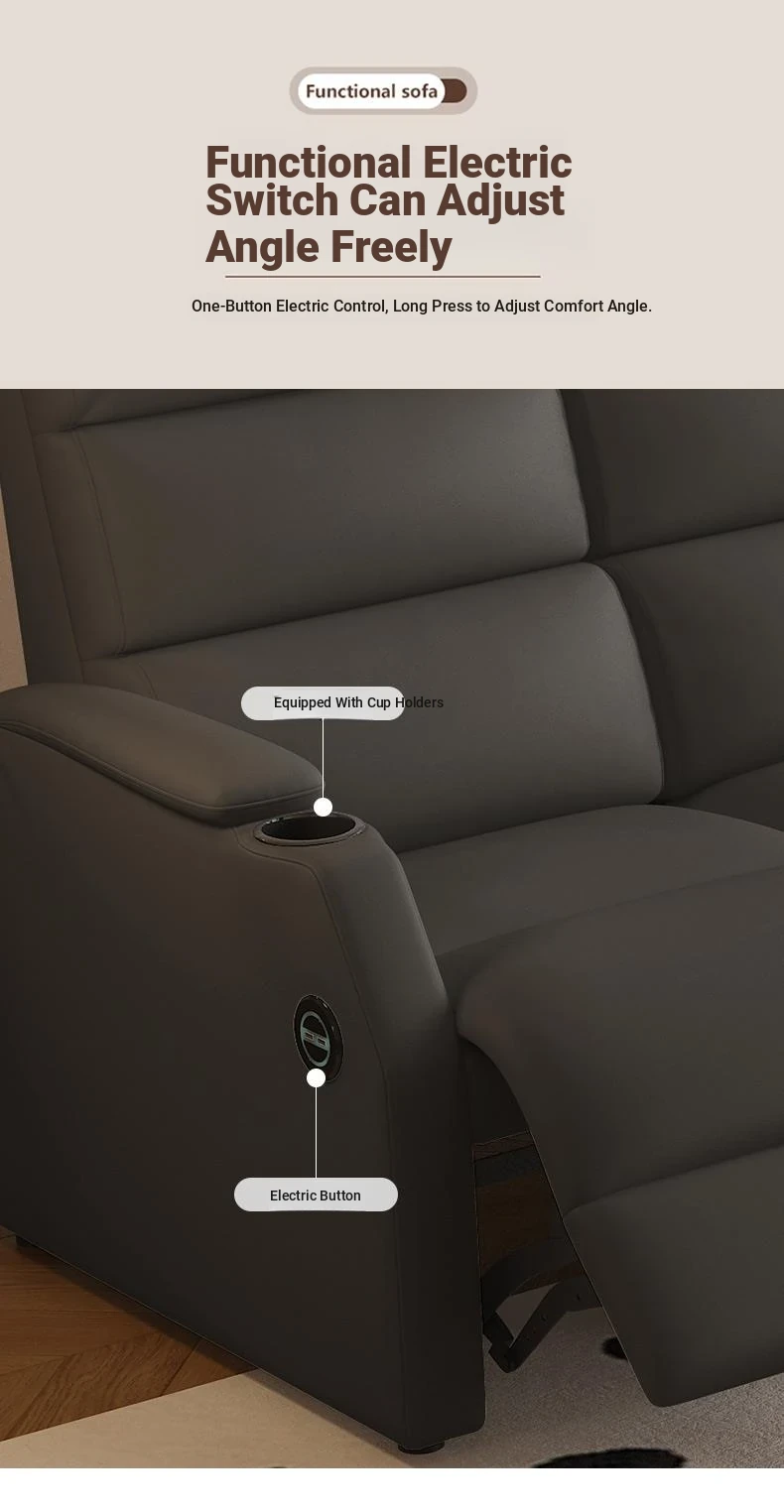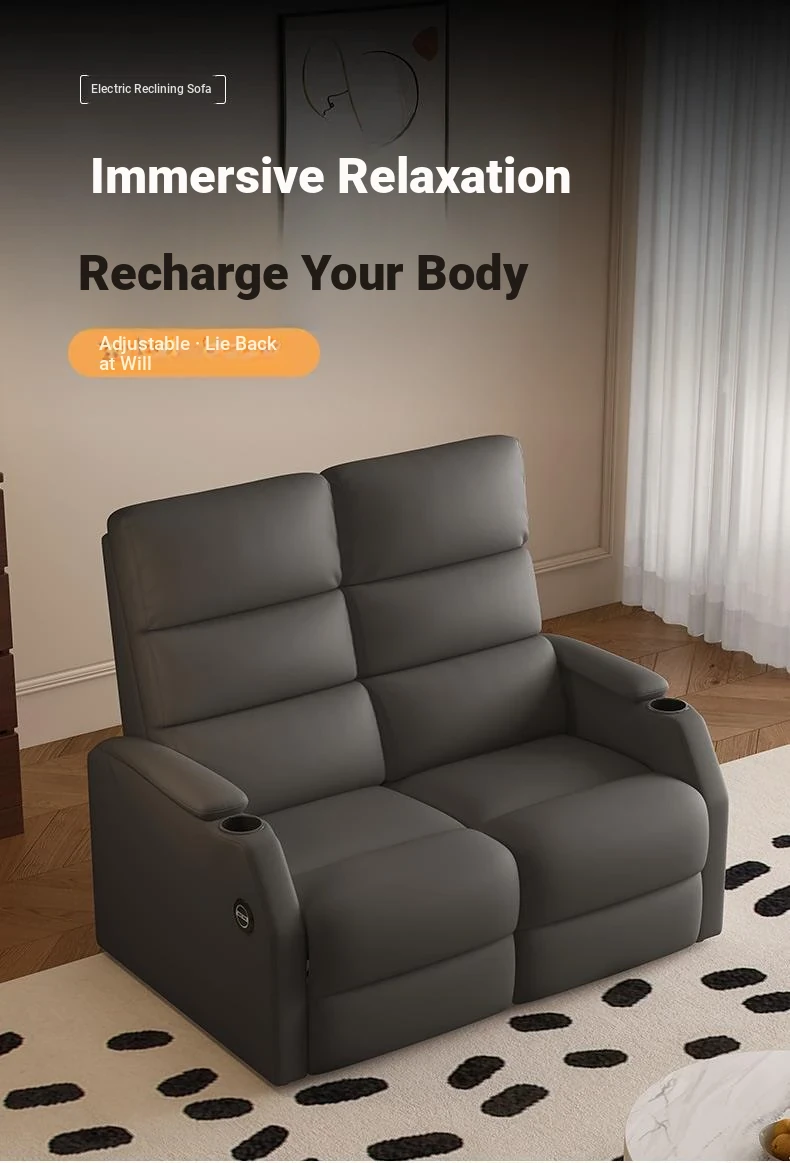 Mini Electric Reclining Sofa for Living Room & Bedroom - Stylish Compact Genuine Leather Sofa for Small Spaces, 1.2m Double 3-Seater - Perfect for Modern Homes!