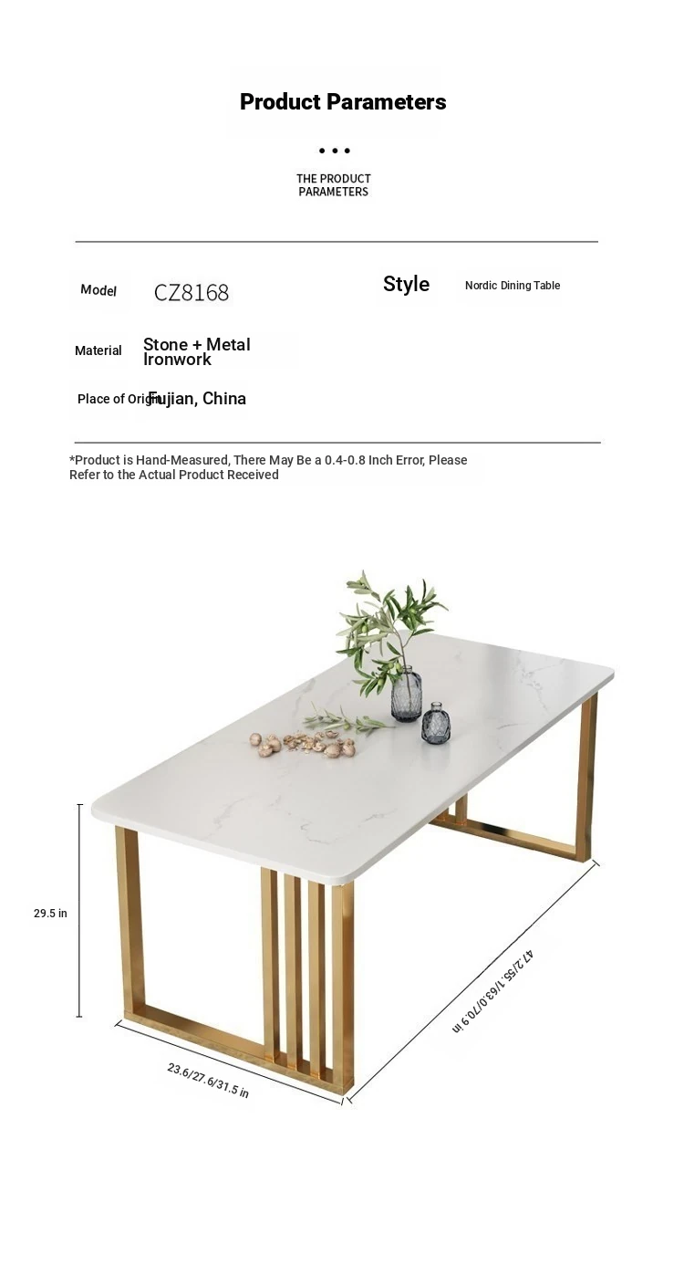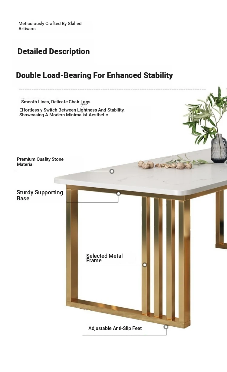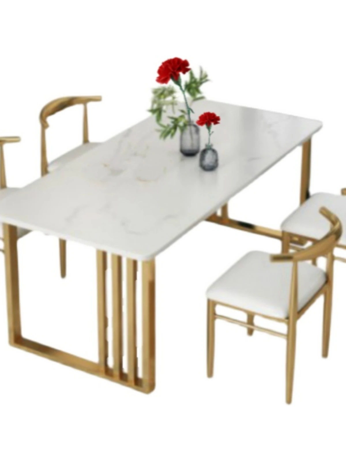 A gold frame rock plate dining table 47.24in*23.62in*29.53in single table needs to be installed separately