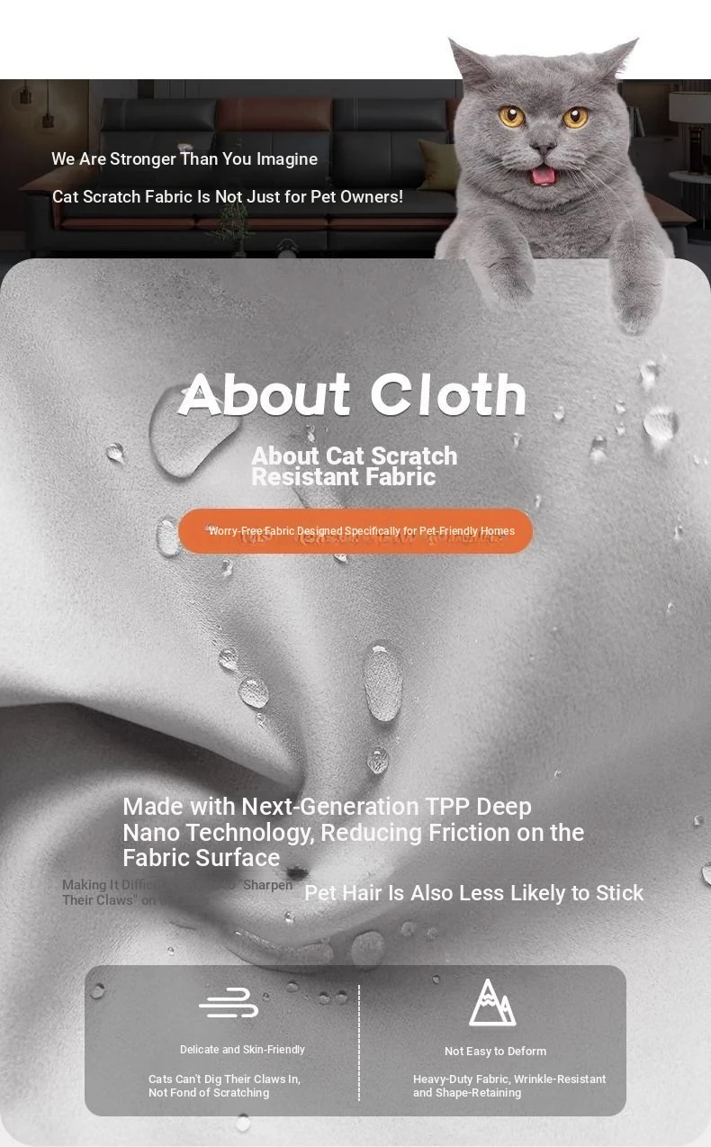 New Italian Minimalist Cat Scratch Fabric Sofa - Modern and Simple Chaise Lounge for Living Room, Perfect for Any Size Home