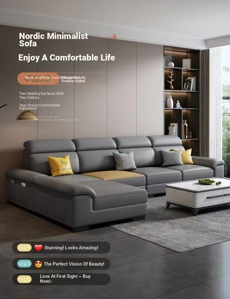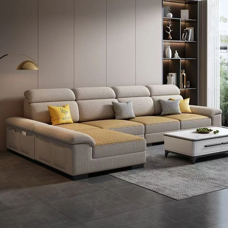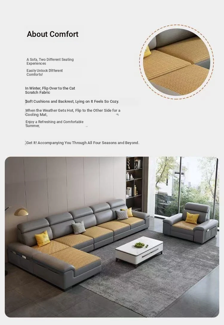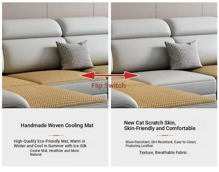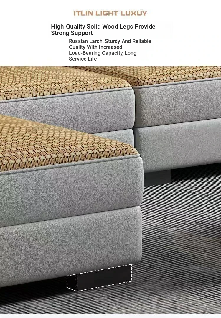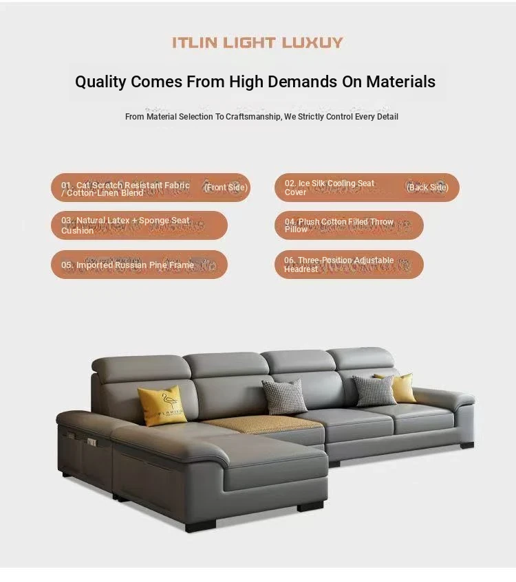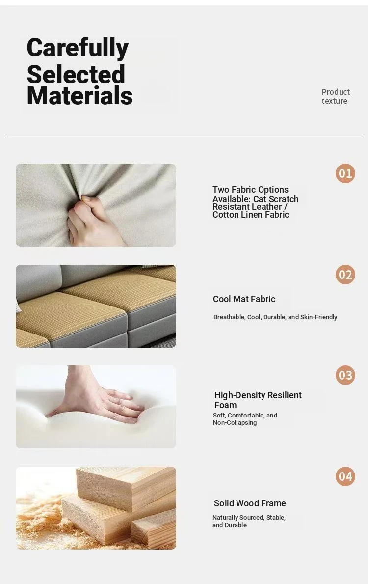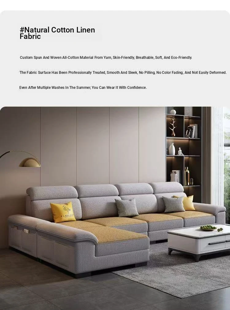 New Nordic Style Dual-Use Latex Sofa for Winter and Summer - Cotton Linen Fabric, Straight Chaise Lounge Combination, Cat Scratch Resistant Upholstery for Living Room