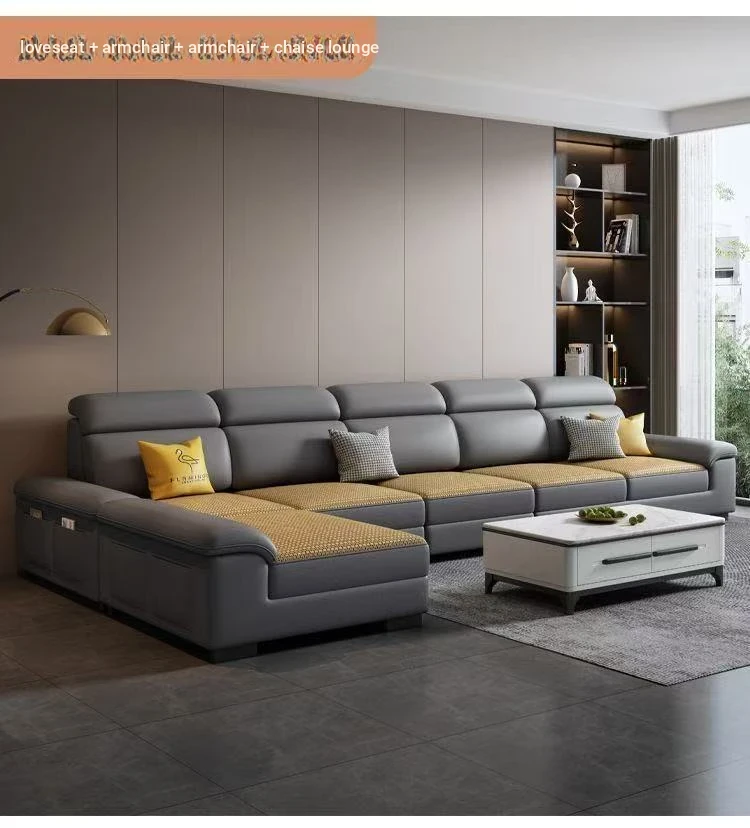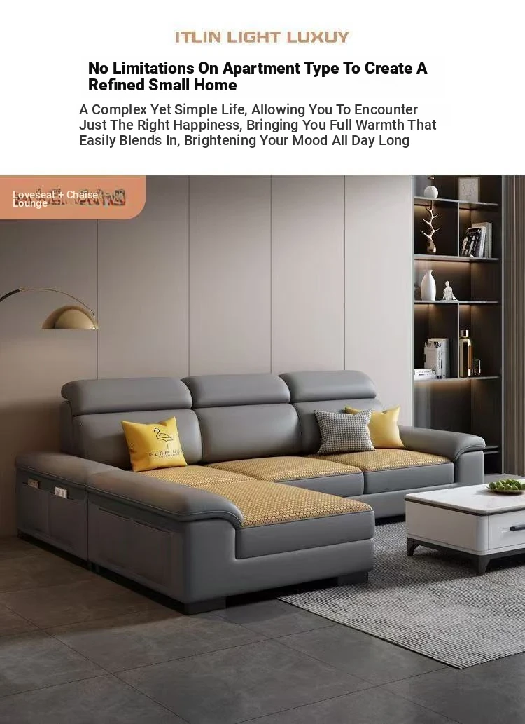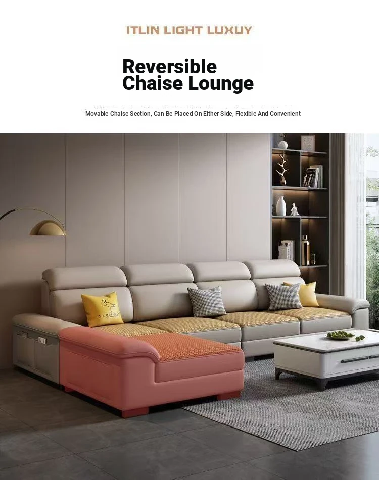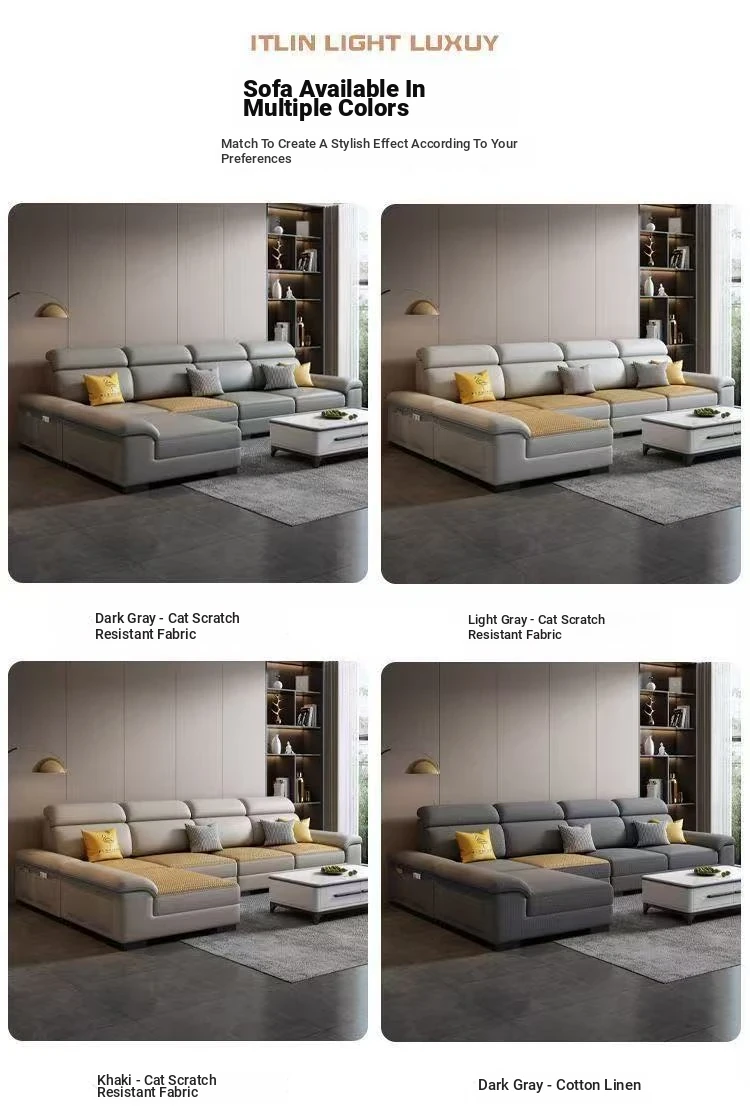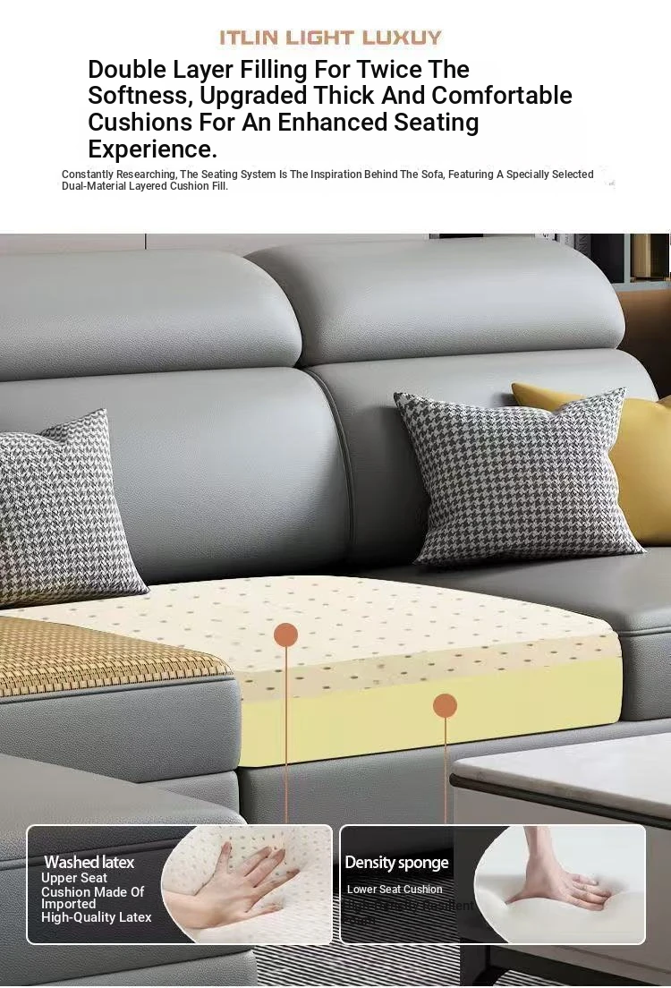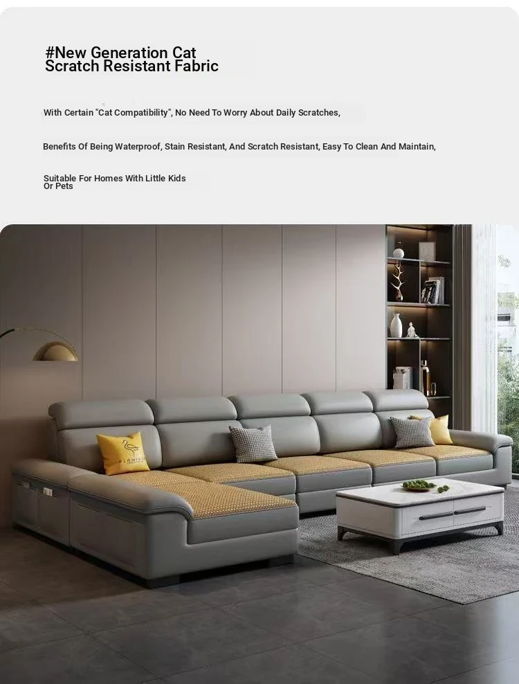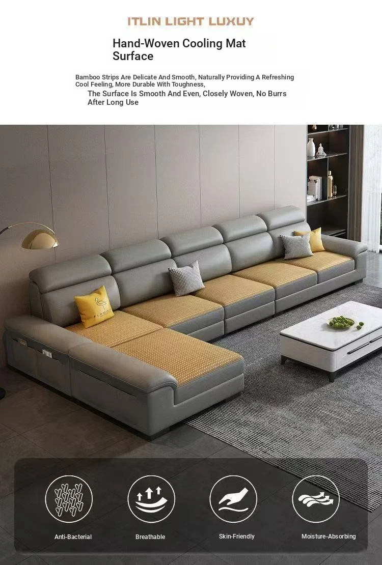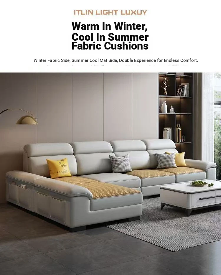 New Nordic Style Dual-Use Latex Sofa for Winter and Summer - Cotton Linen Fabric, Straight Chaise Lounge Combination, Cat Scratch Resistant Upholstery for Living Room