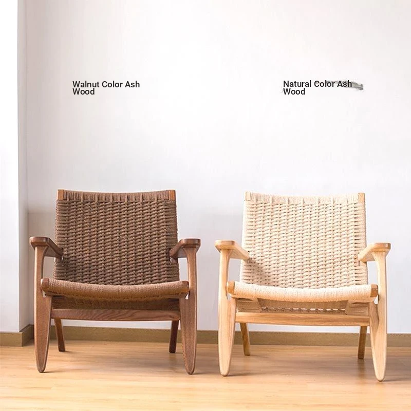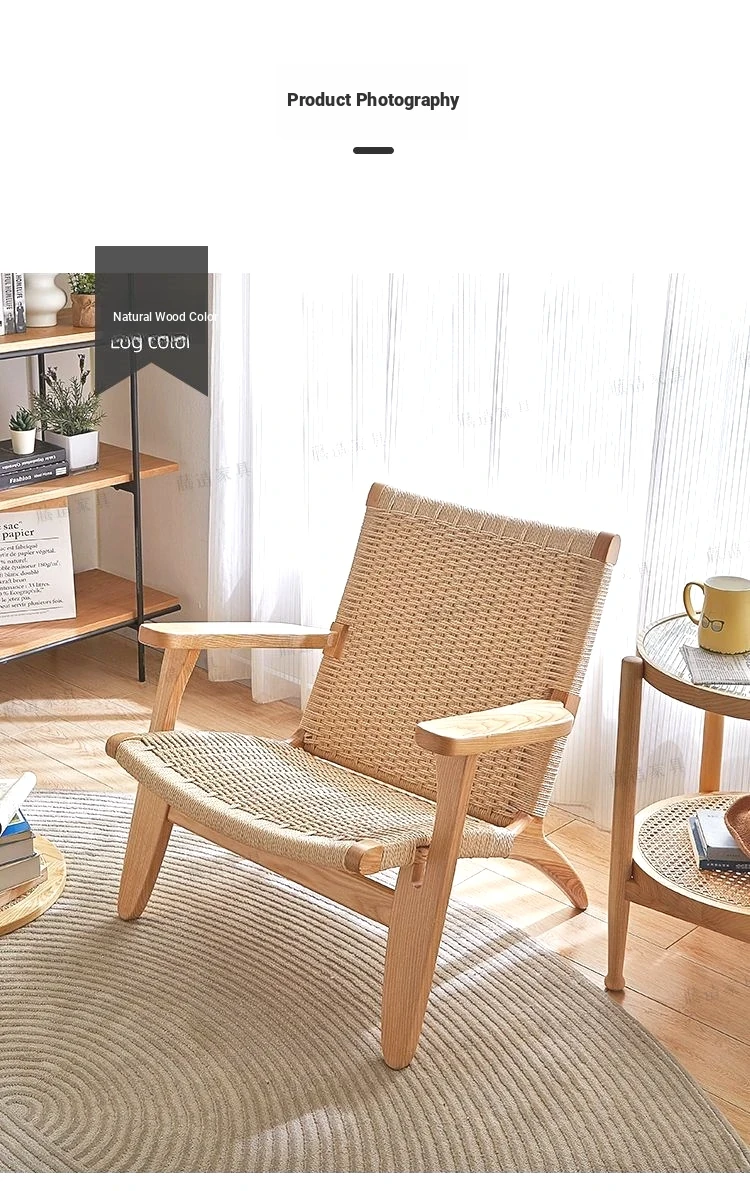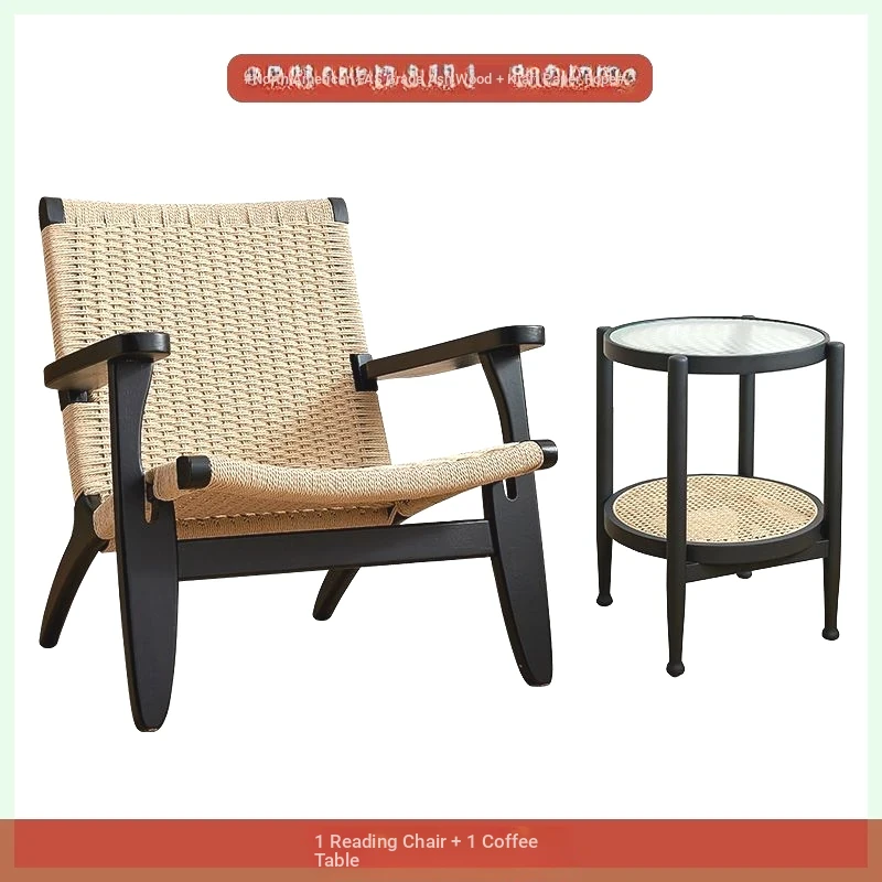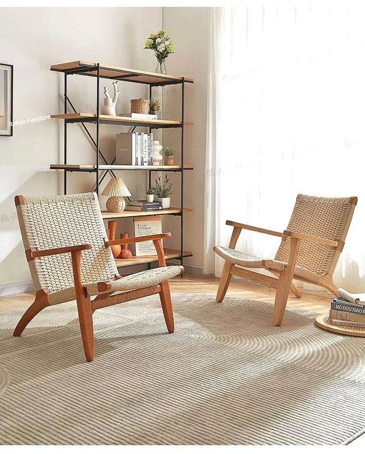 Nordic Solid Wood Rattan Chair - Stylish Recliner for Living Room, Bedroom, and Balcony - Comfortable Single Sofa with Backrest for Home Use