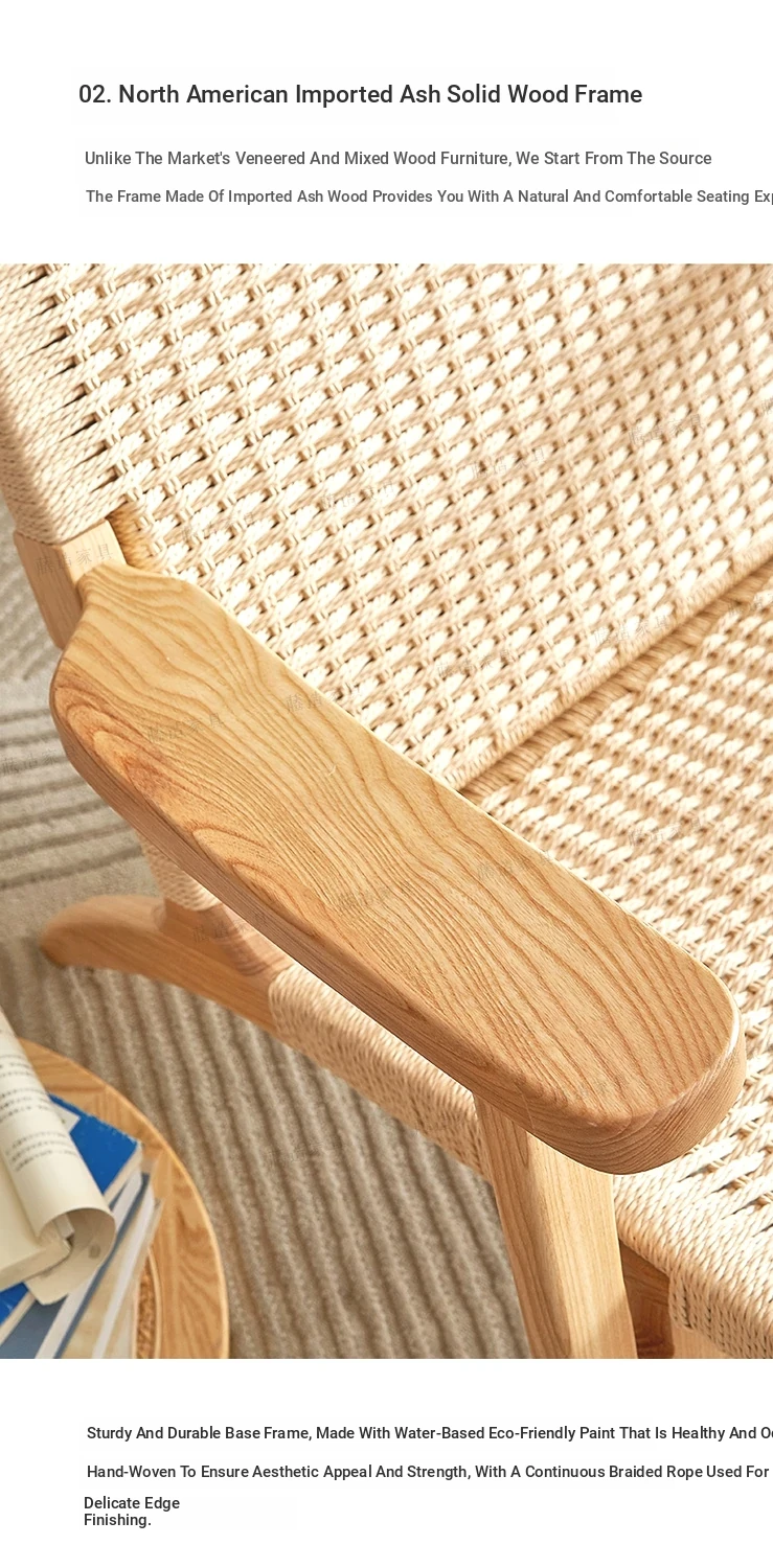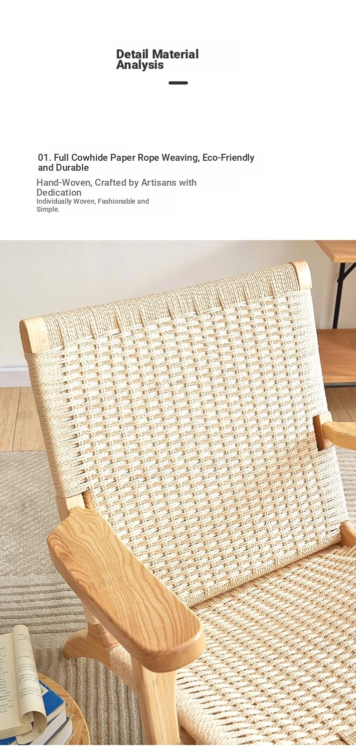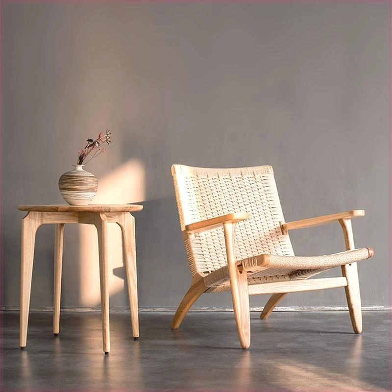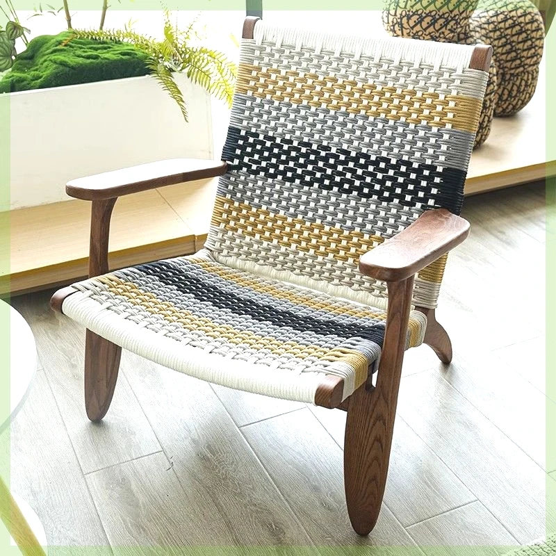 Nordic Solid Wood Rattan Chair - Stylish Recliner for Living Room, Bedroom, and Balcony - Comfortable Single Sofa with Backrest for Home Use
