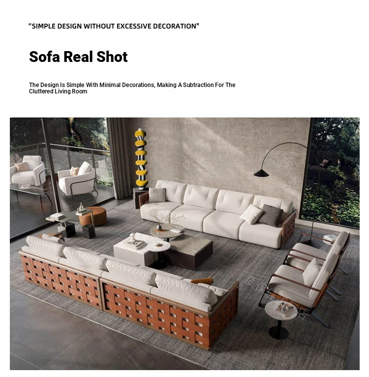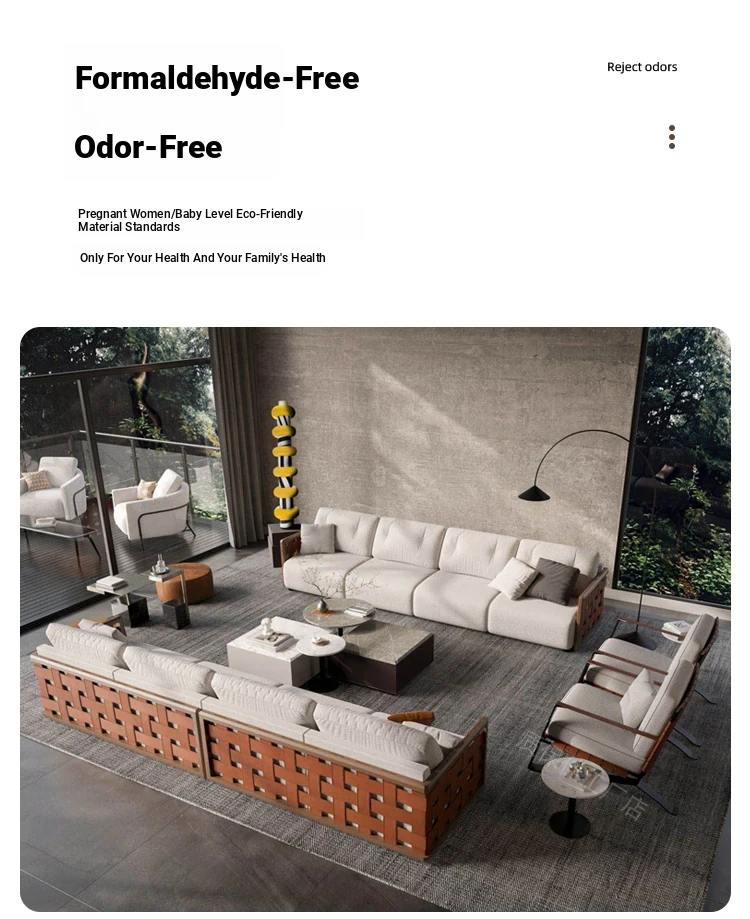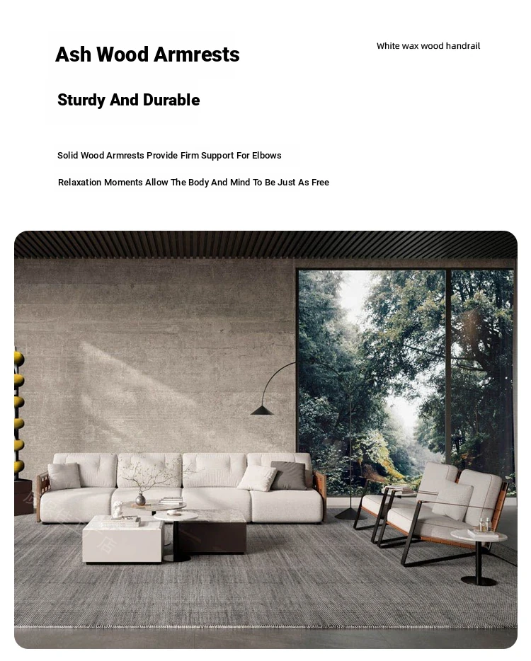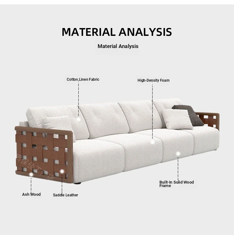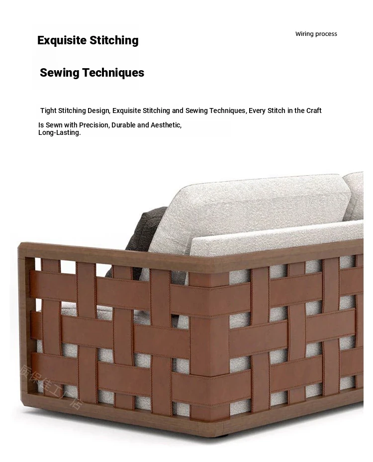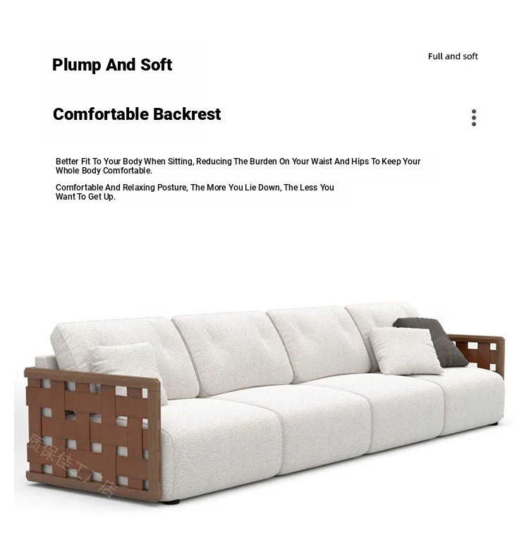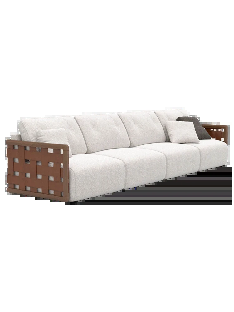 Premium Quality Italian Minimalist Villa Flat High-End Solid Wood Sofa for Four - Creative Designer Living Room Furniture