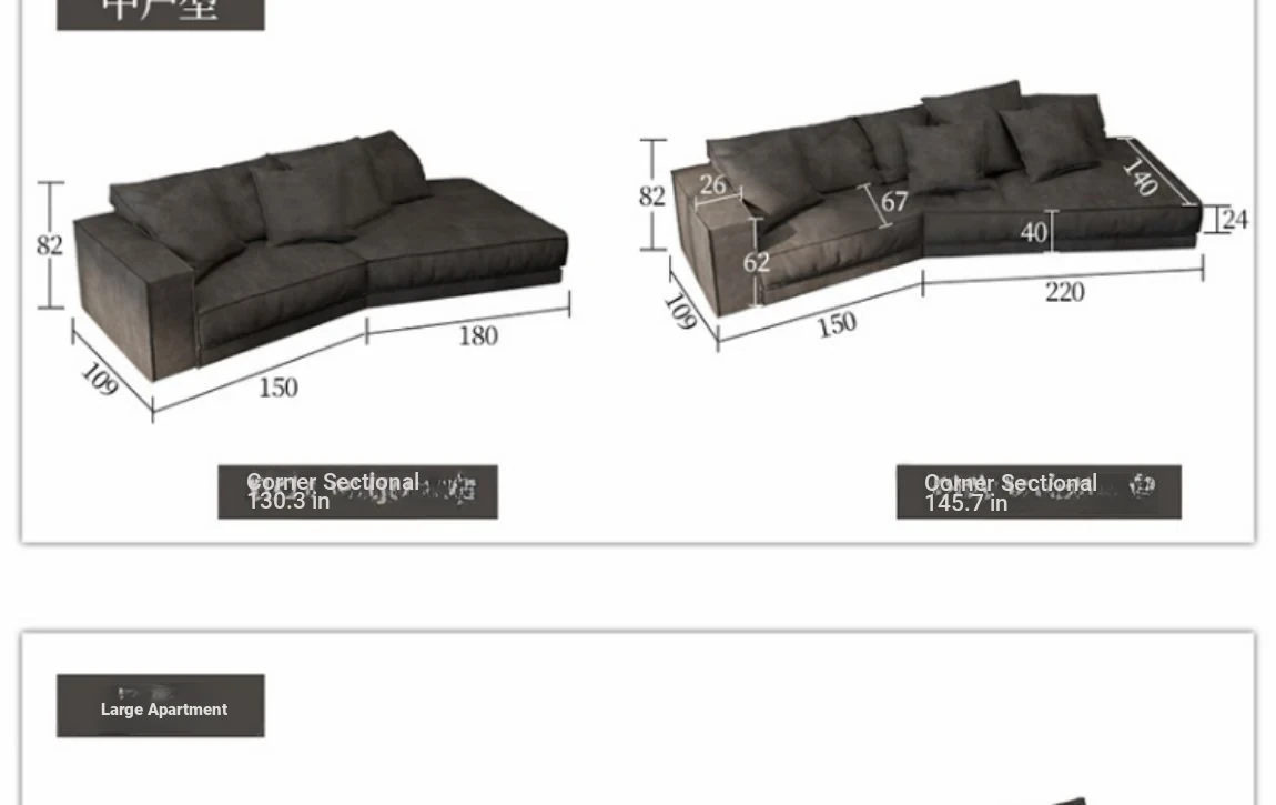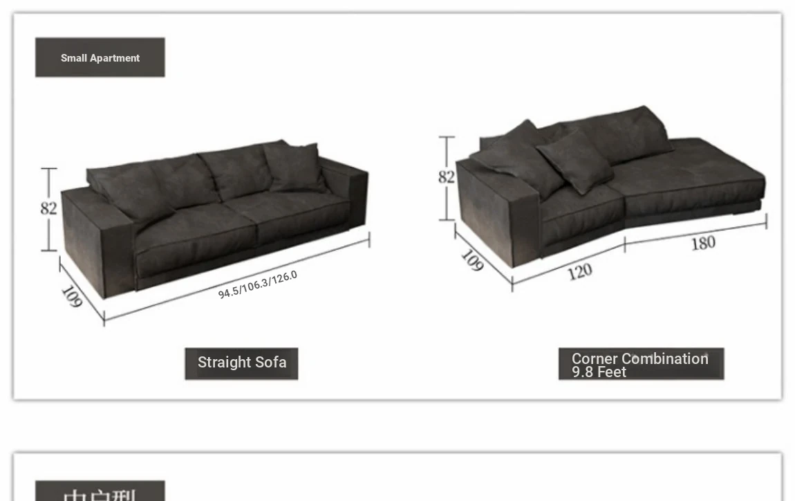 118.11 in (single armrest 1.2 + corner 1.8)+ coffee table TV cabinet