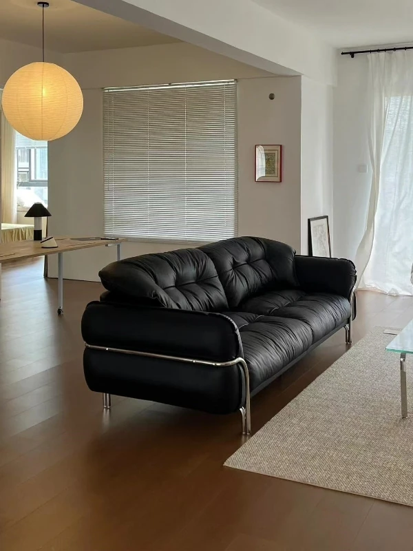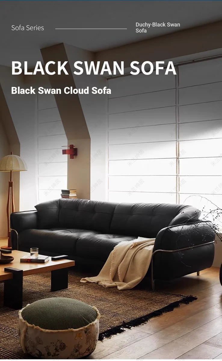 Vintage Black Swan Cloud Sofa - Bauhaus Style, Perfect for Small Living Rooms, Stainless Steel Retro Three-Seat Furniture