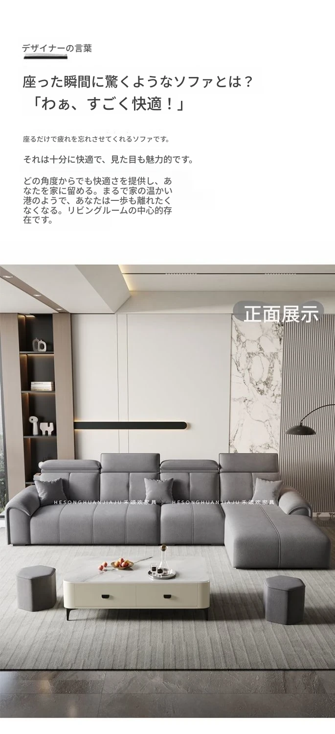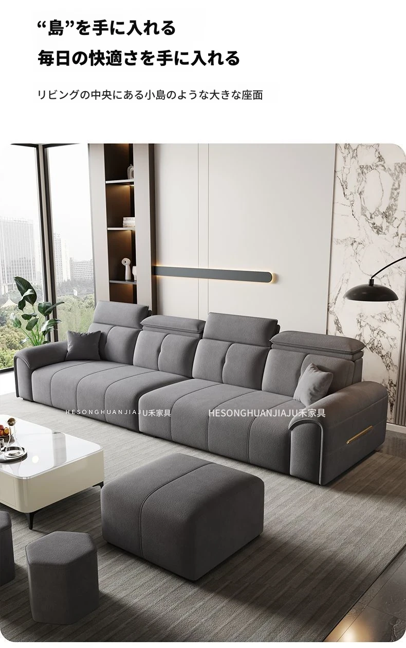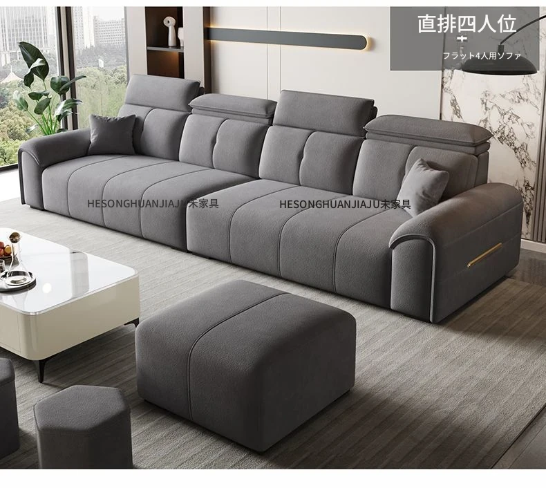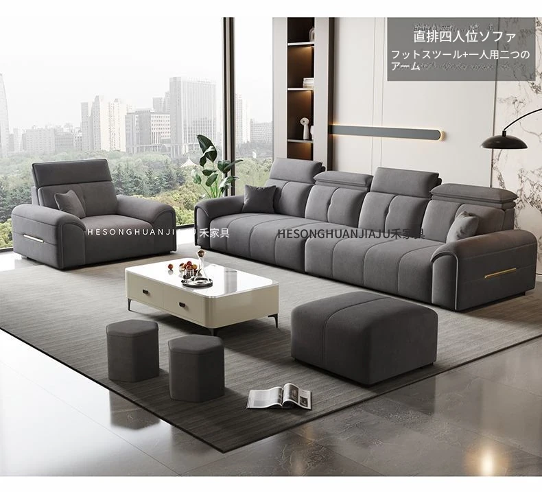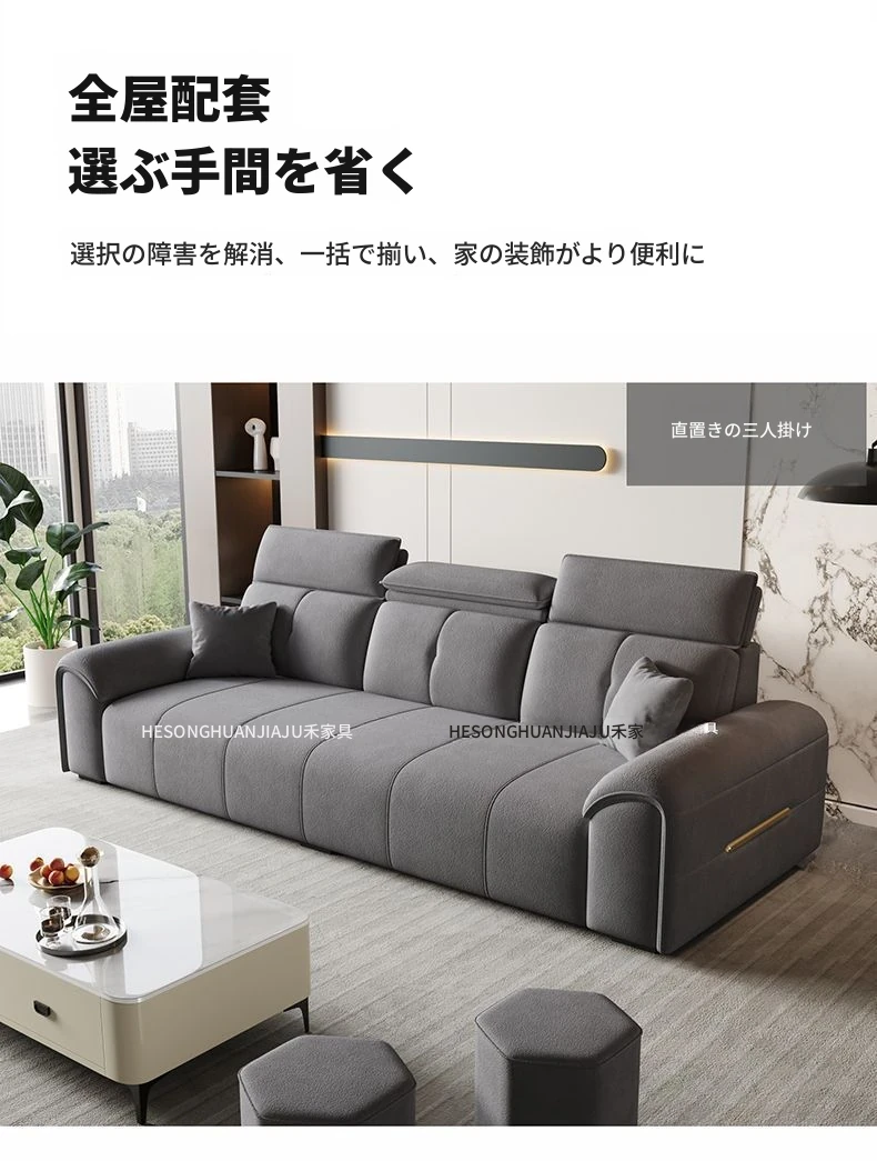 直列4人掛け+オットマン+コーヒーテーブル-落葉松無垢材フレーム