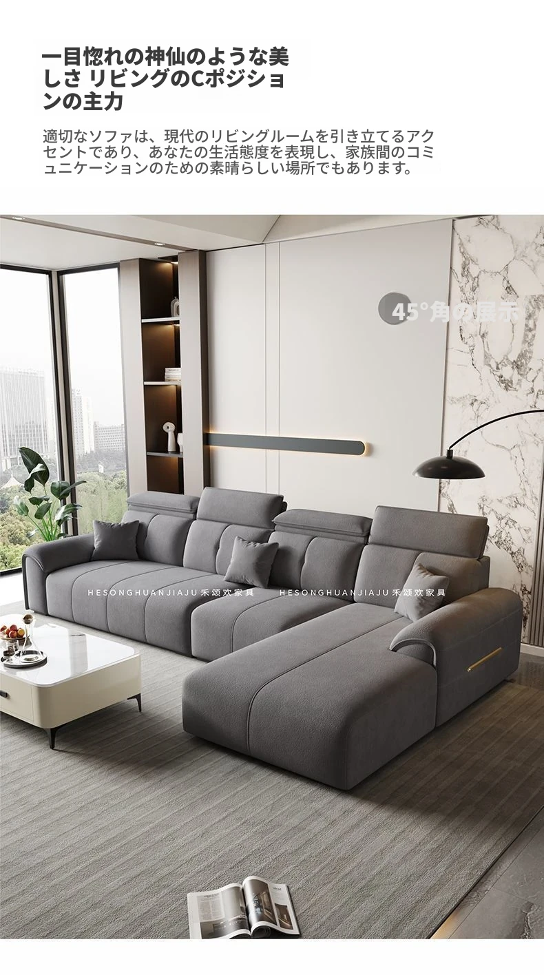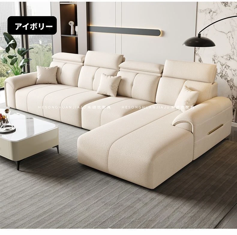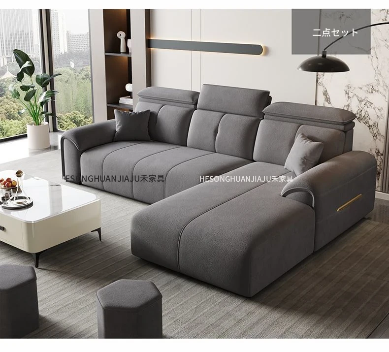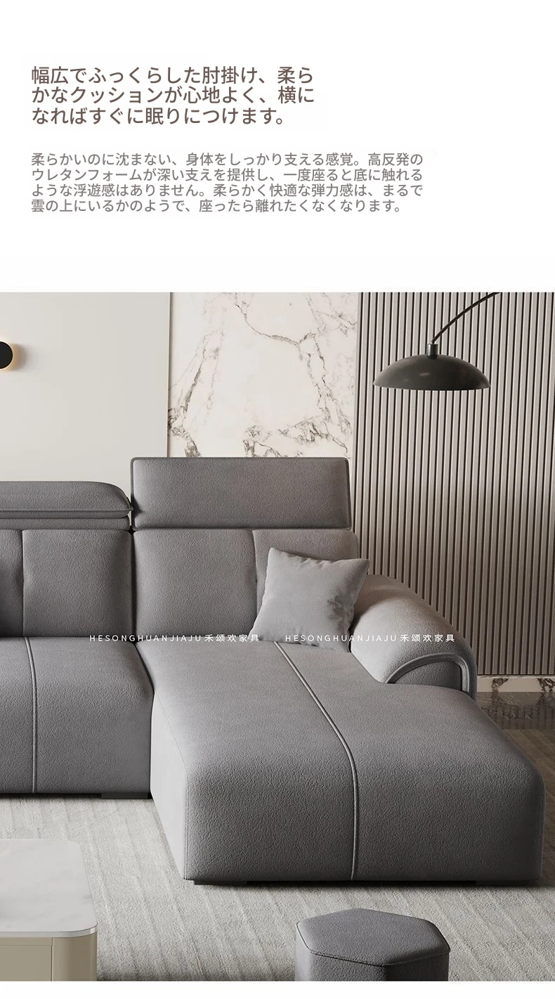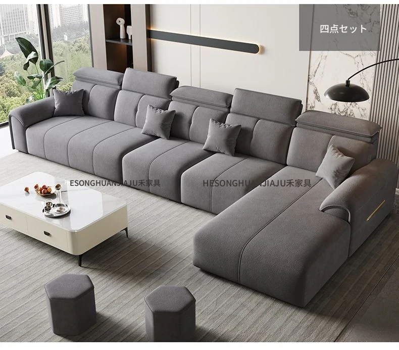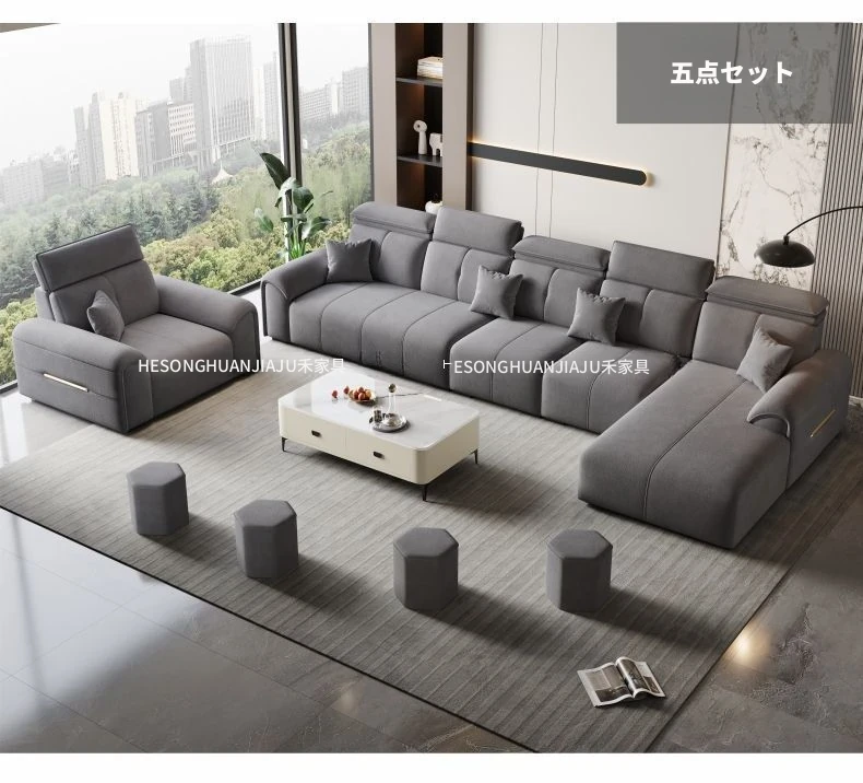 直列4人掛け+オットマン+コーヒーテーブル-落葉松無垢材フレーム