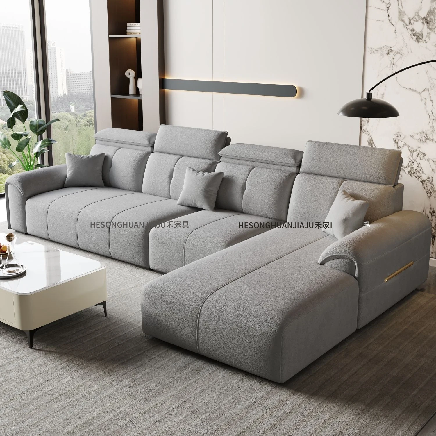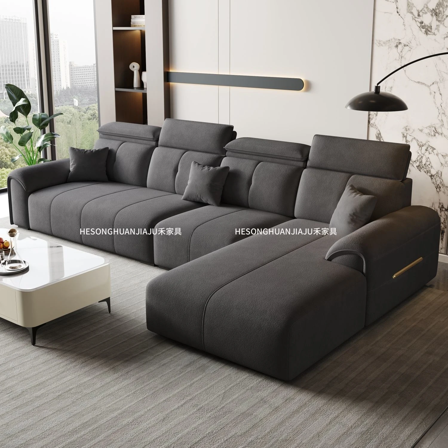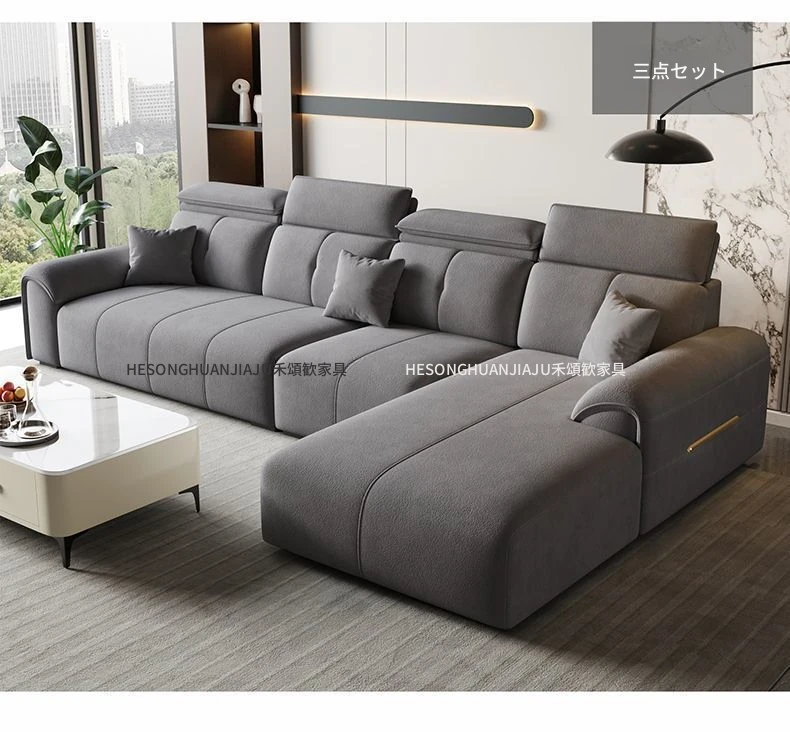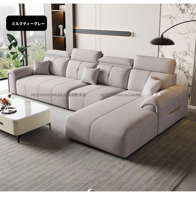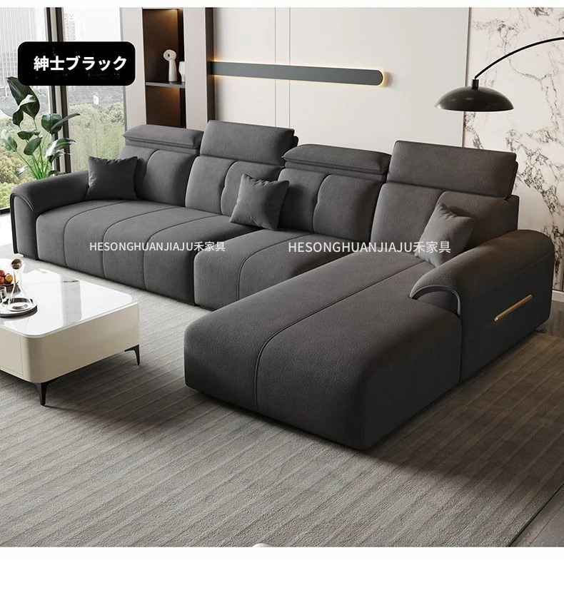 直列4人掛け+オットマン+コーヒーテーブル-落葉松無垢材フレーム