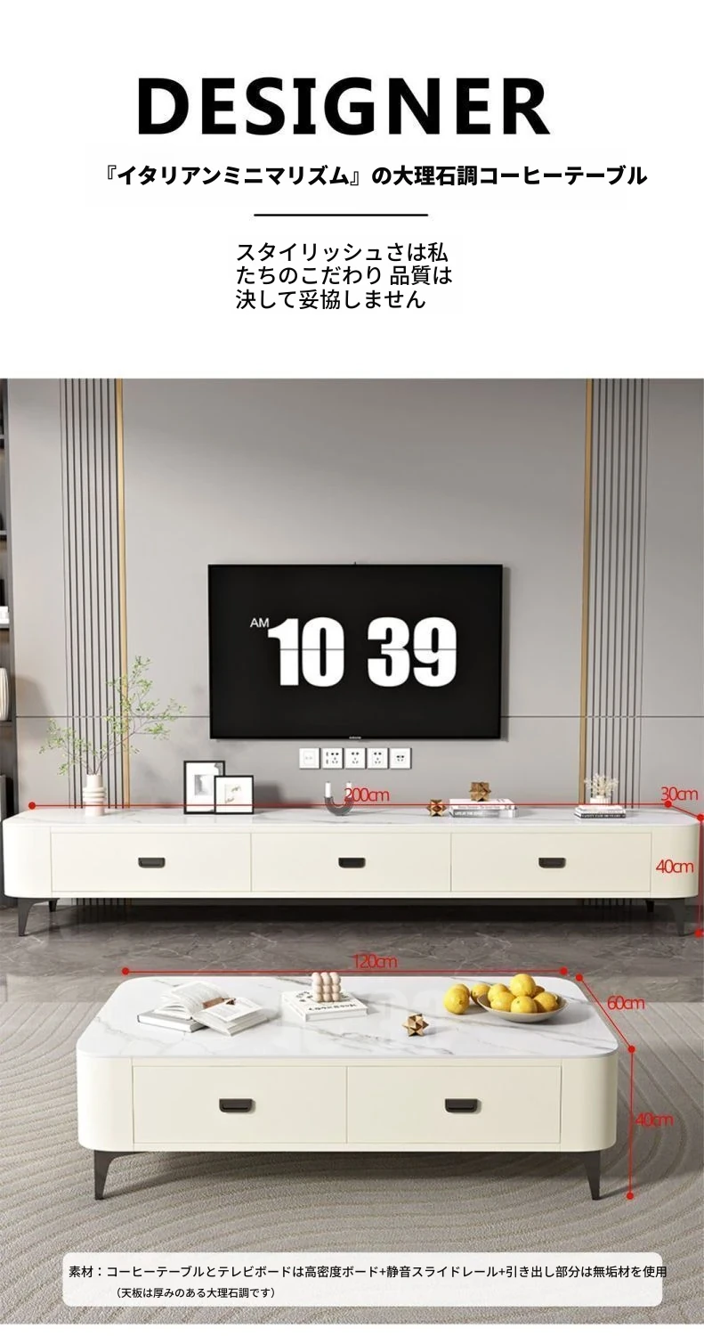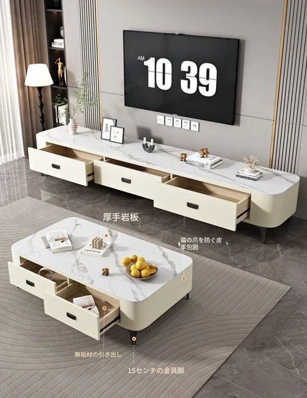 2点セット+コーヒーテーブルテレビ台-落葉松無垢材フレーム