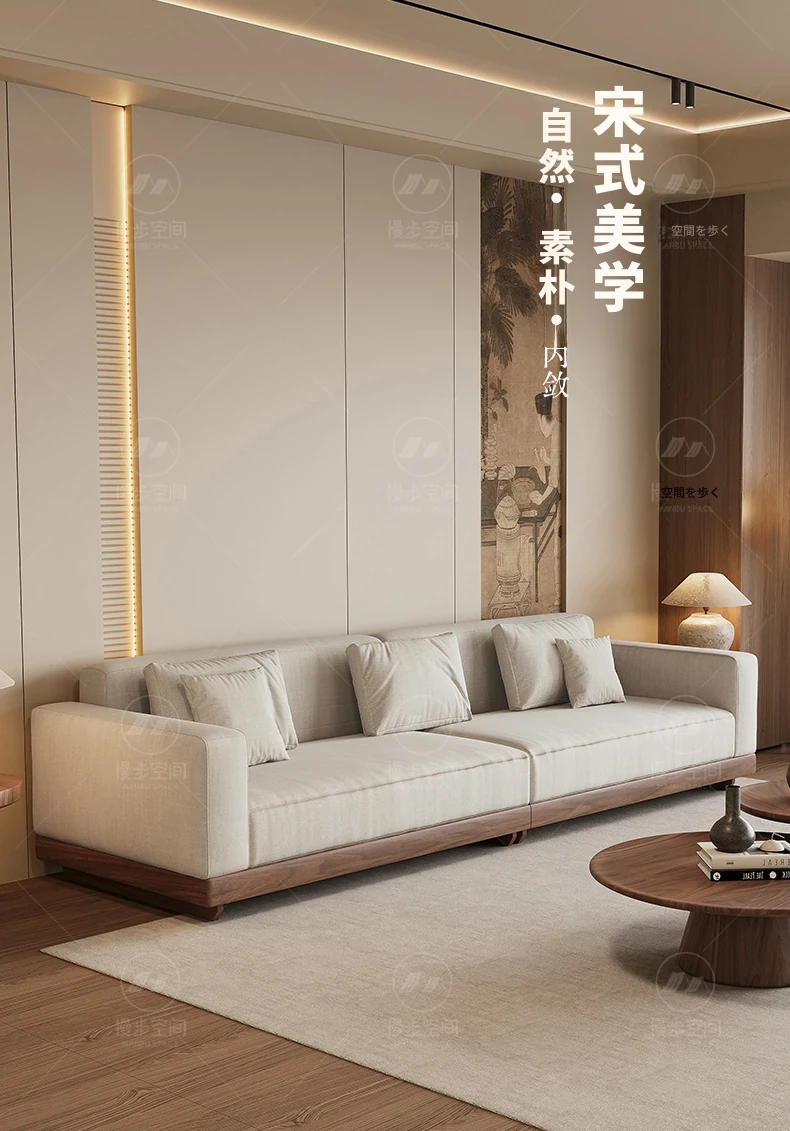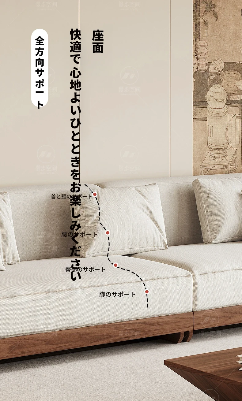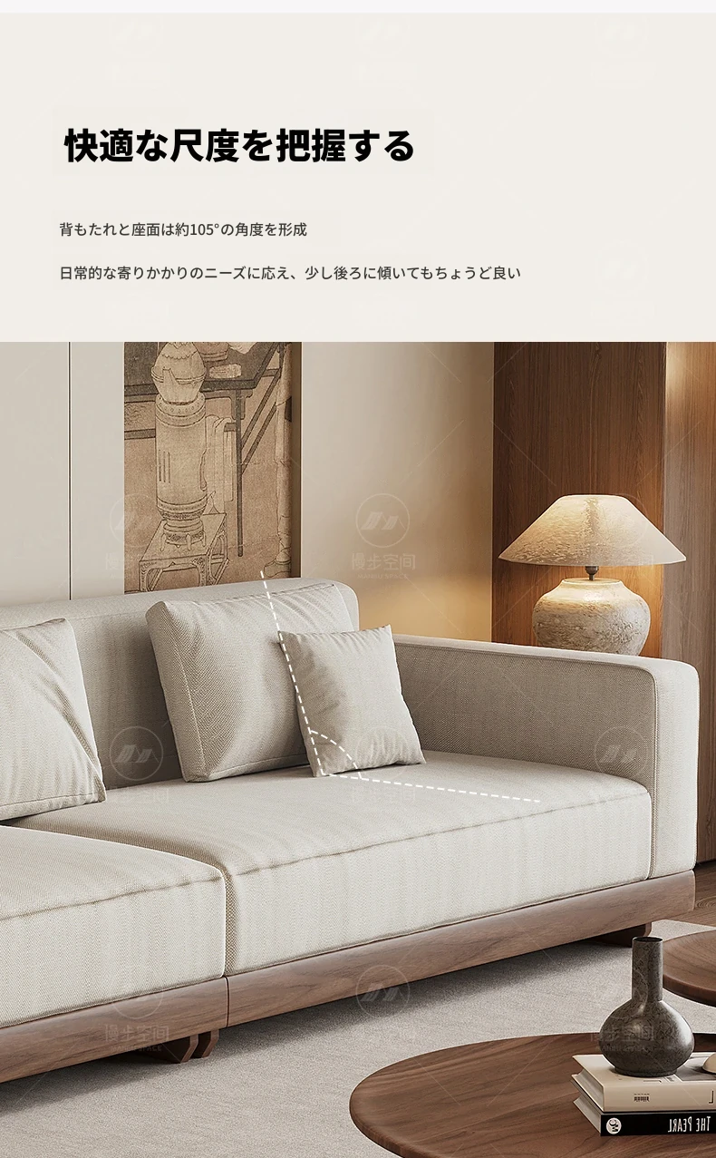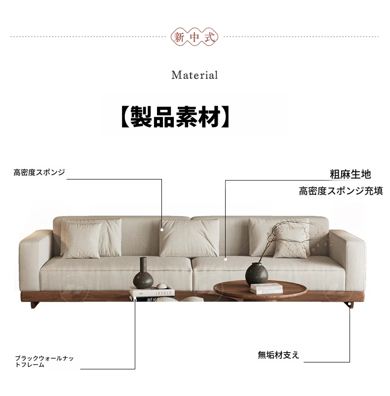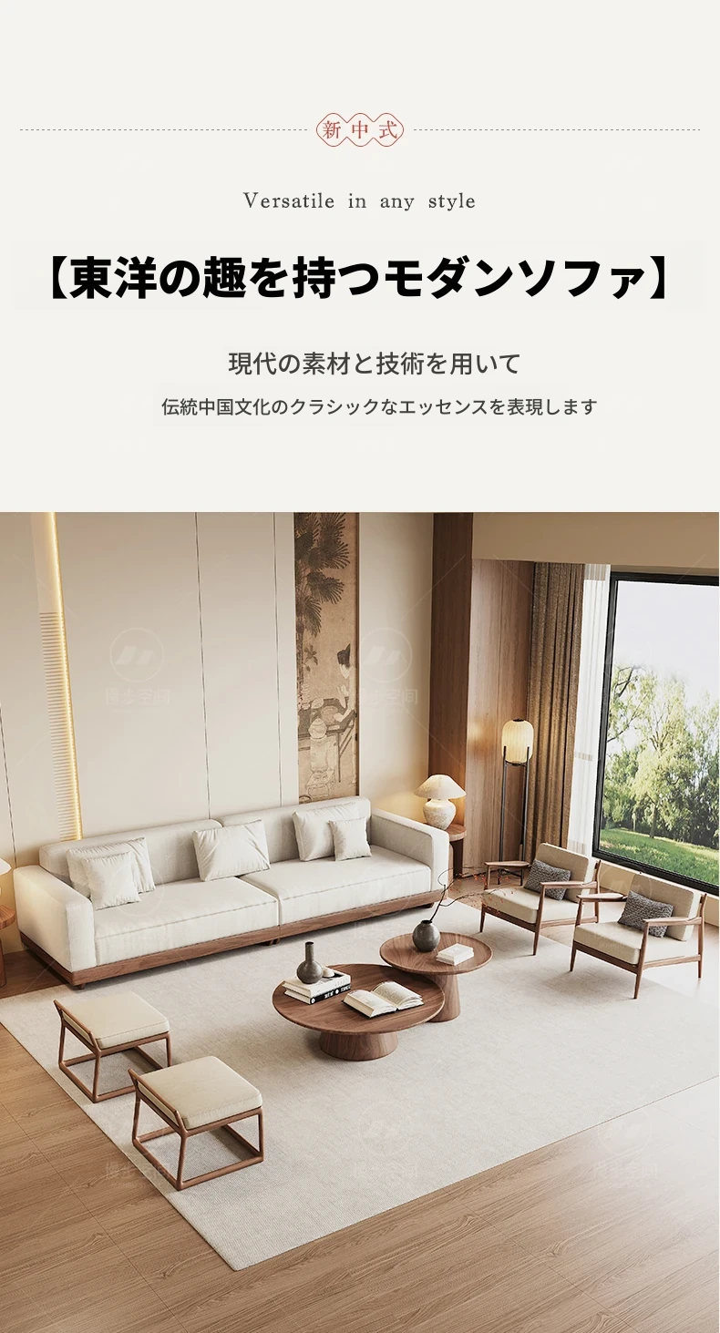 2025年新作!黒胡桃の無垢材ソファー - 新中式デザイン、直線的なスタイルと宋氏美学が融合した上質なリネン。おしゃれで快適なリビング空間を演出します。