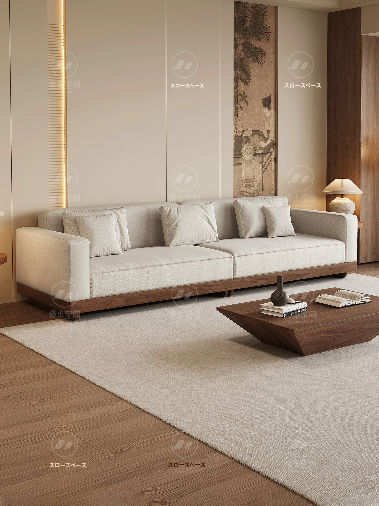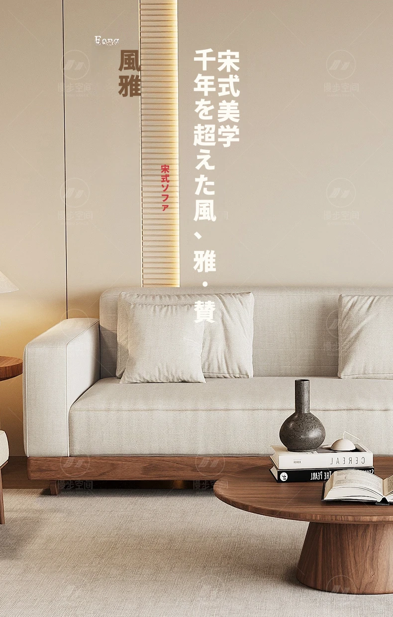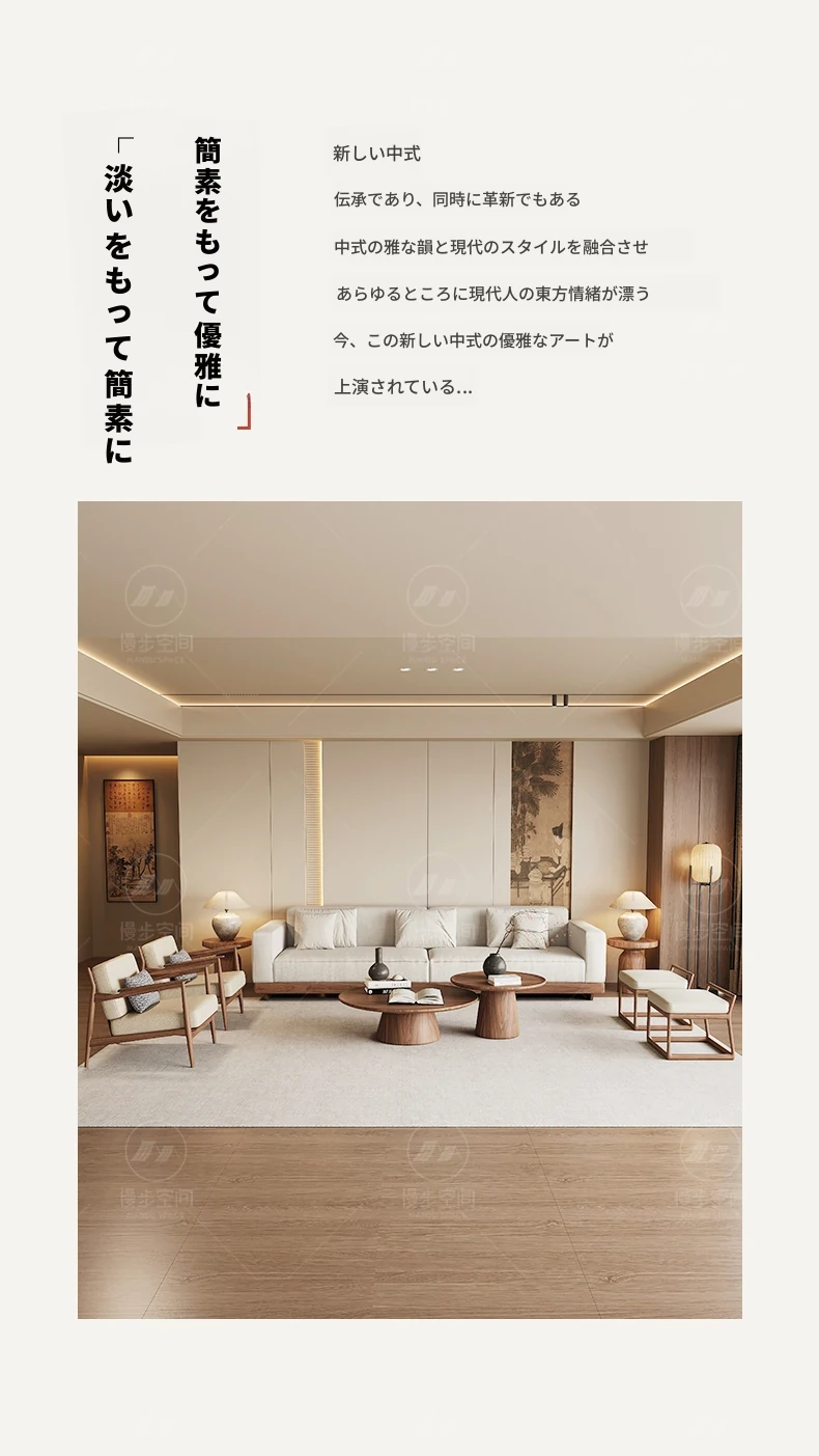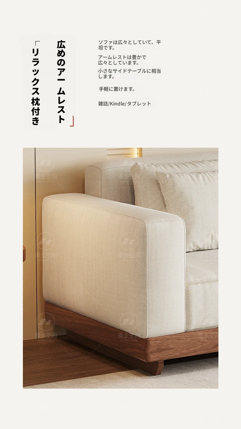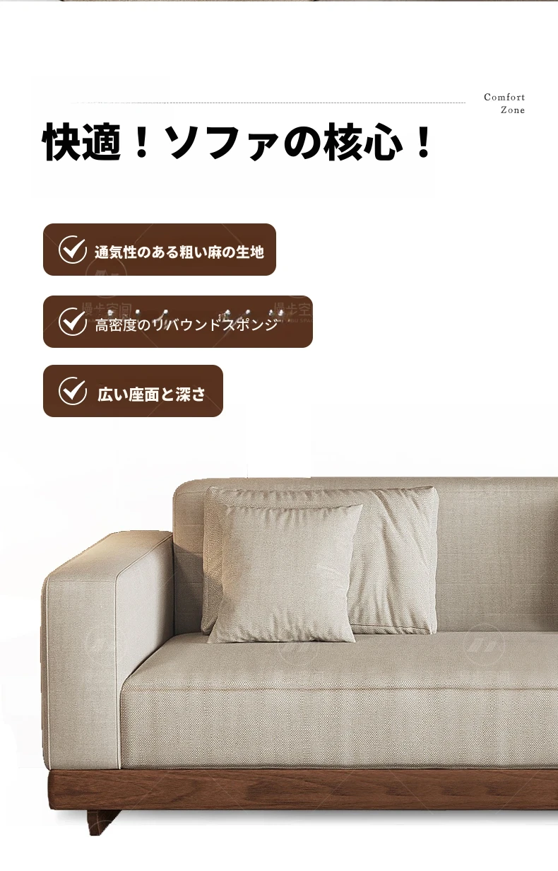 2025年新作!黒胡桃の無垢材ソファー - 新中式デザイン、直線的なスタイルと宋氏美学が融合した上質なリネン。おしゃれで快適なリビング空間を演出します。
