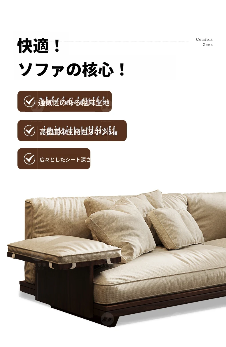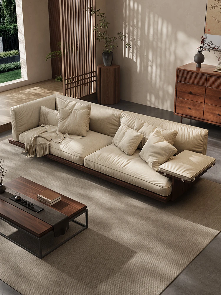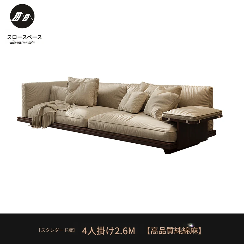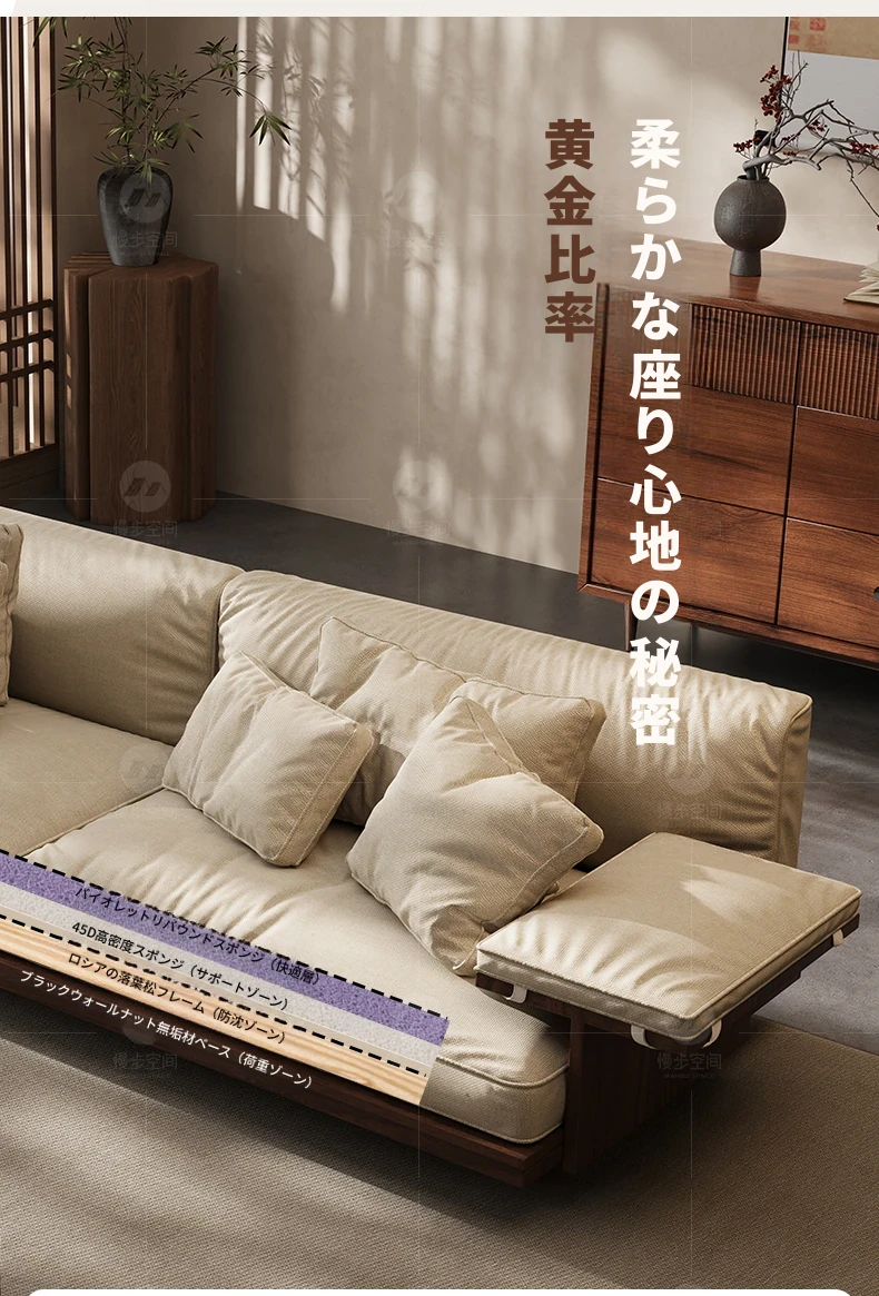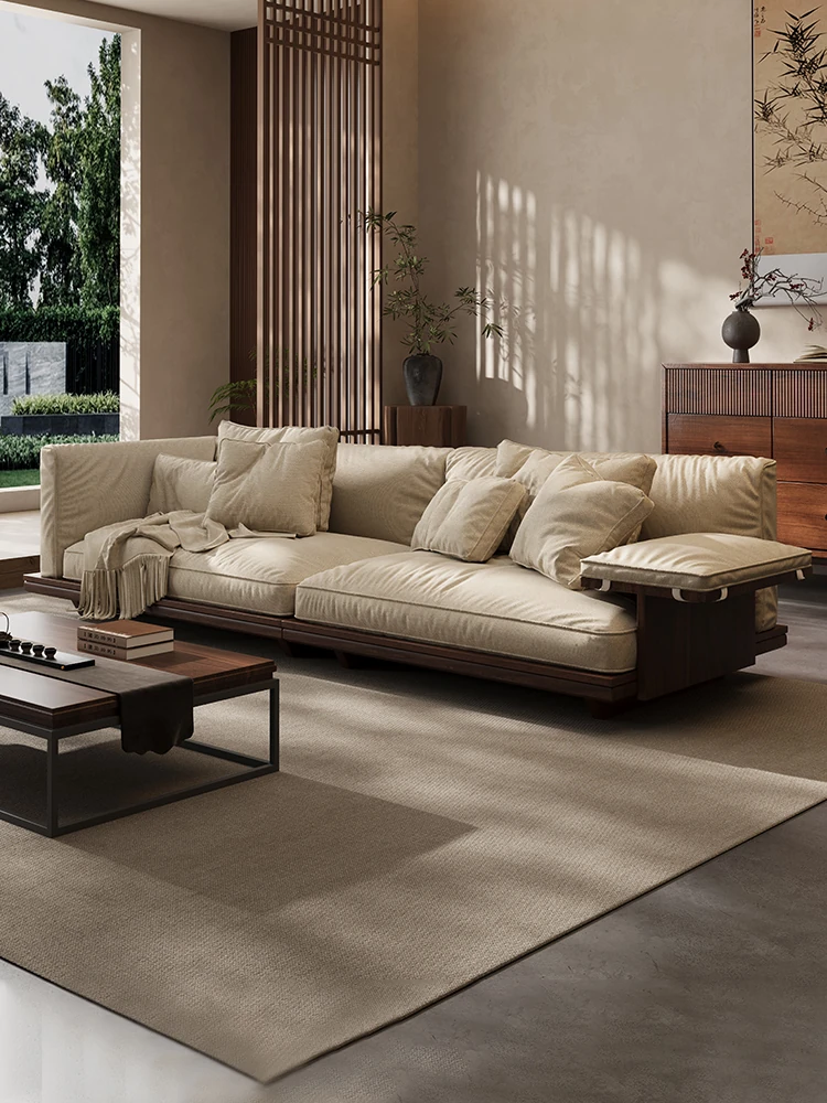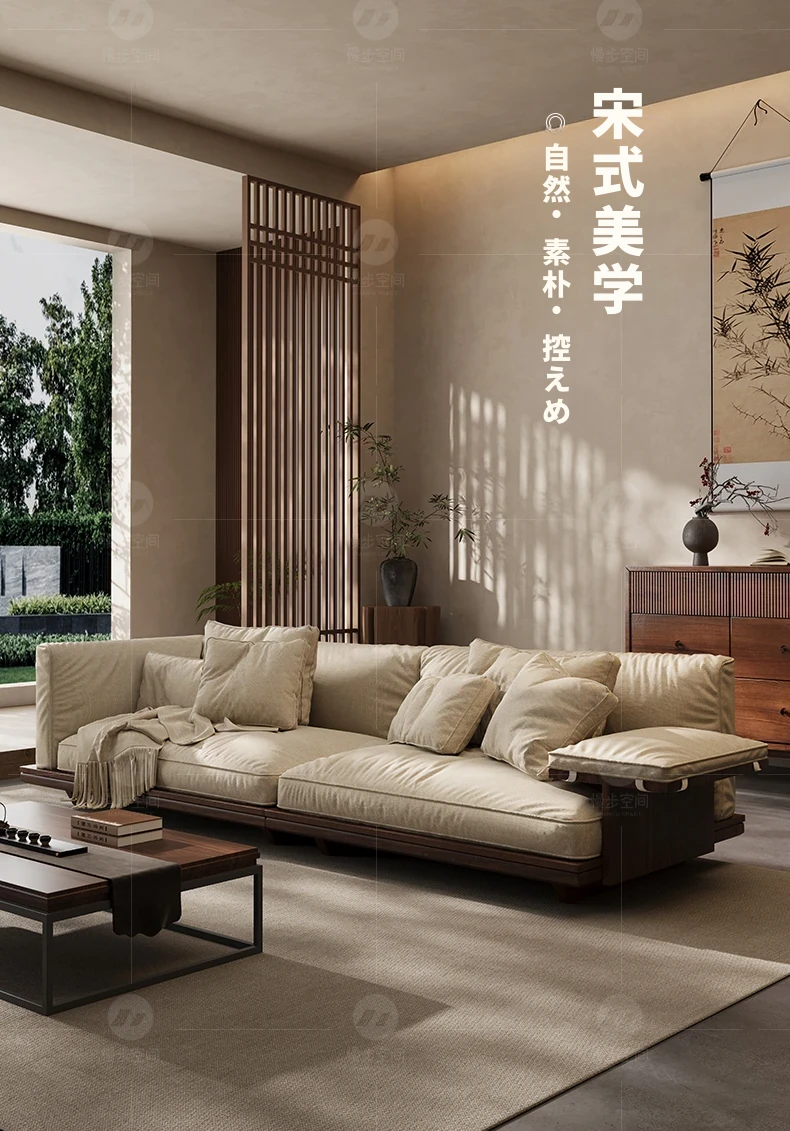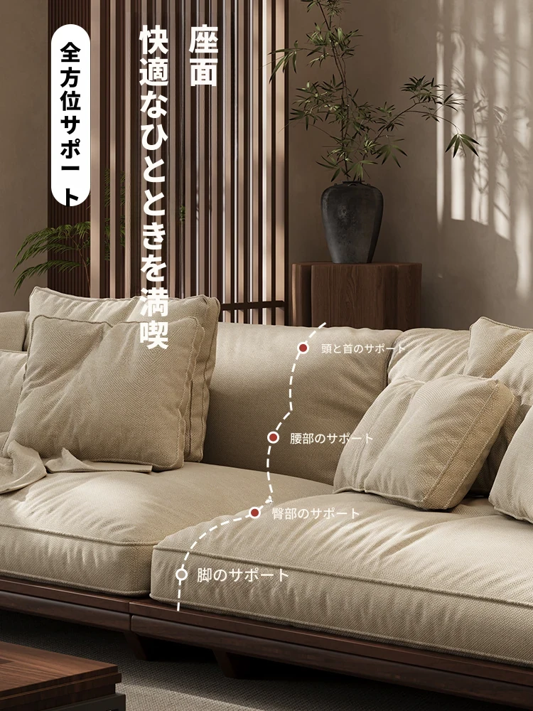 新作!2025年版黒胡桃木製ソファ - 室内を美しく彩る宋代美学デザイン、リビングにぴったりのサイズ展開!天然素材のコットン麻布で、快適な座り心地を実現。大中小の部屋に最適です!