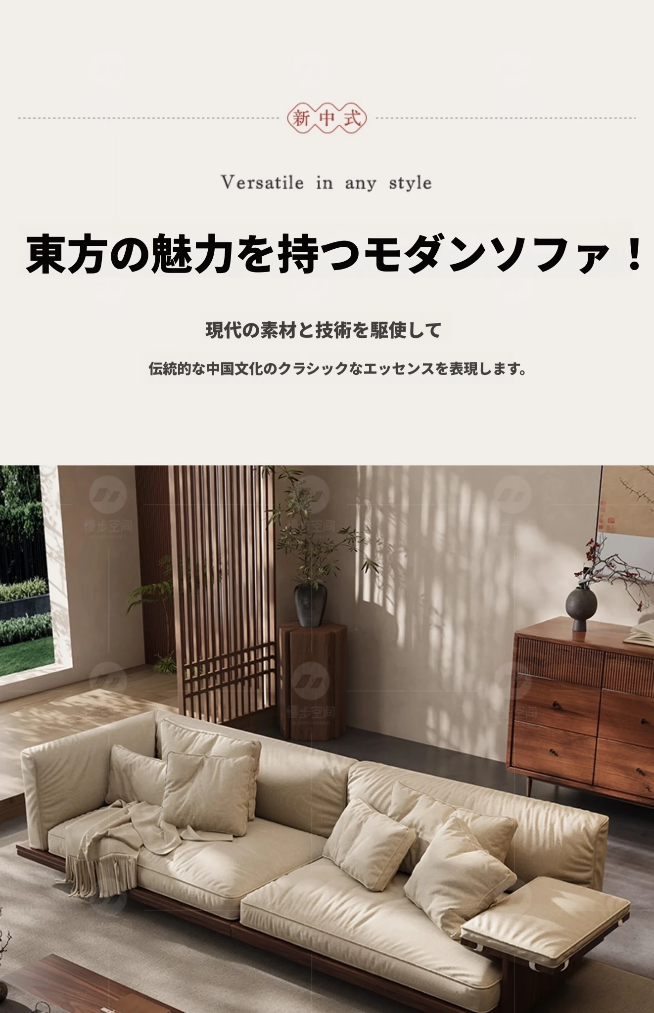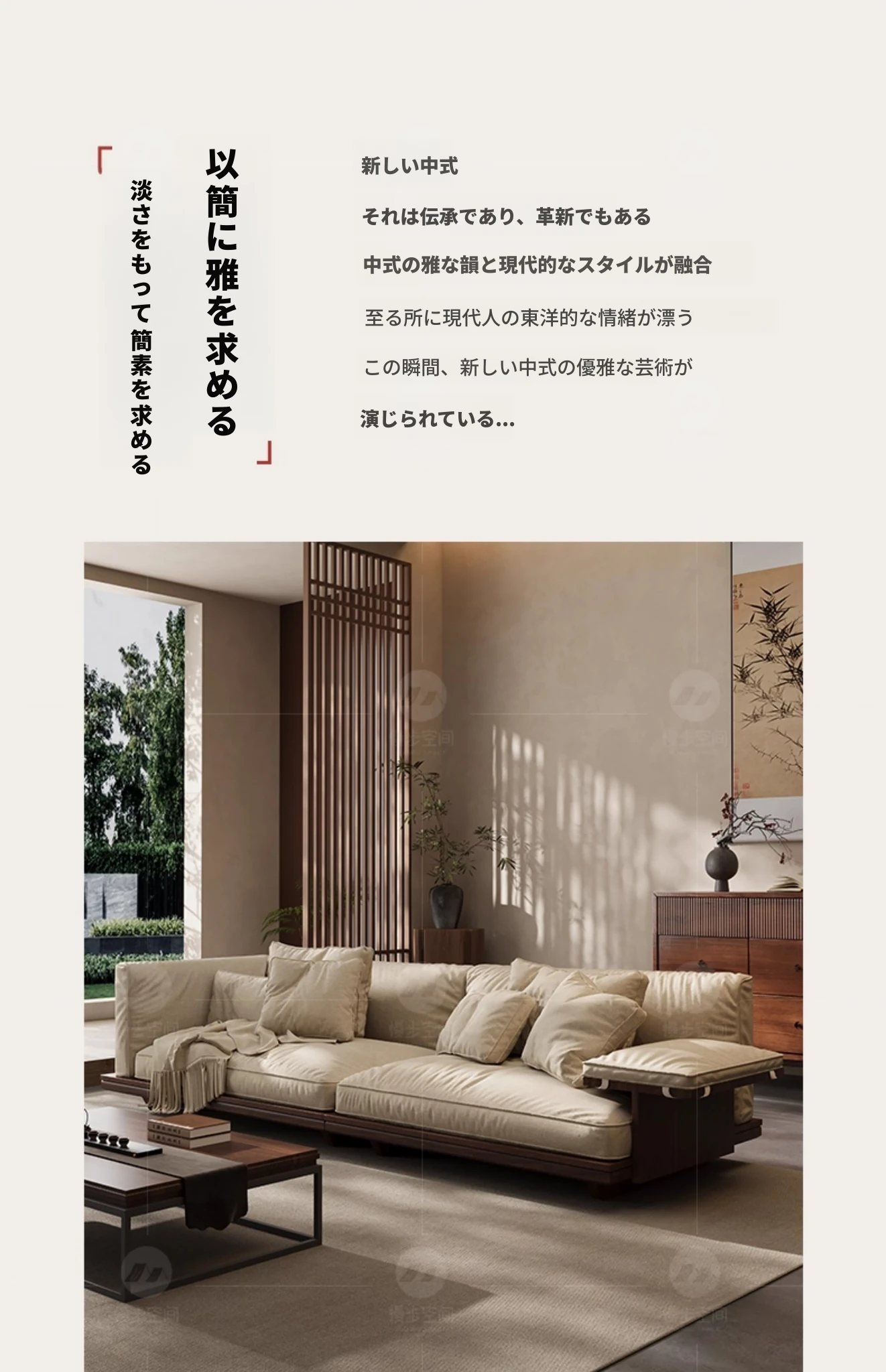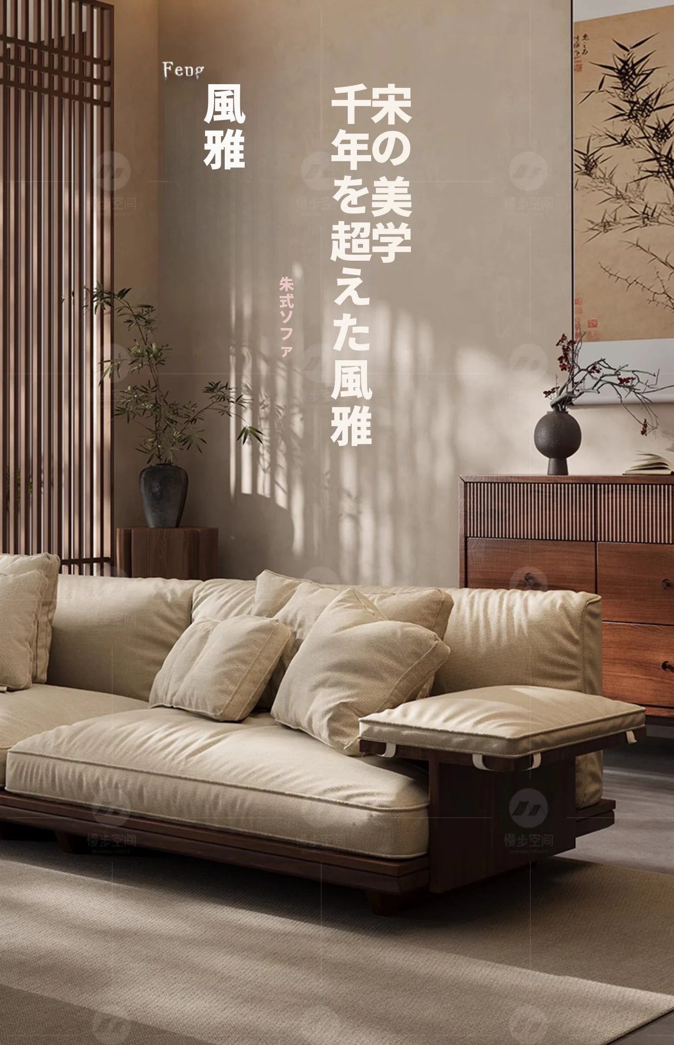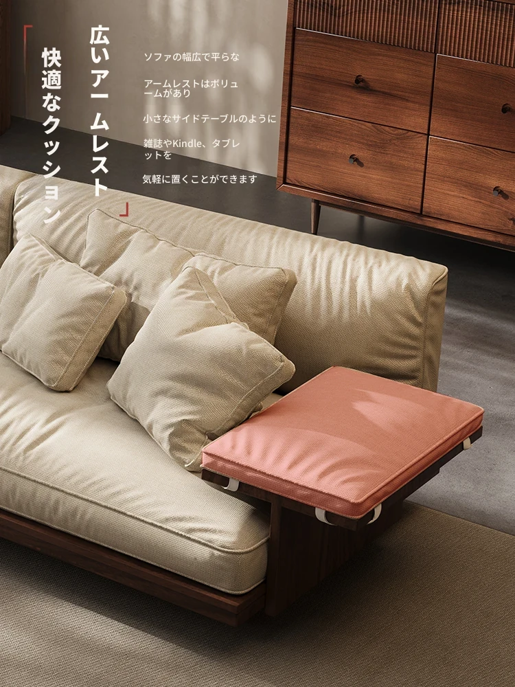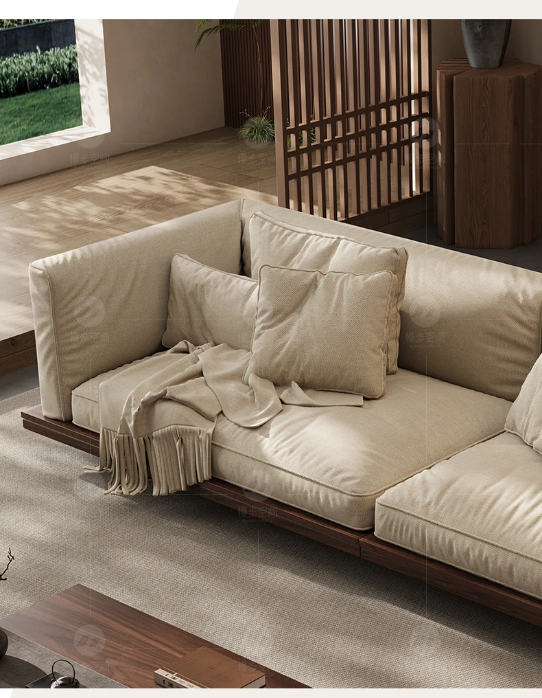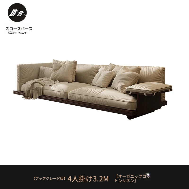 新作!2025年版黒胡桃木製ソファ - 室内を美しく彩る宋代美学デザイン、リビングにぴったりのサイズ展開!天然素材のコットン麻布で、快適な座り心地を実現。大中小の部屋に最適です!