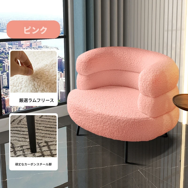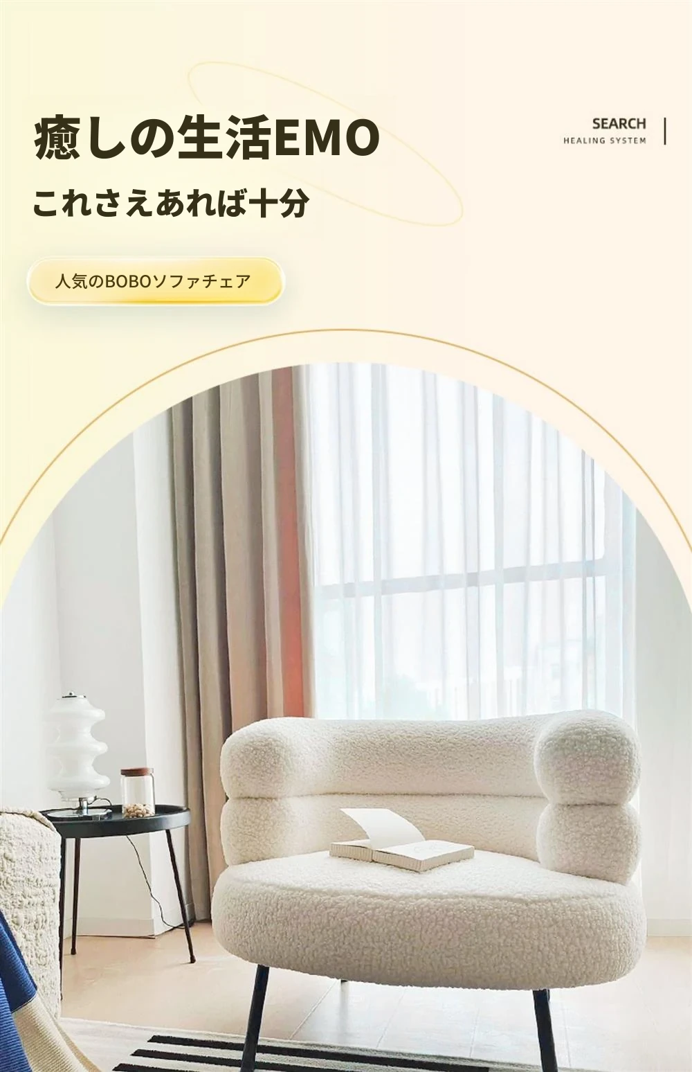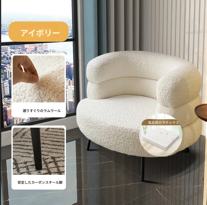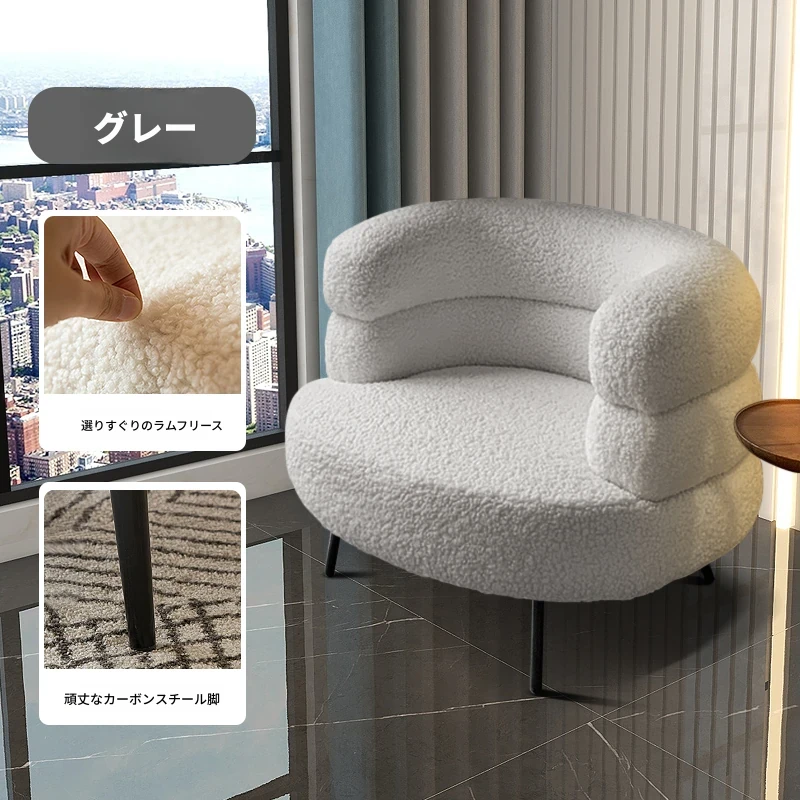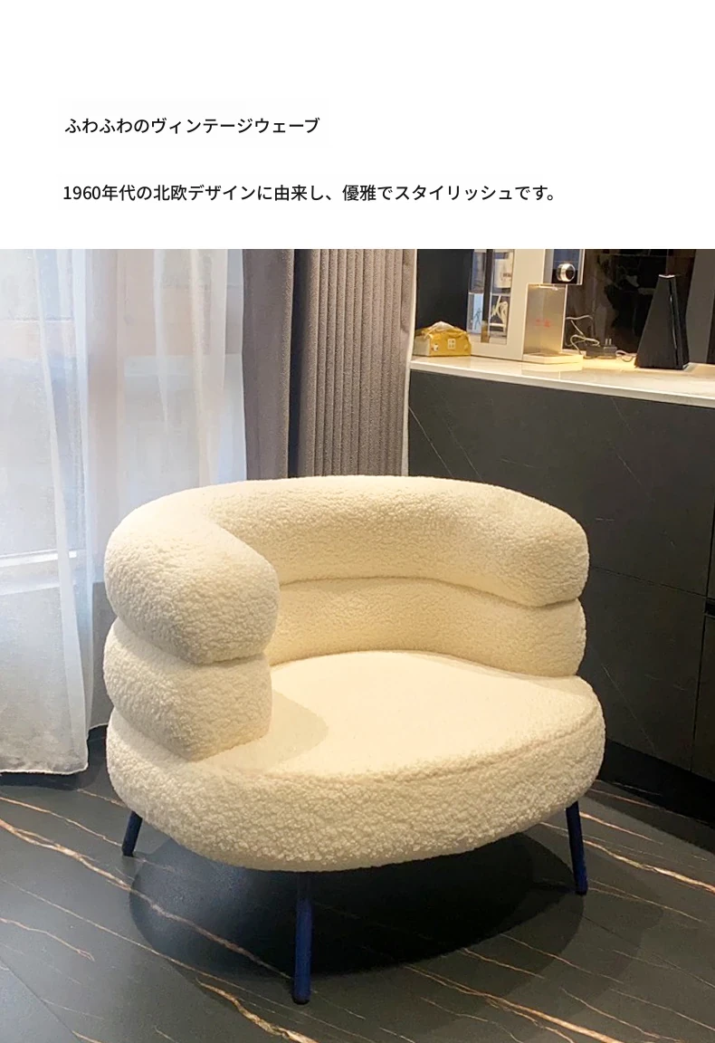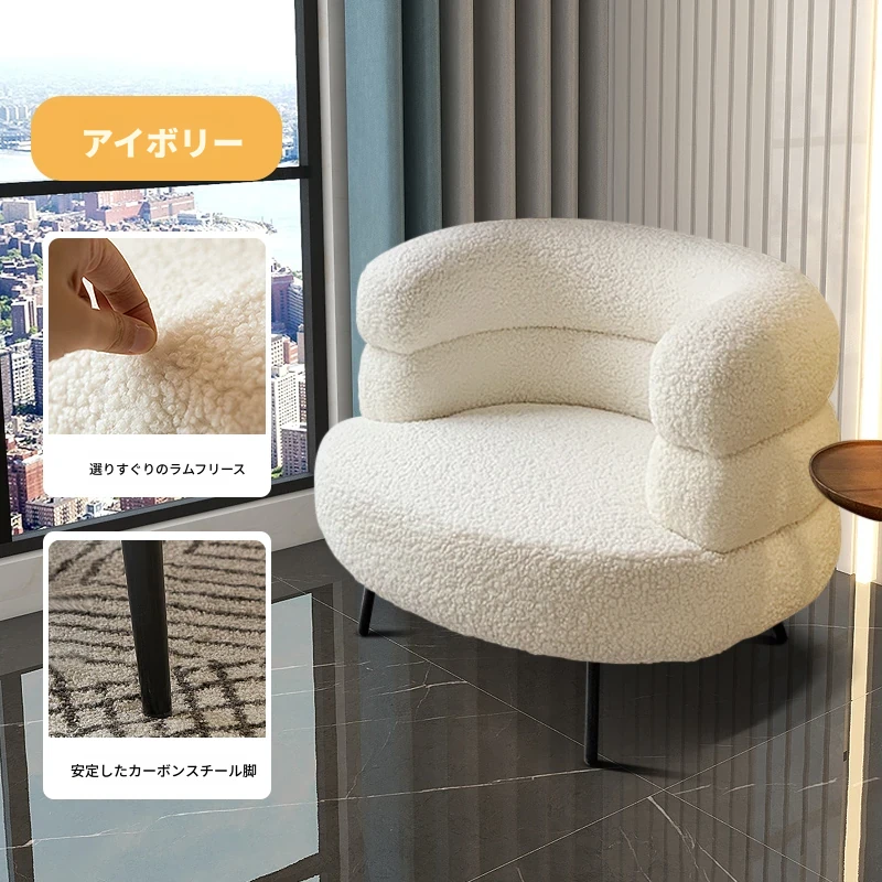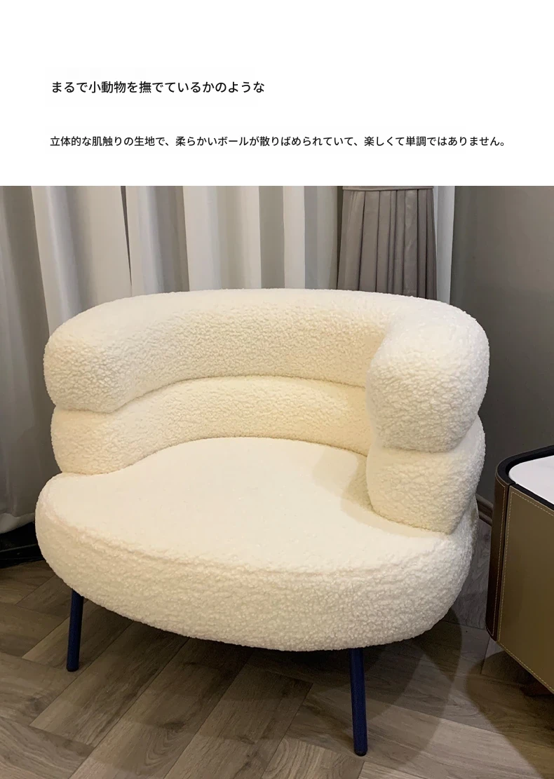 BOBOボアフリースのベッドルーム・バルコニー用リラックスチェア|小さなスペースにぴったりなシンプルなデザイン|モダンなホワイトの一人掛けソファ|快適さとスタイルを両立した化粧椅子!