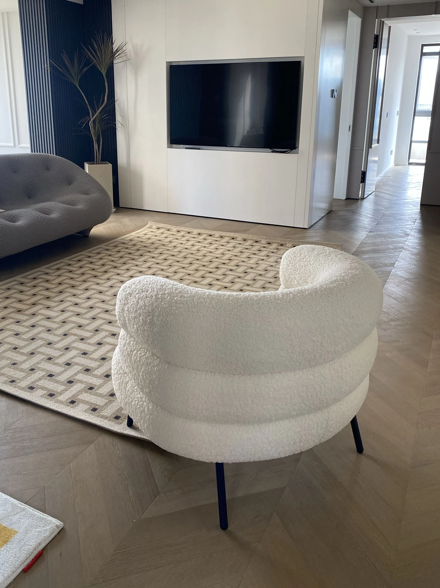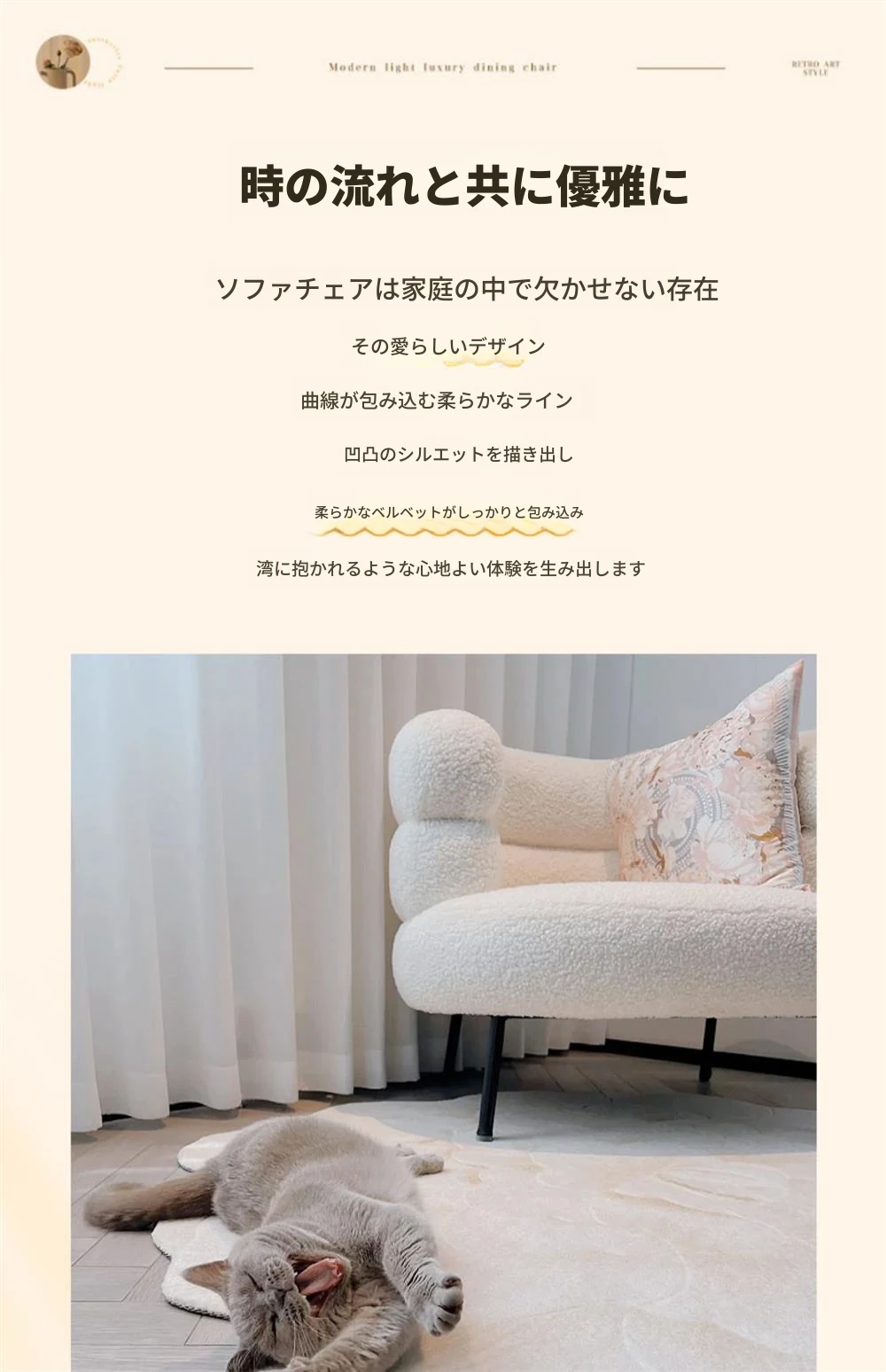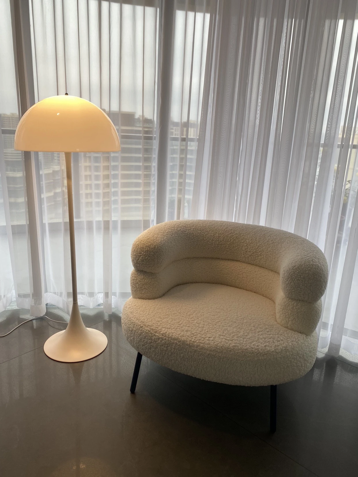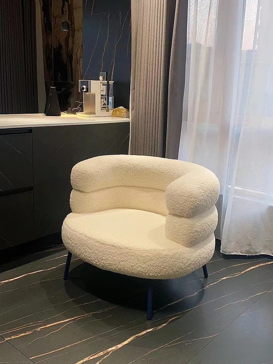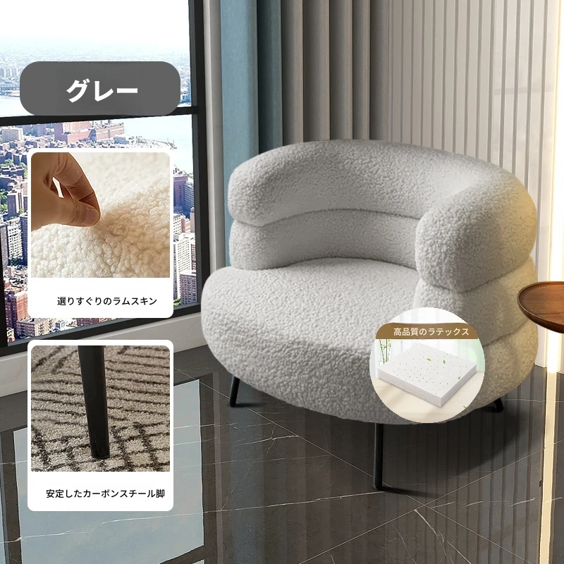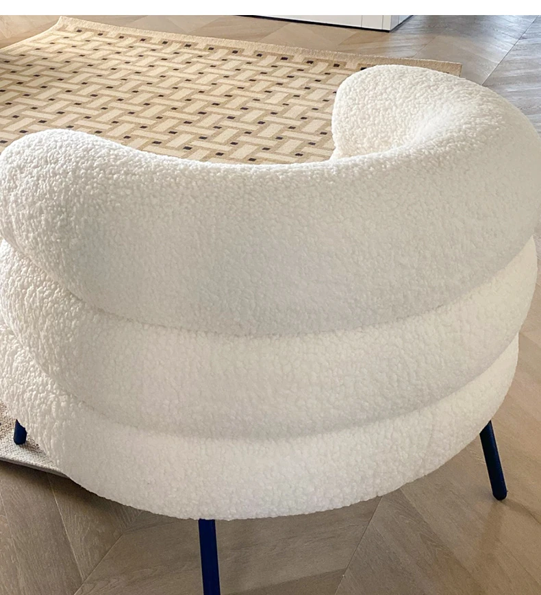 BOBOボアフリースのベッドルーム・バルコニー用リラックスチェア|小さなスペースにぴったりなシンプルなデザイン|モダンなホワイトの一人掛けソファ|快適さとスタイルを両立した化粧椅子!