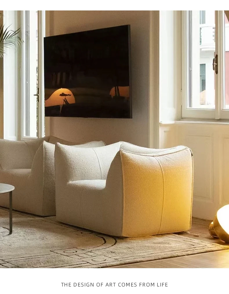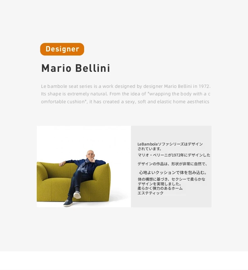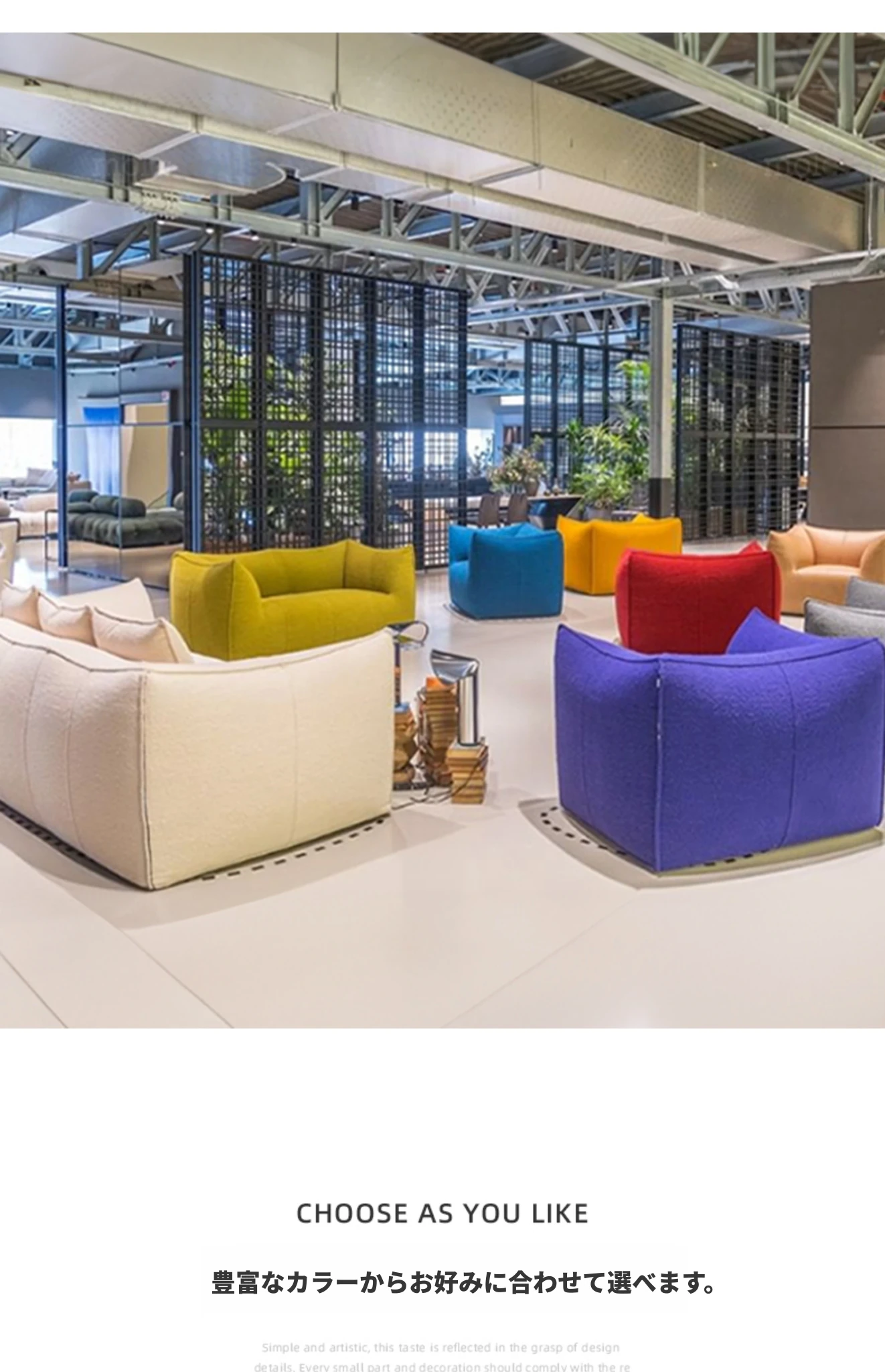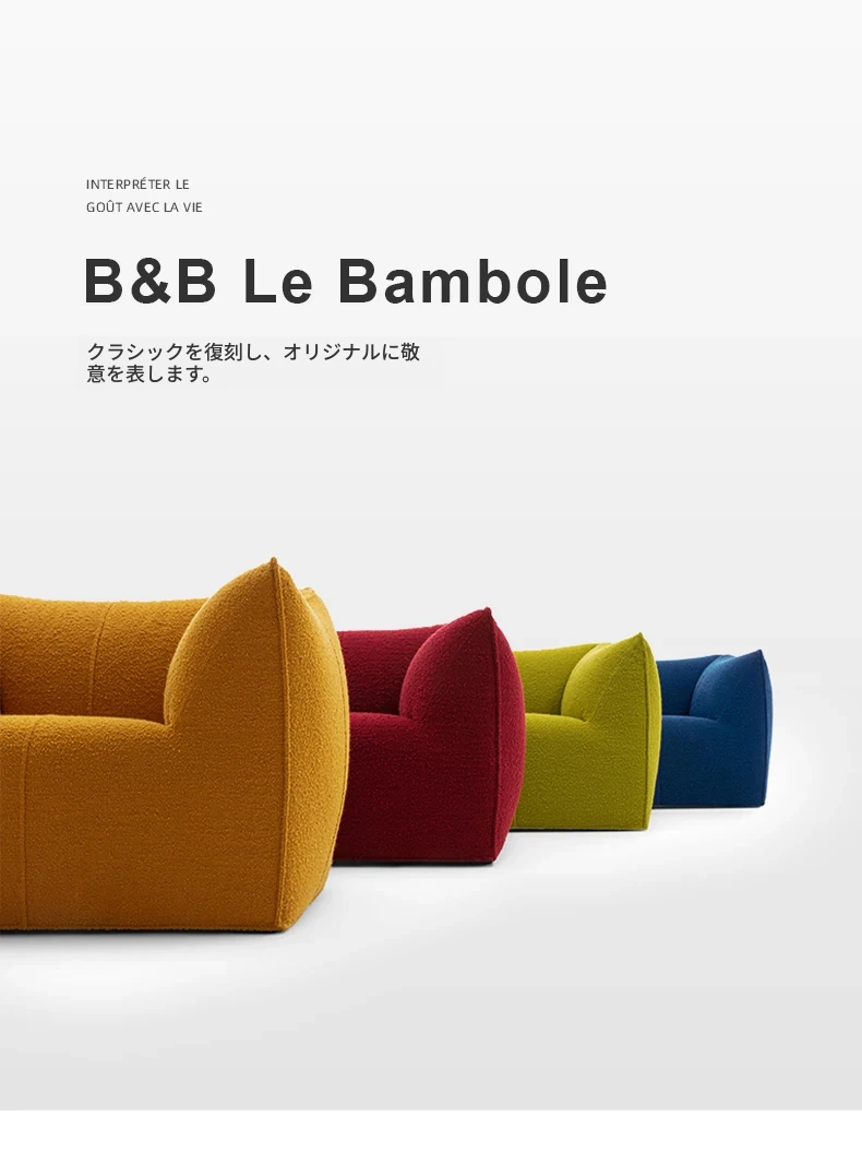 驚きのデザイン!「Le Bambole」モジュラー型デザイナークッションソファ - スタイリッシュで快適な現代的なリラックス空間を提供する、シンプルでありながら洗練された布製ソファ。