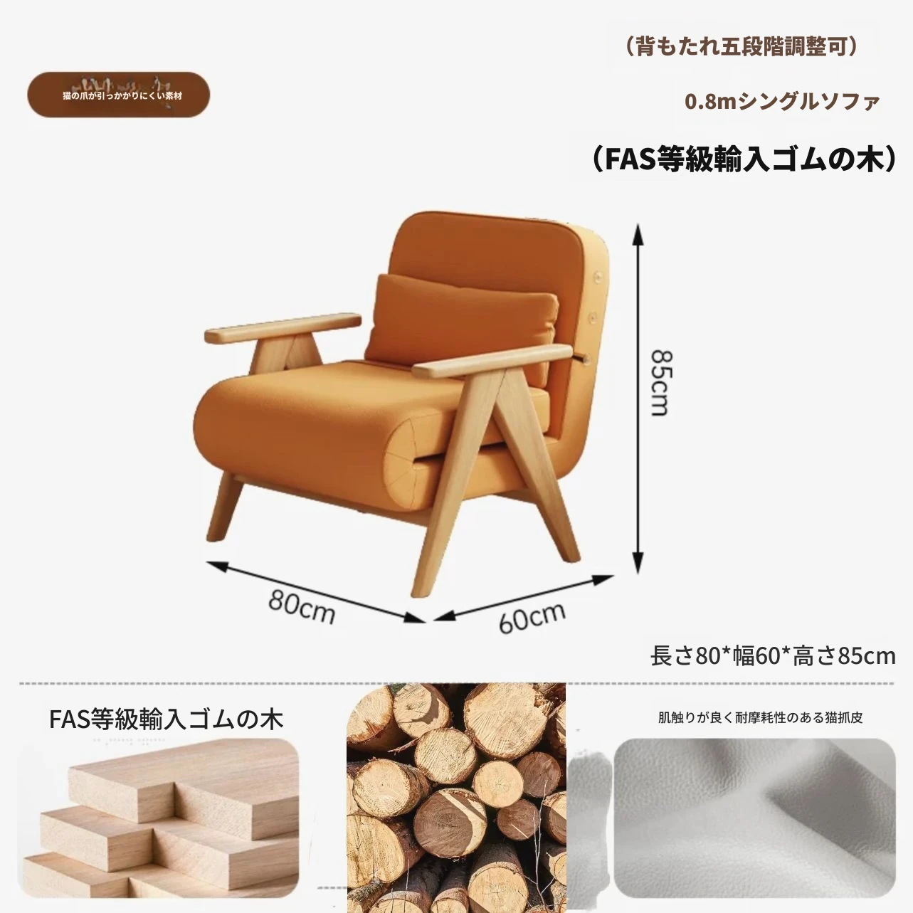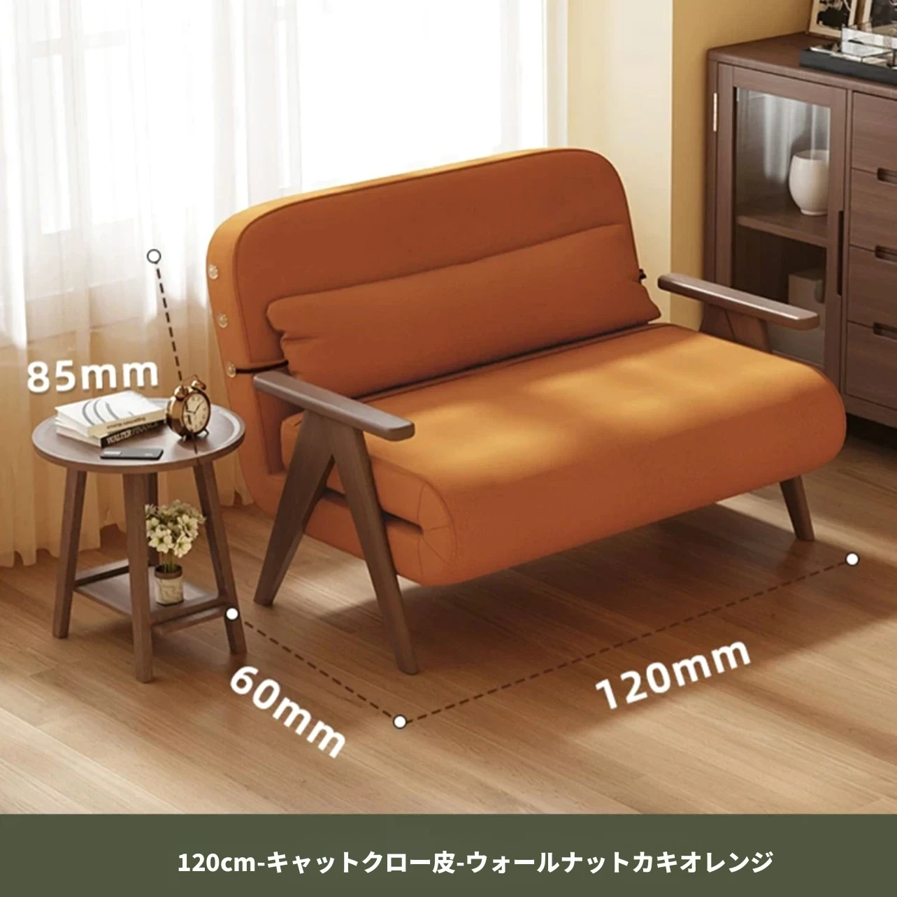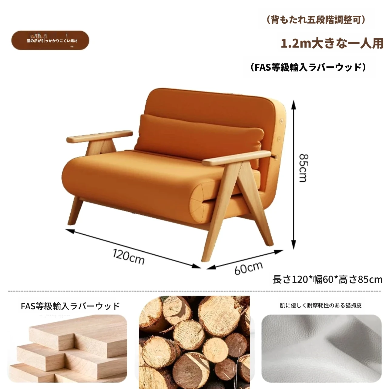 快適なシングルサイズ85cm/サンセットオレンジソファベッド - 5防猫爪皮 - 天然木