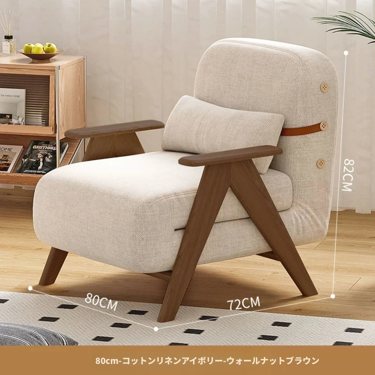 快適なシングルサイズ85cm/アイボリーソファベッド - 肌触りの良いリネン - ウォールナット
