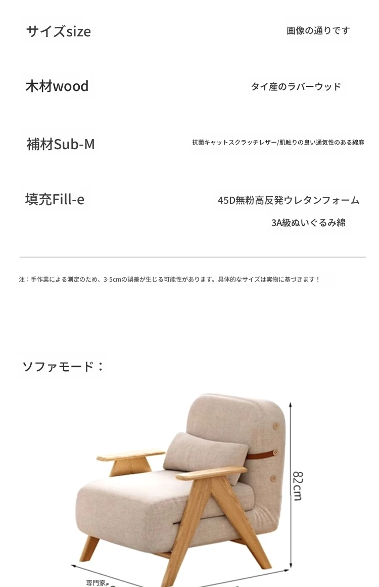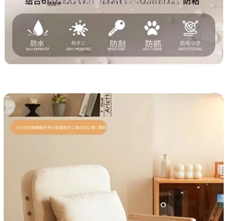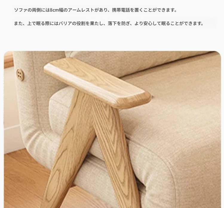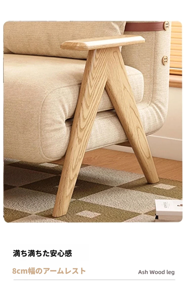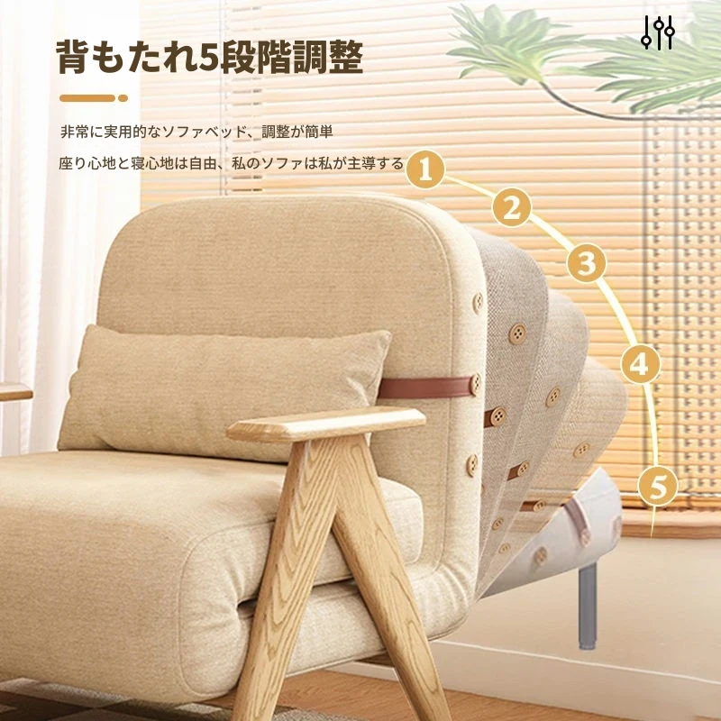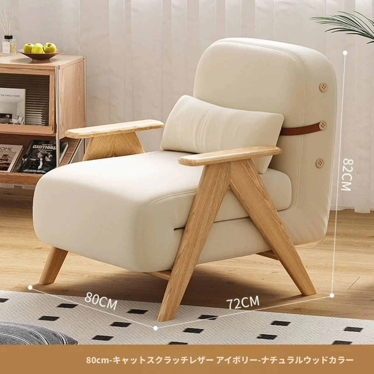 快適なシングルサイズ85cm/アイボリーソファベッド - 5防猫爪皮 - 天然木