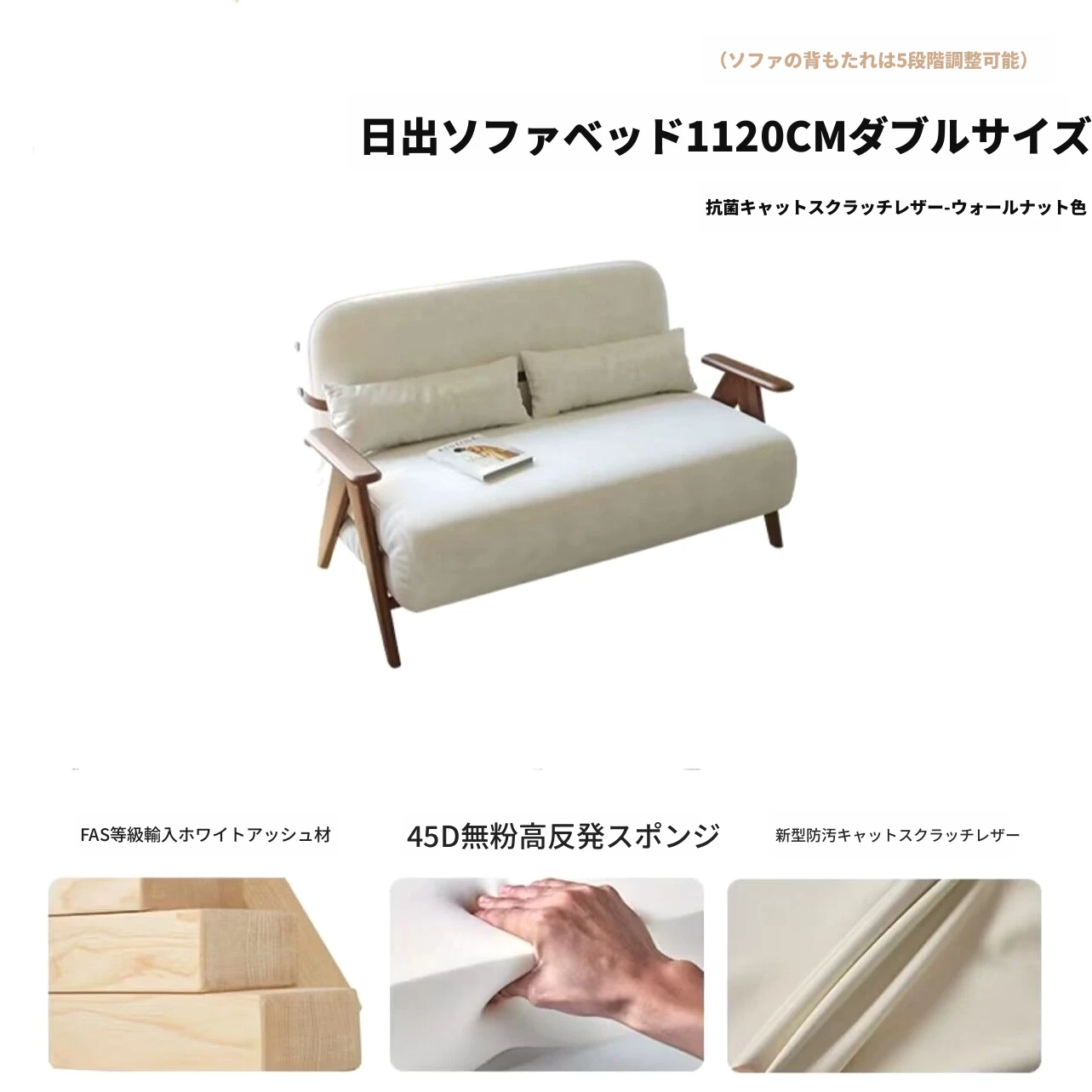 ダブルサイズ120cm/アイボリーソファベッド - 5防猫爪皮 - ウォールナット