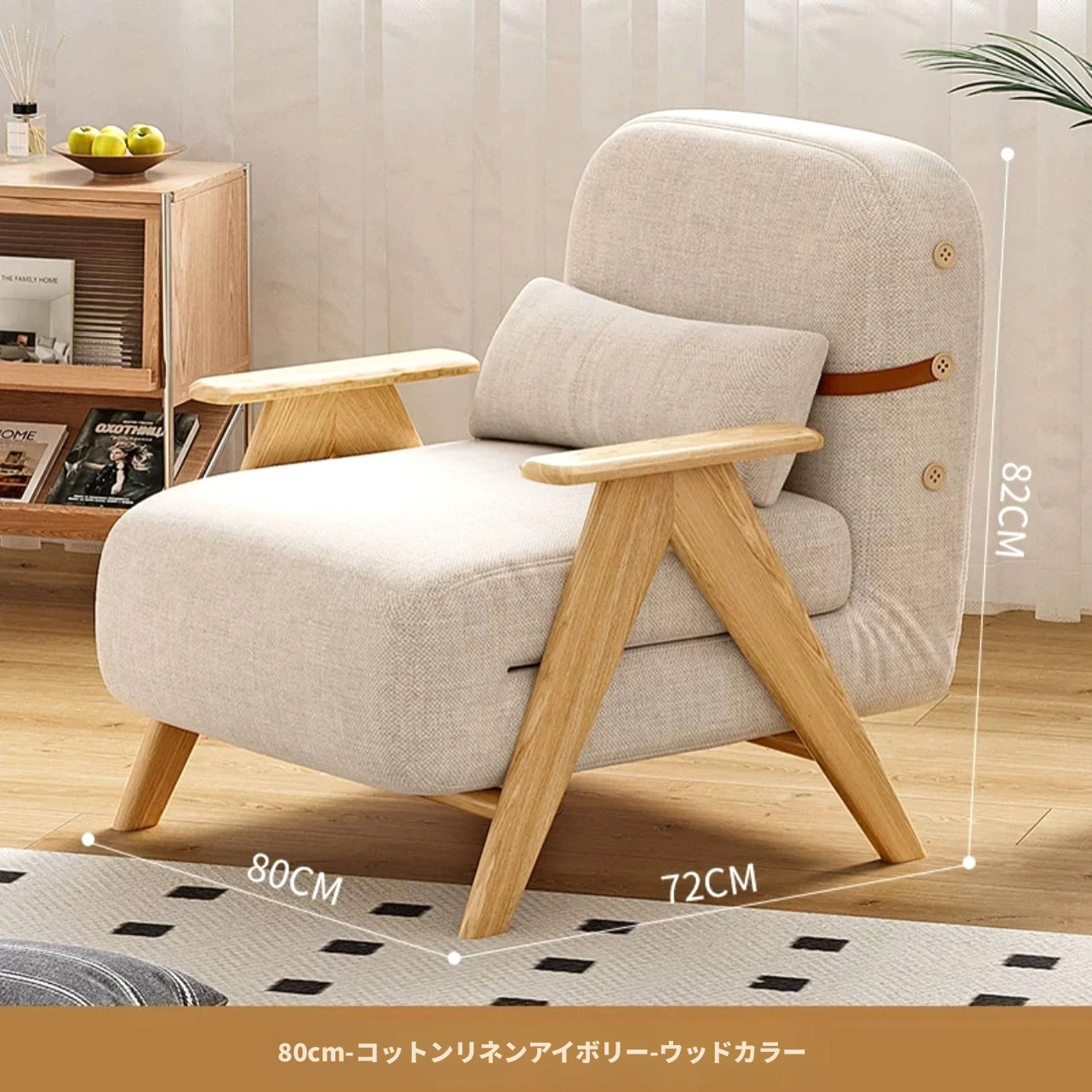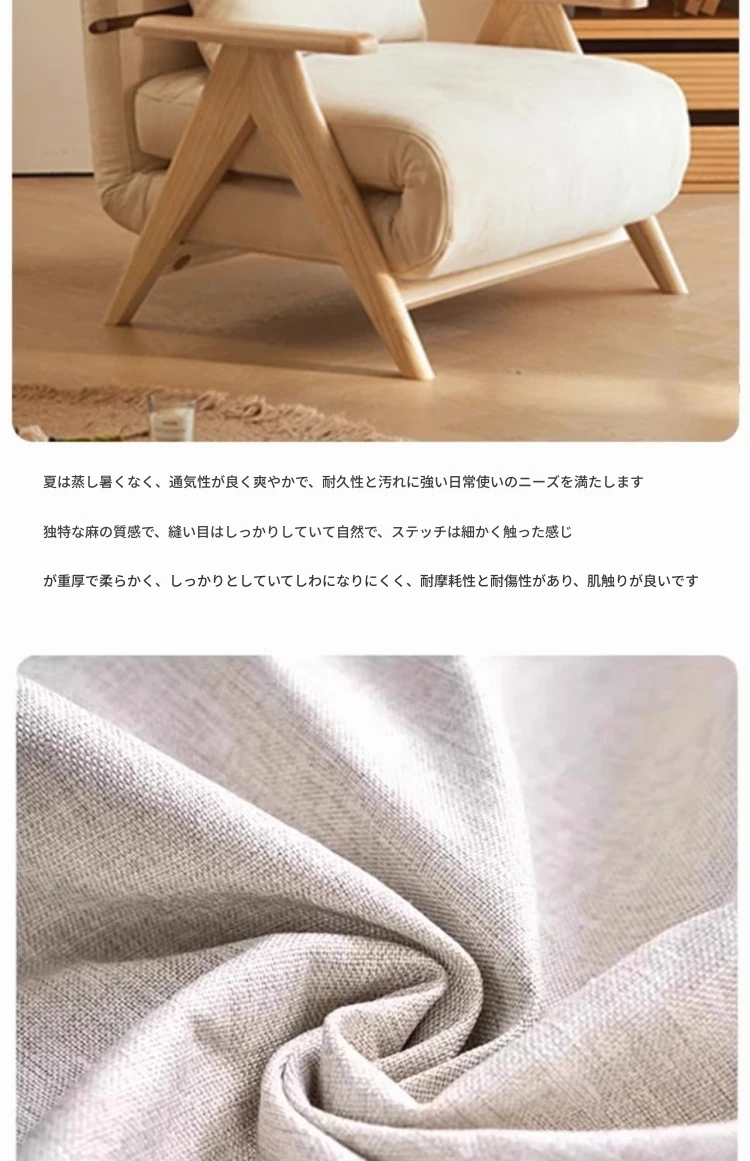 快適なシングルサイズ85cm/アイボリーソファベッド - 肌触りの良いリネン - 天然木風