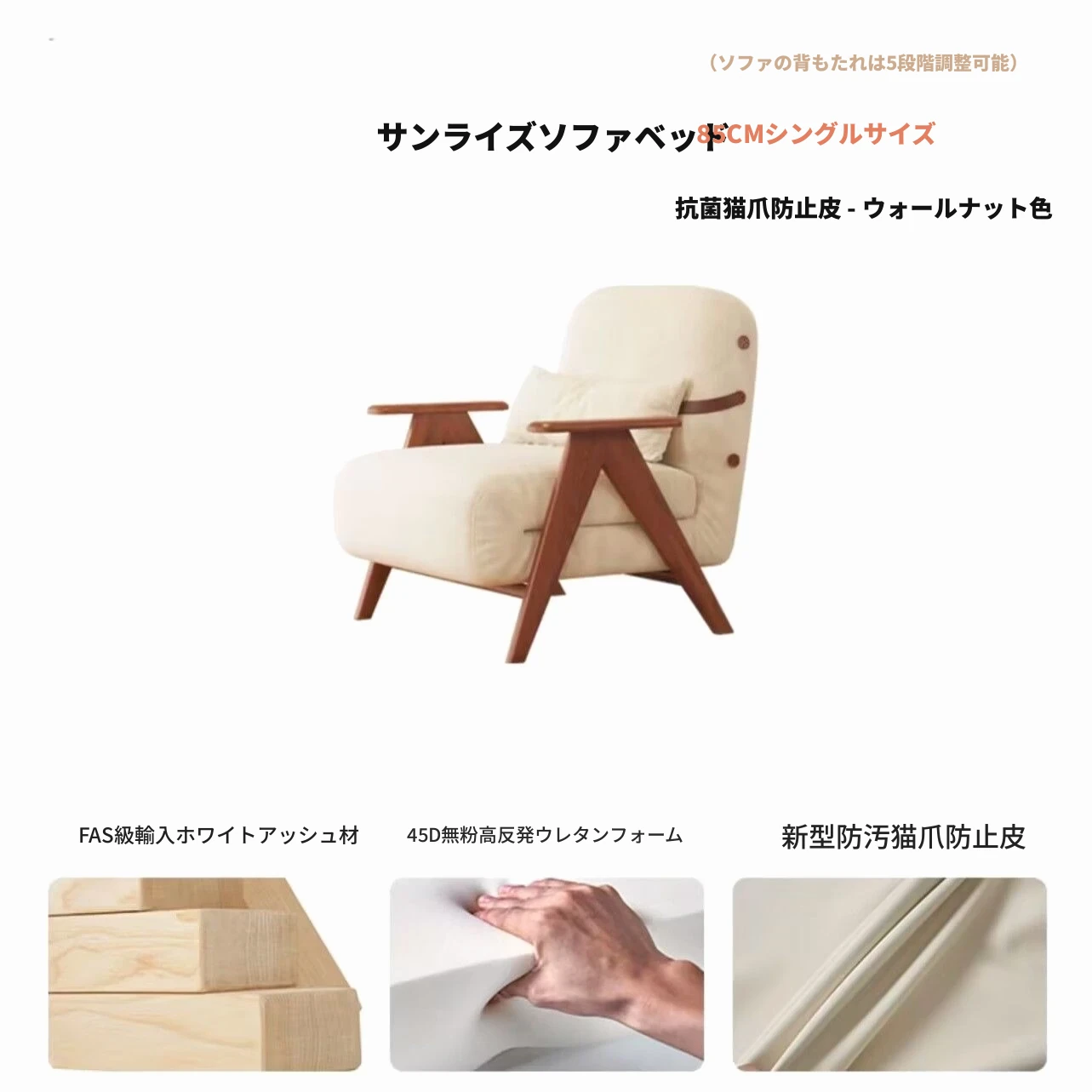 快適なシングルサイズ85cm/アイボリーソファベッド - 5防猫爪皮 - ウォールナット