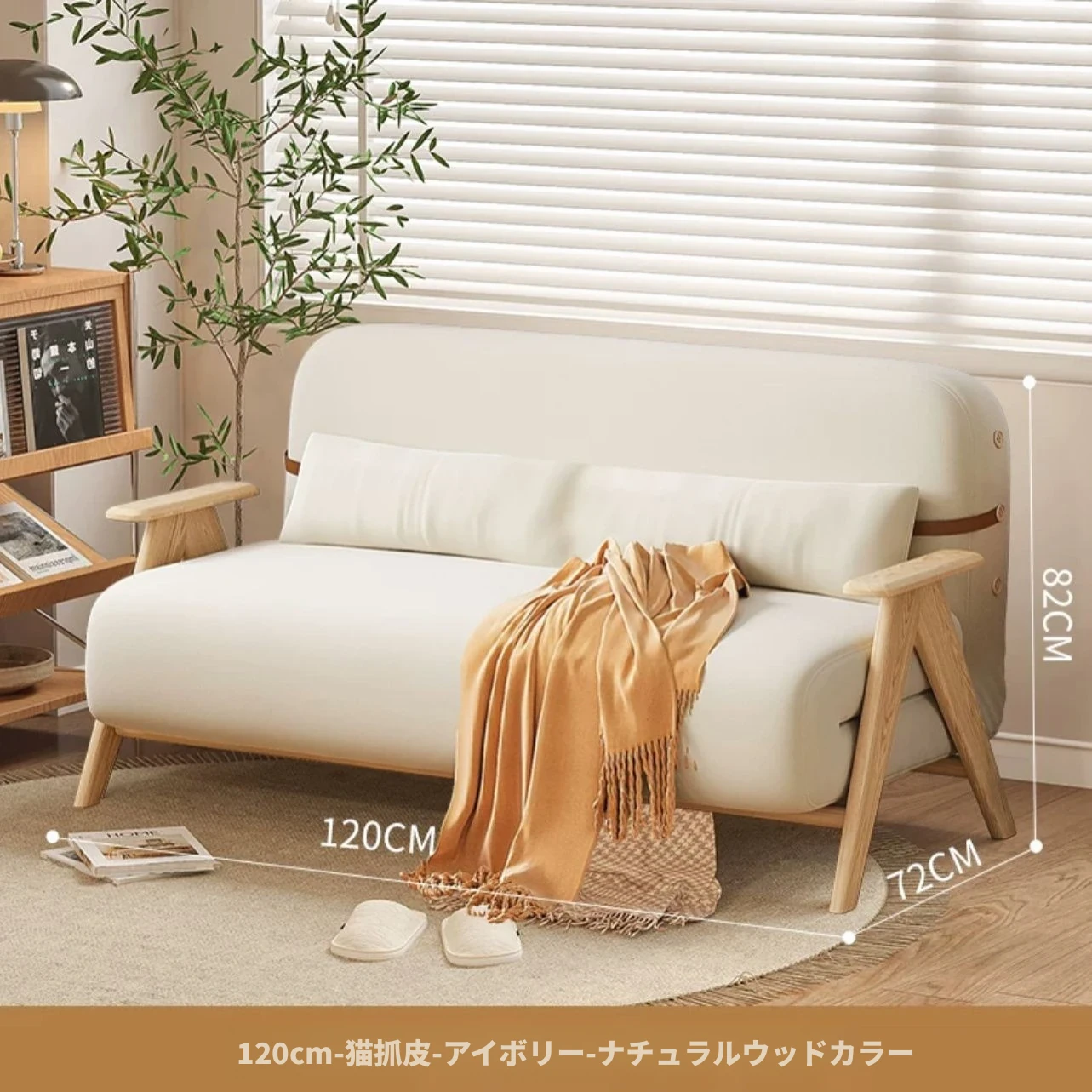 ダブルサイズ120cm/アイボリーソファベッド - 5防猫爪皮 - 天然木