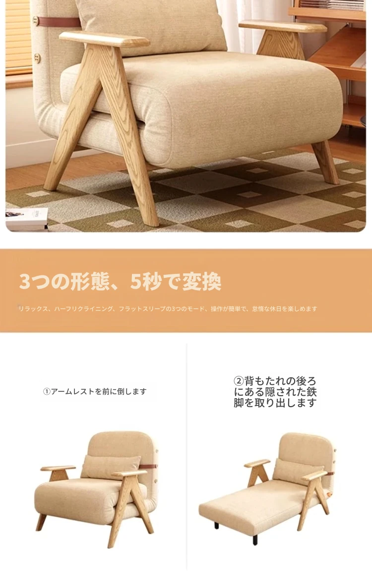 コンパクトでスタイリッシュなリクライニングソファベッド - 折りたたみ式の多機能デザイン、狭いスペースにも最適!新しい家でリラックスしながら、快適な睡眠も実現!