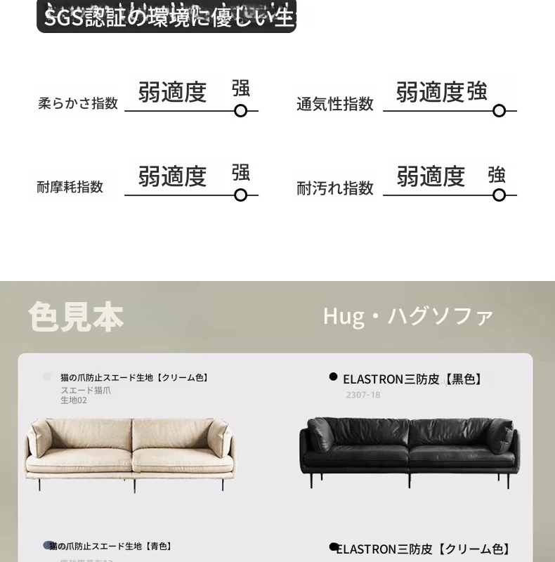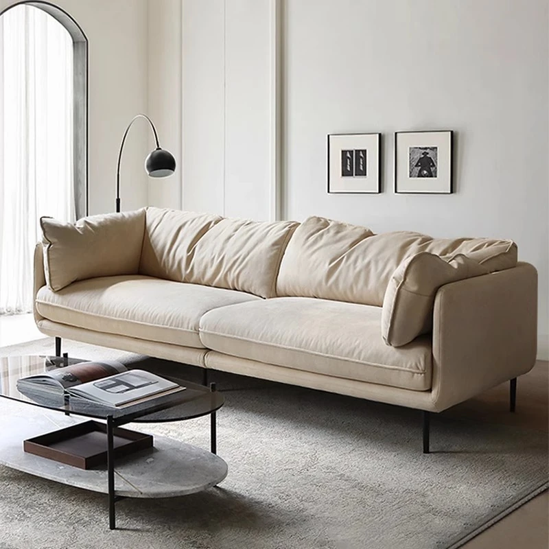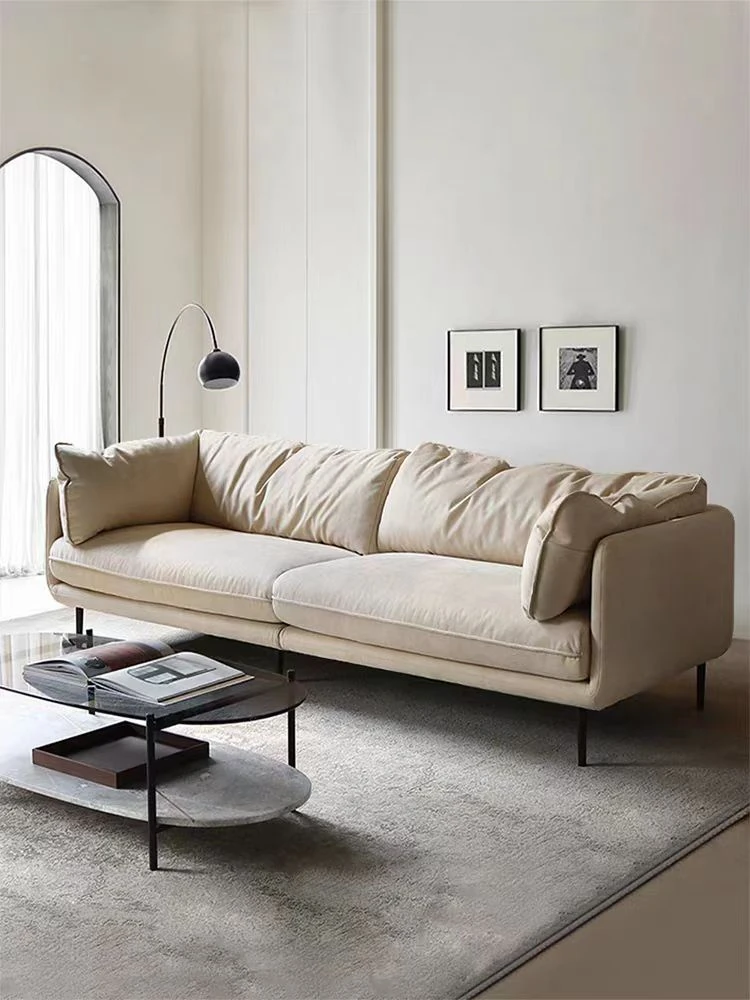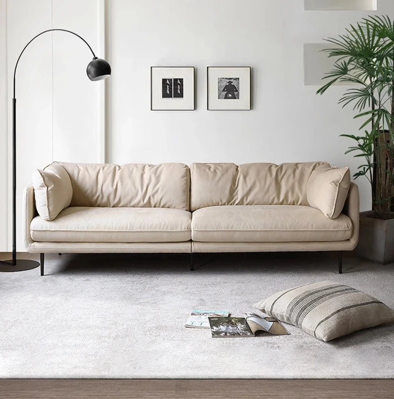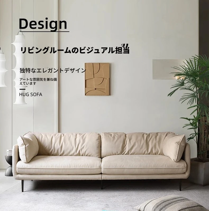 クリーム侘寂風テクノロジー布使用のキャットグラブ防止ハイバックソファー - イタリアンスタイルのコンパクトリビングに最適!おしゃれで機能的なデザインで、あなたの居心地の良い空間を演出します。