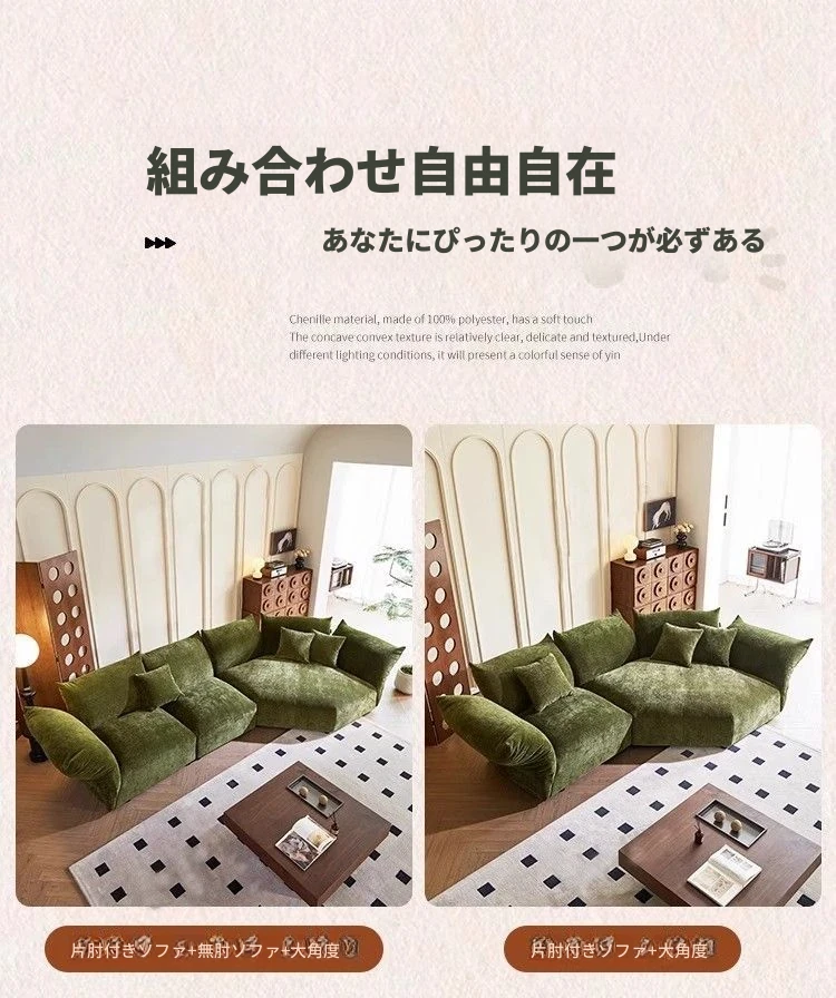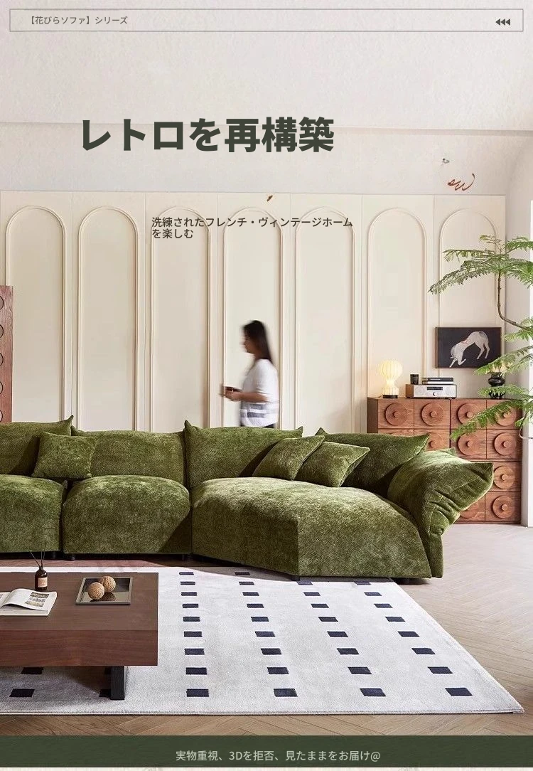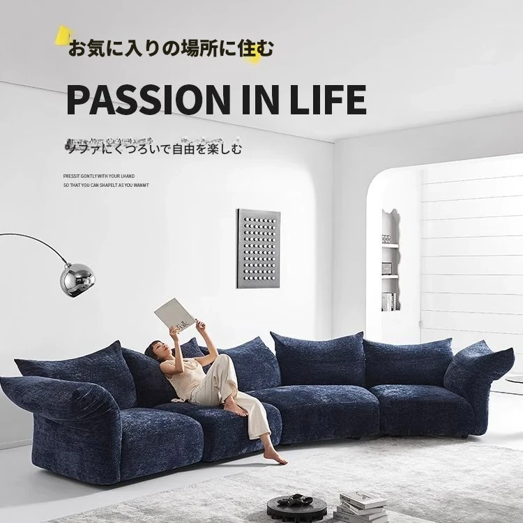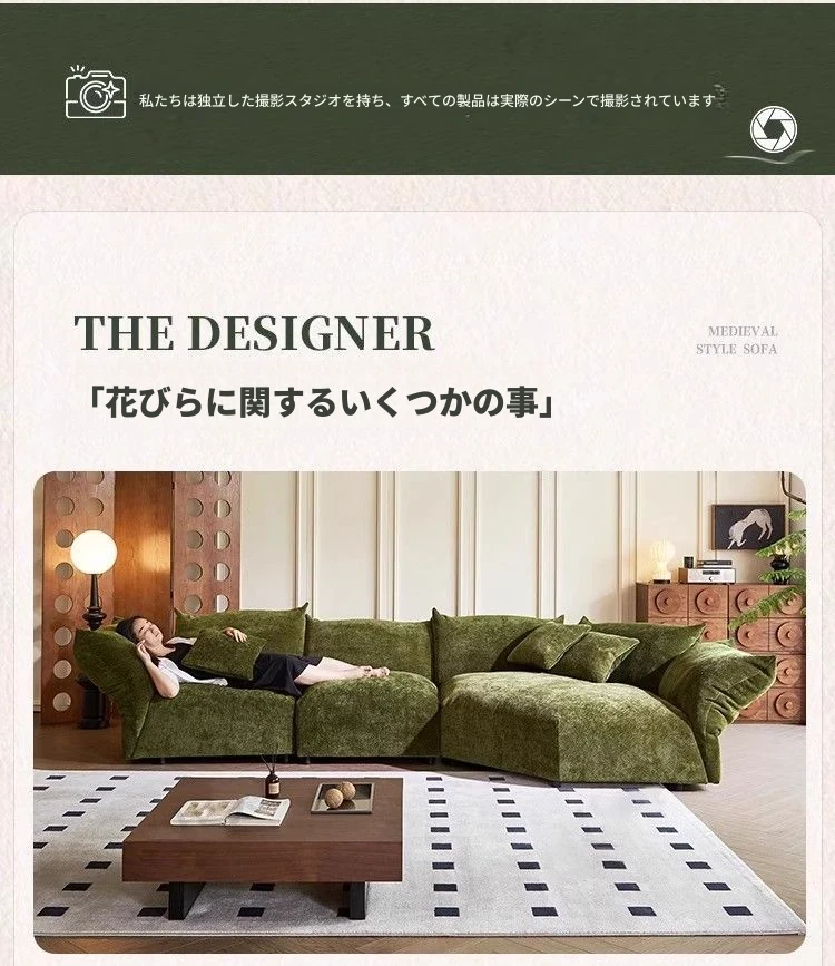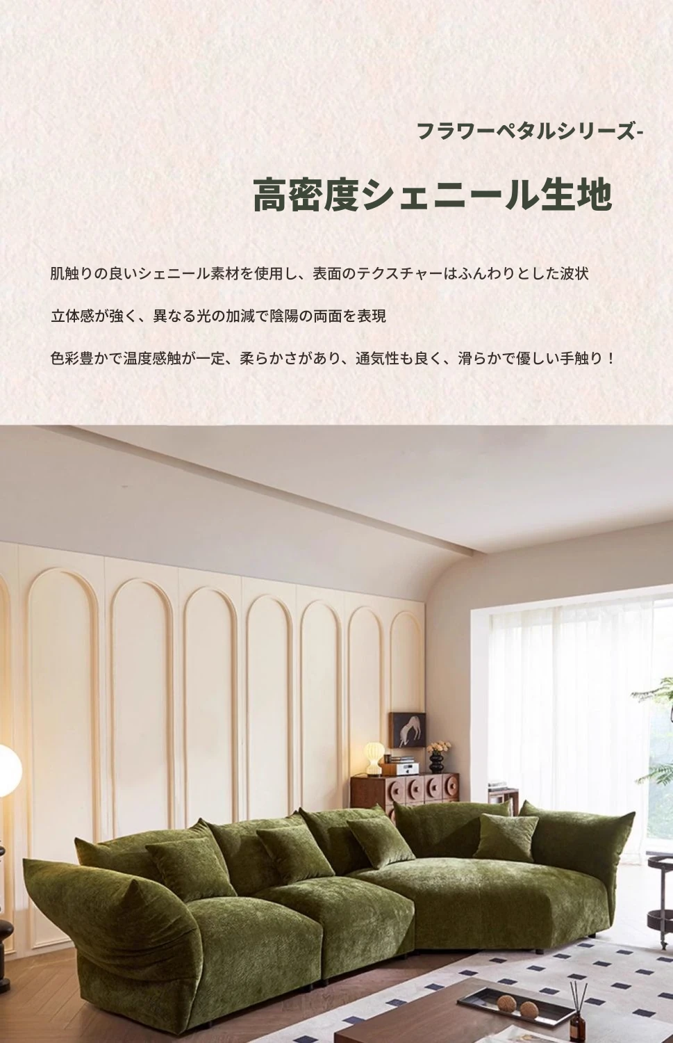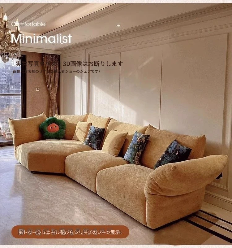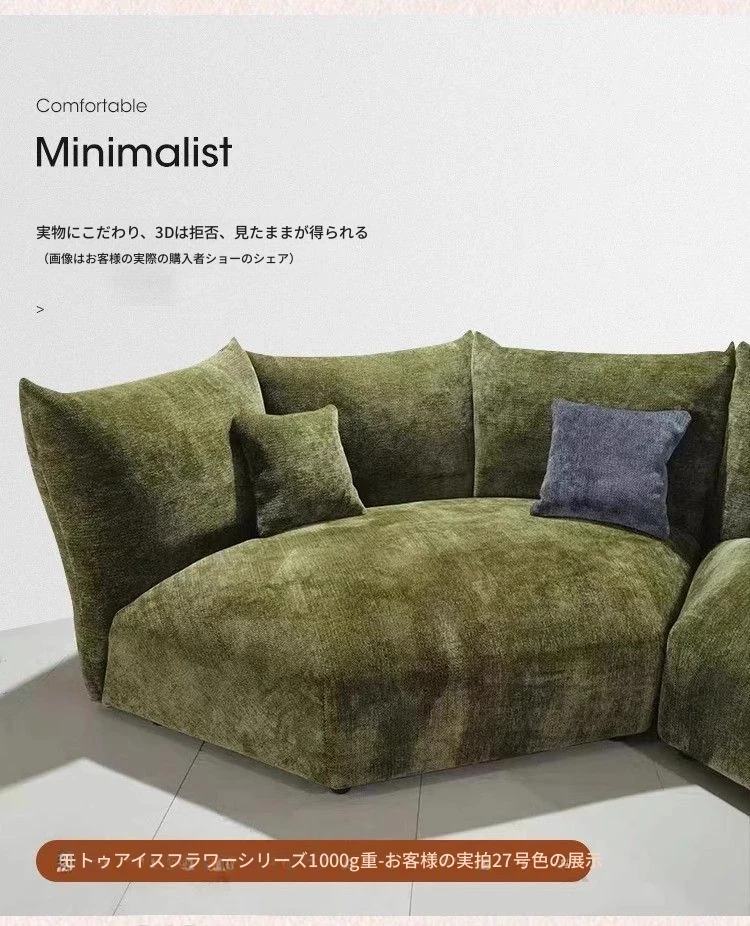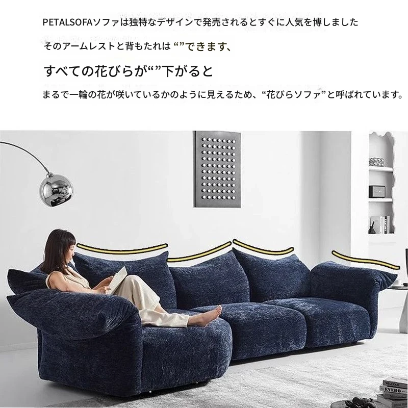 デザイナーズイタリアンフラワーペタルソファ - 新作シェニールモジュラーソファ、大リビングにも対応、布製クリーム色ソファで快適な空間を演出!
