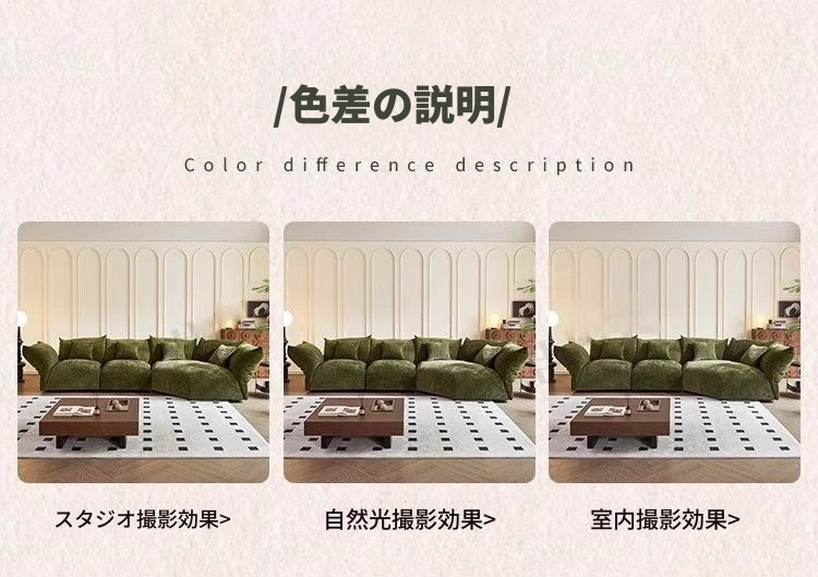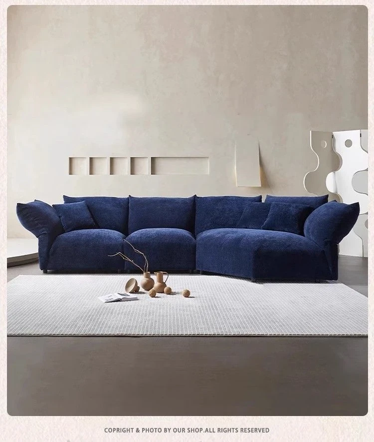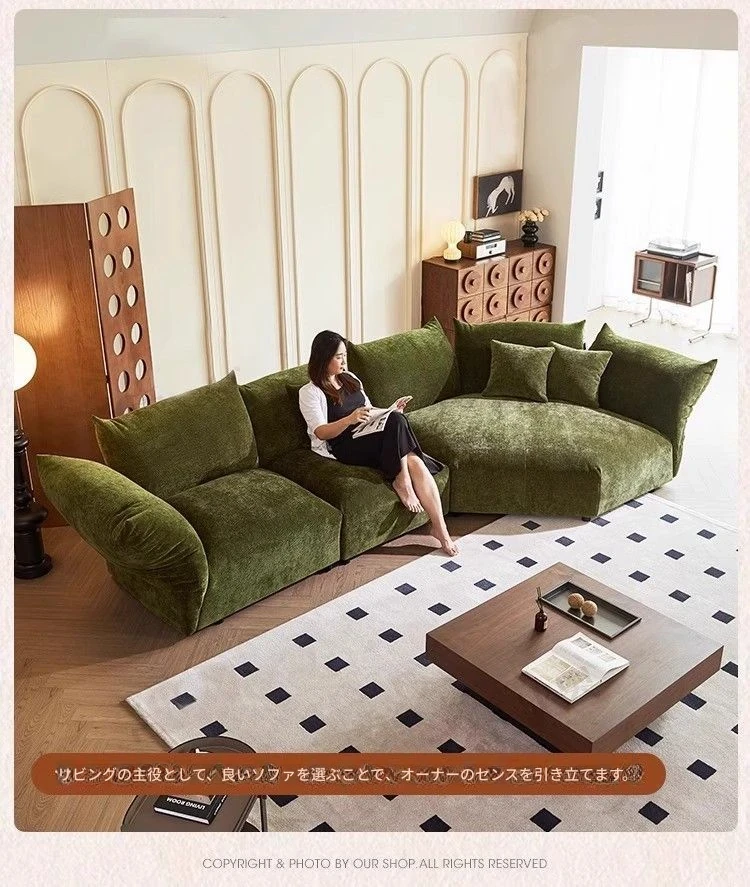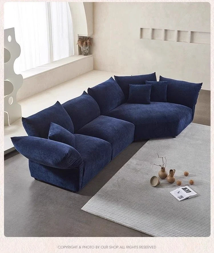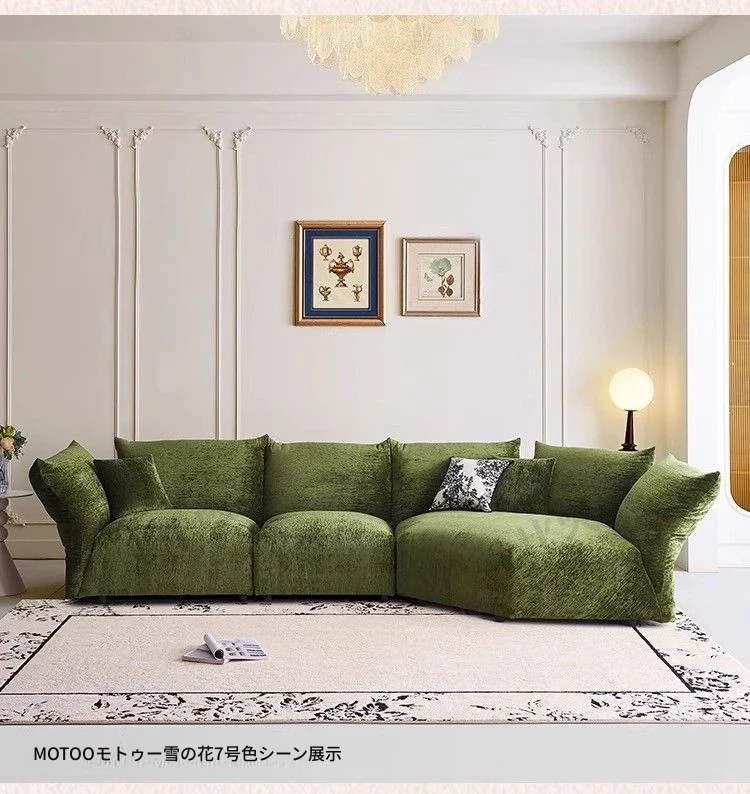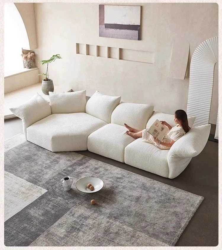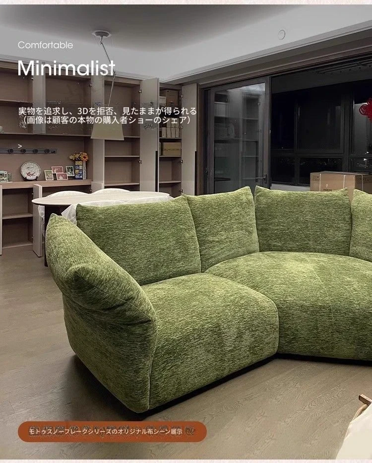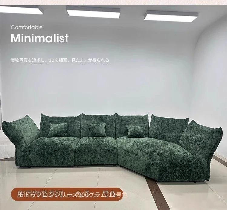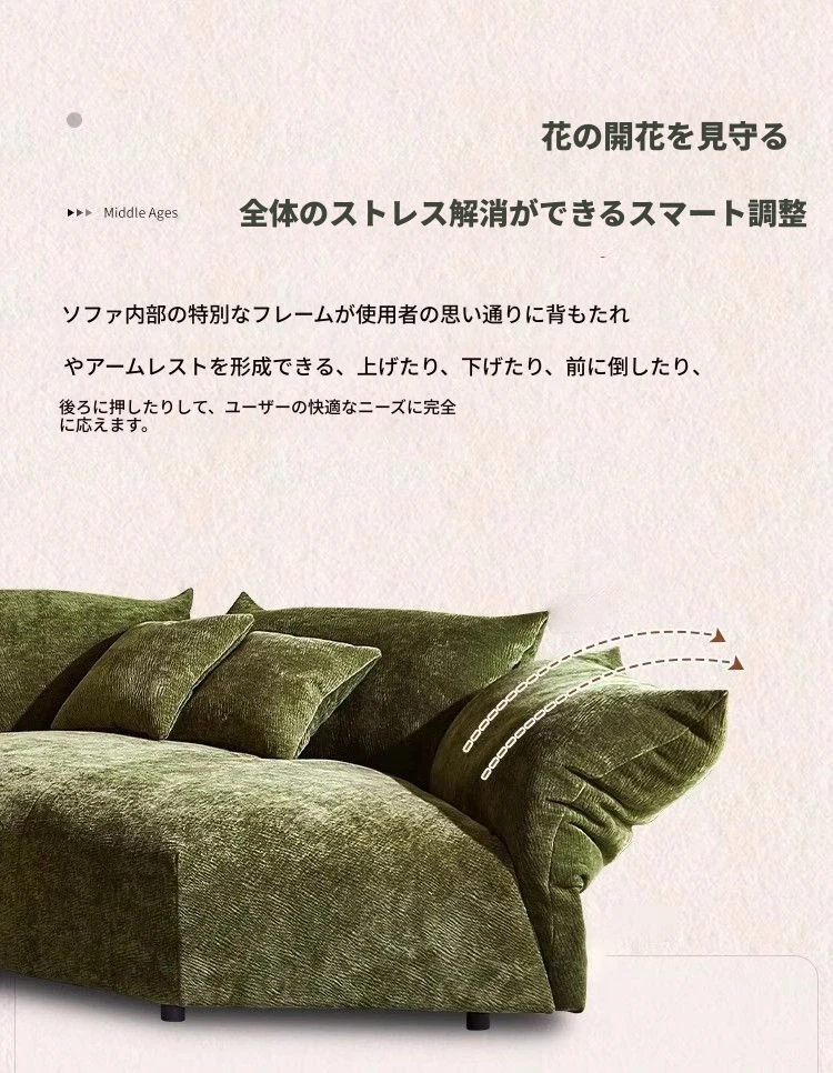 デザイナーズイタリアンフラワーペタルソファ - 新作シェニールモジュラーソファ、大リビングにも対応、布製クリーム色ソファで快適な空間を演出!