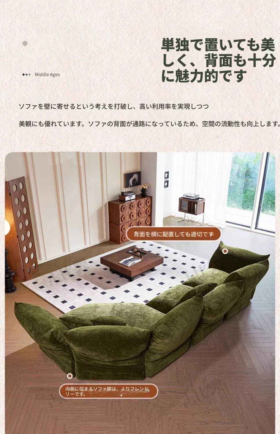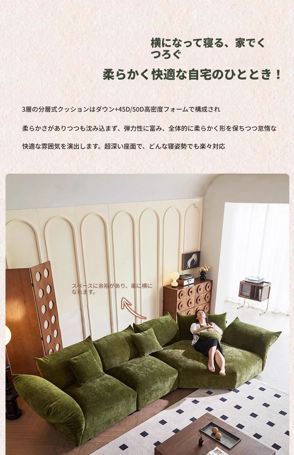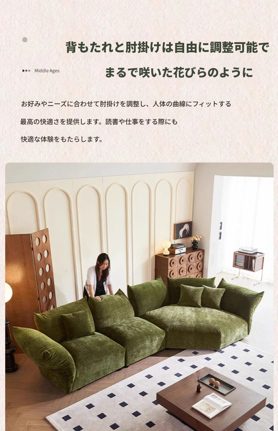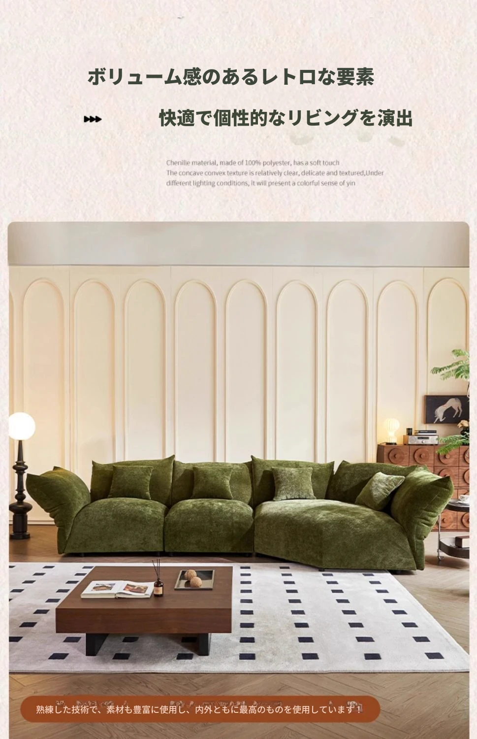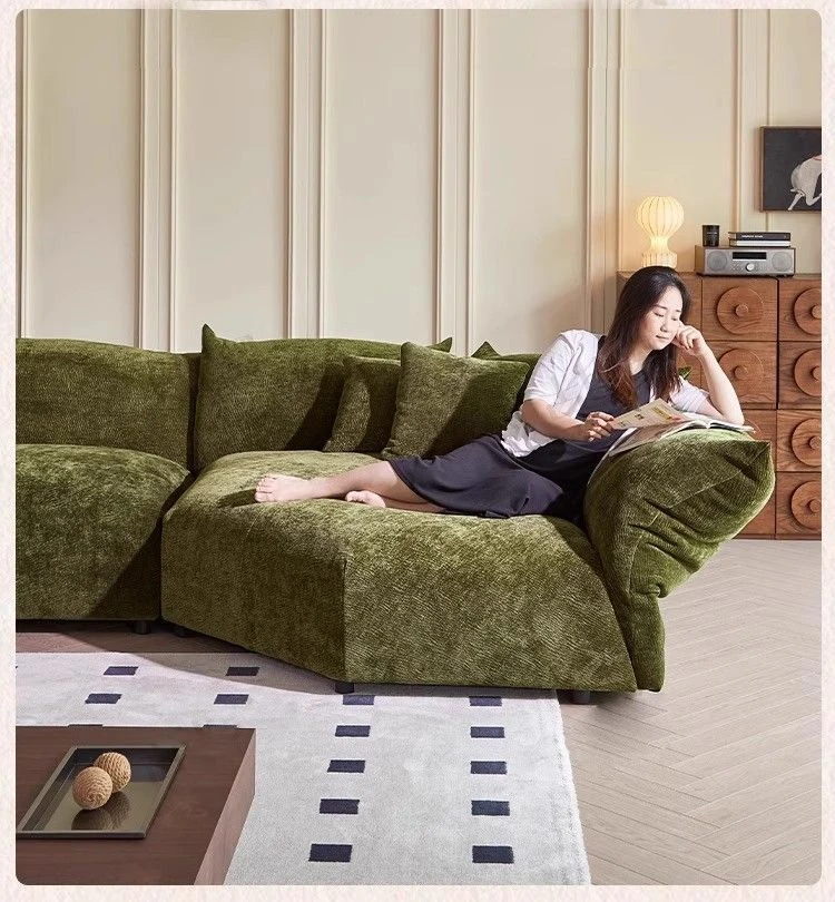 デザイナーズイタリアンフラワーペタルソファ - 新作シェニールモジュラーソファ、大リビングにも対応、布製クリーム色ソファで快適な空間を演出!