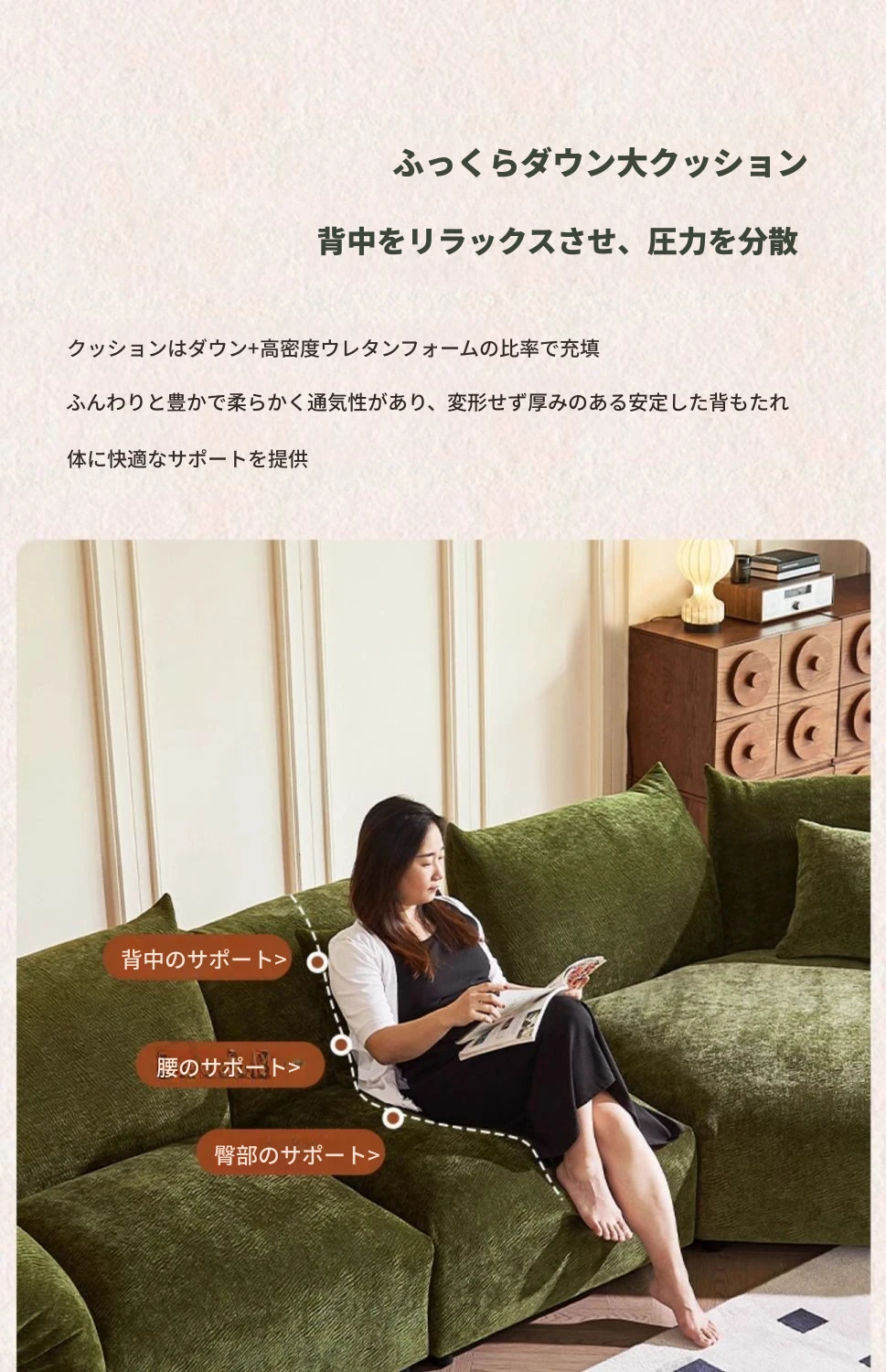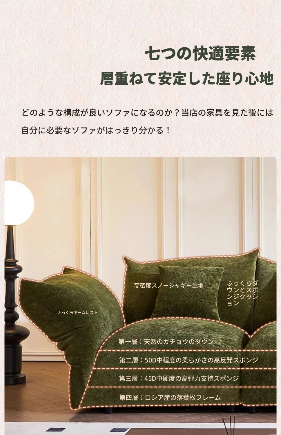 高級シェニール生地【50D高弾性スポンジ座包】