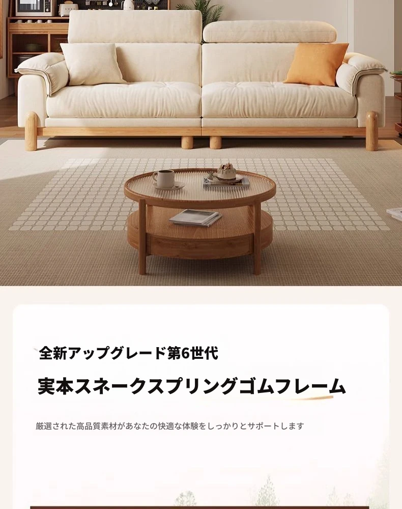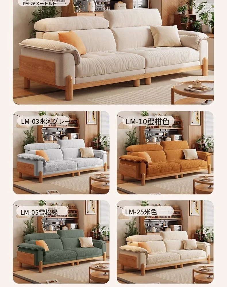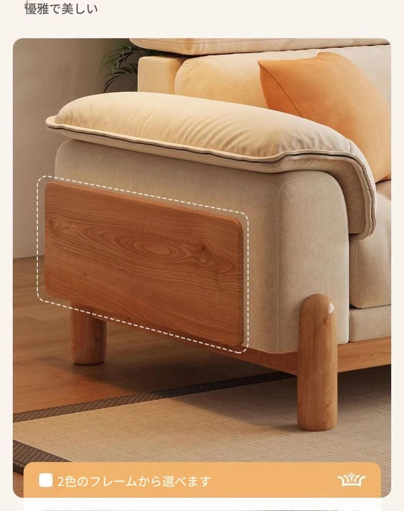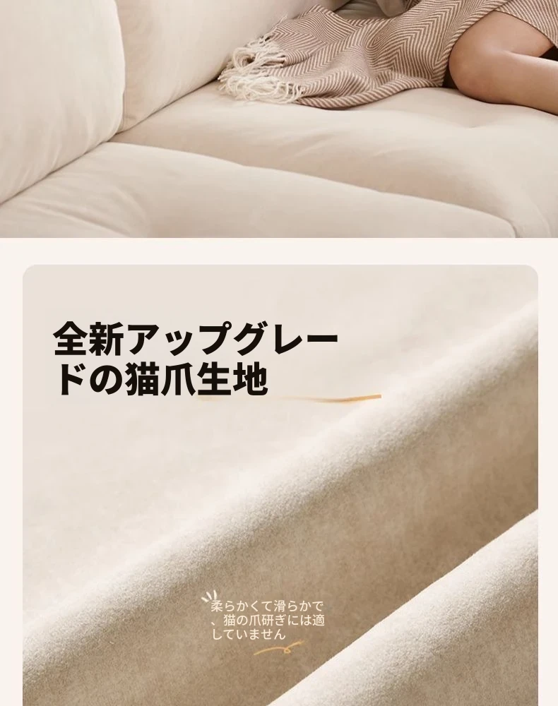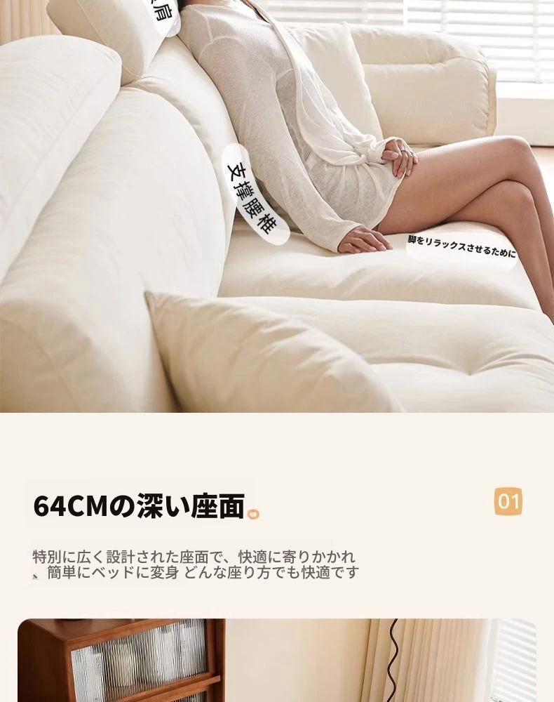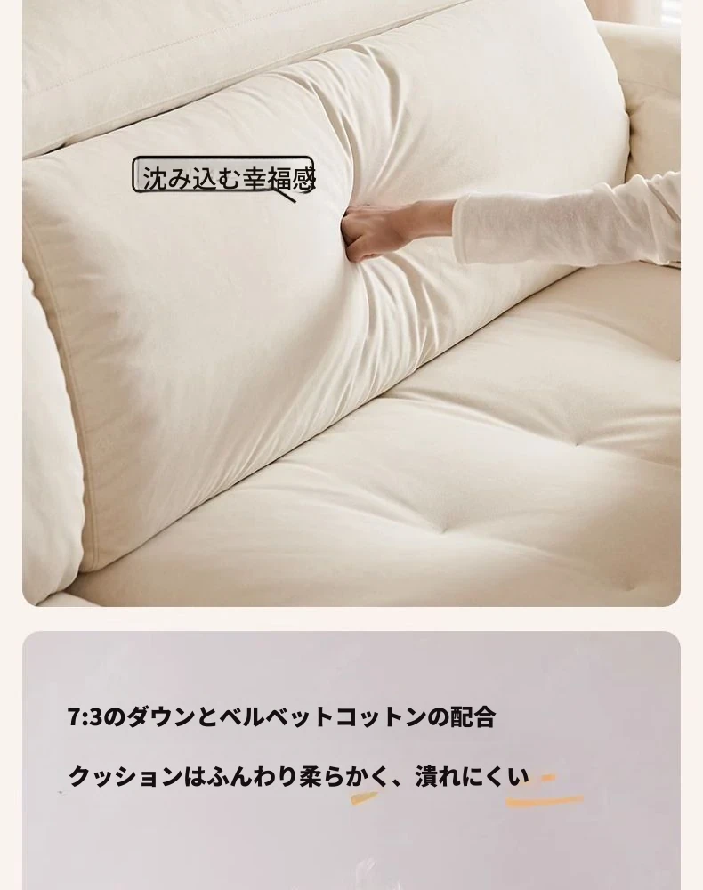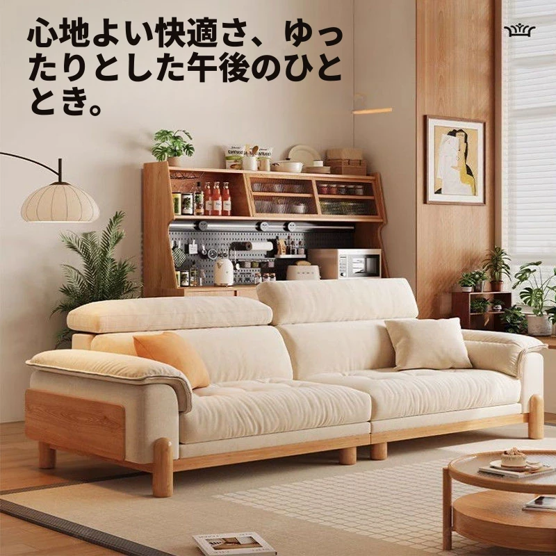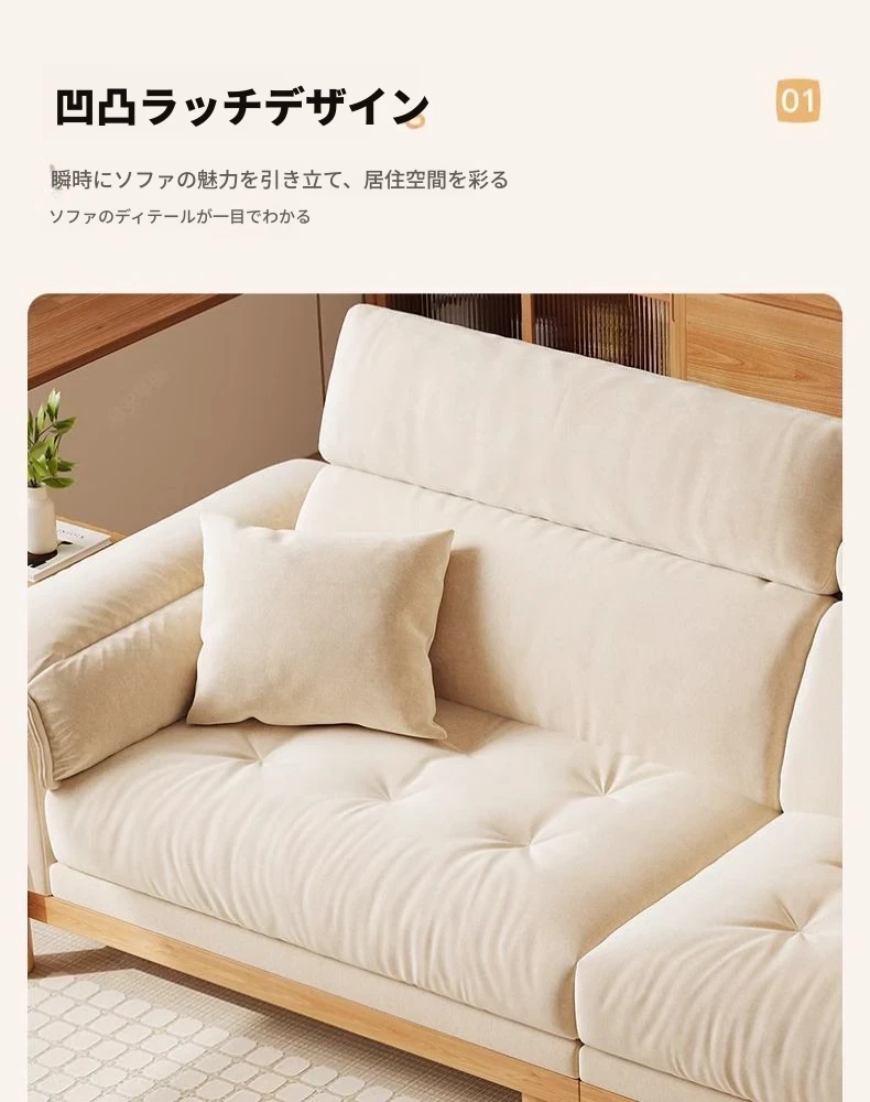 デジット天然木フランネル雲朵ソファ - クリーム風の小型リビングに最適!シンプルで洗えるデザイン、広々とした空間を演出する直線的なファブリックソファ。おしゃれな大人の空間を実現!