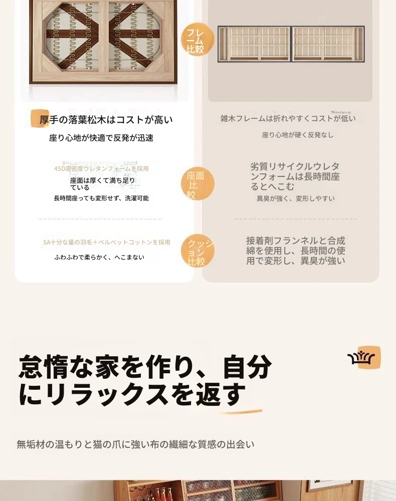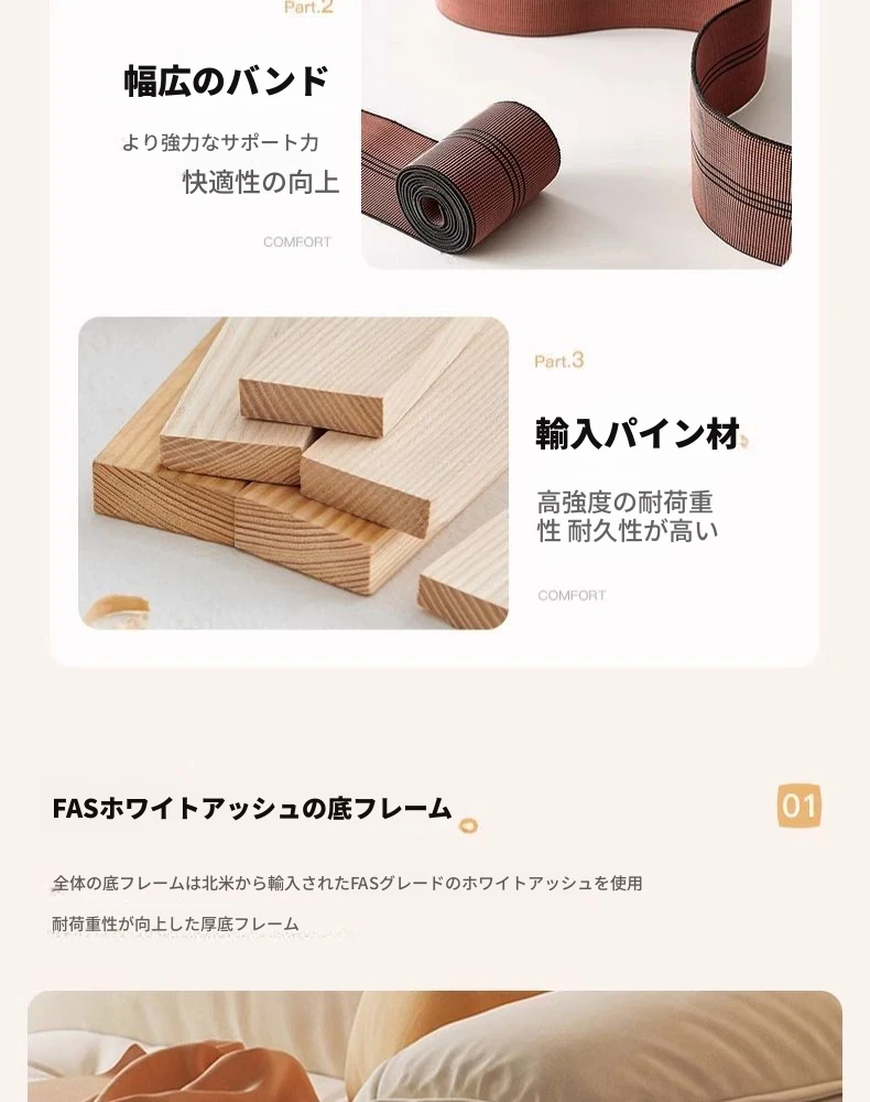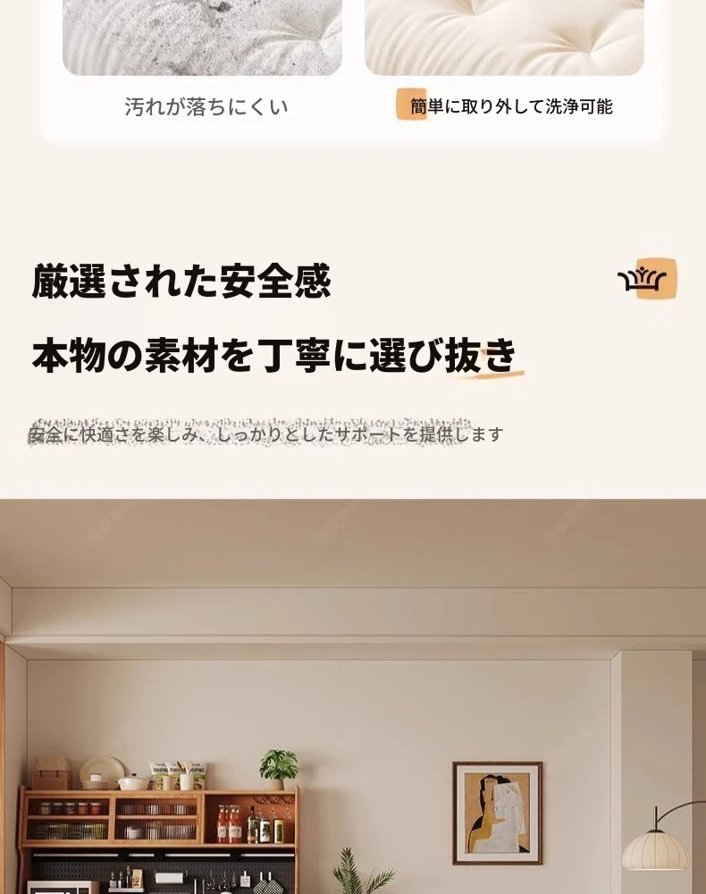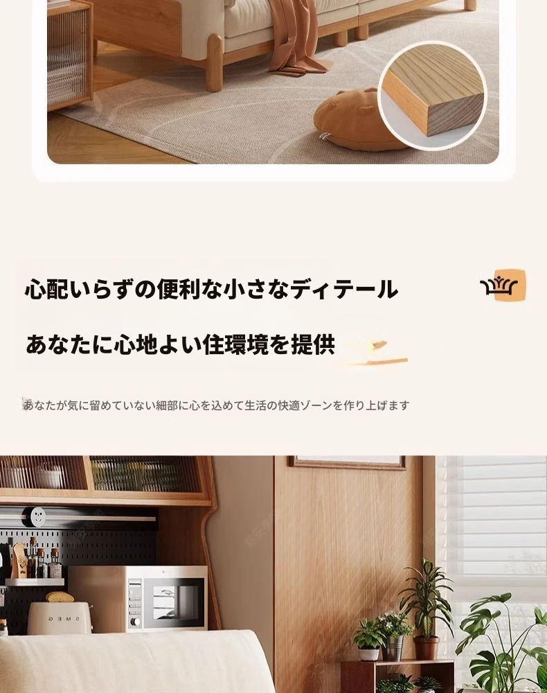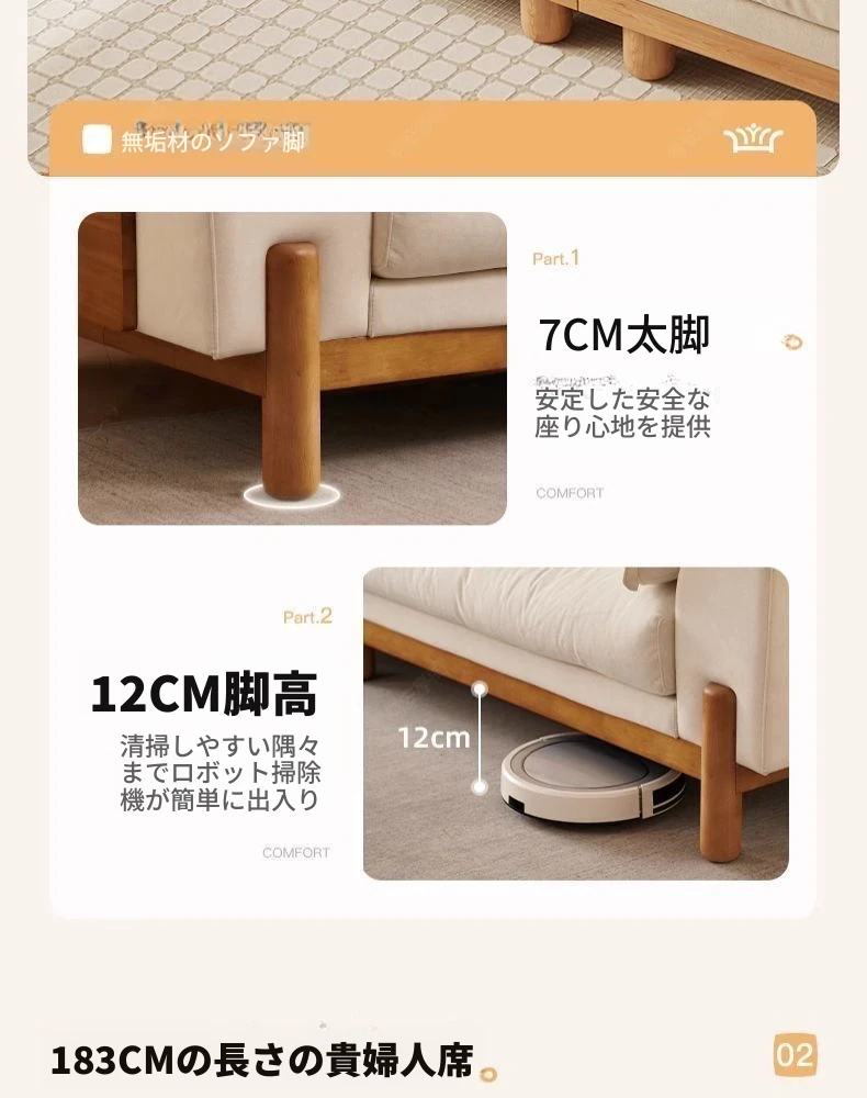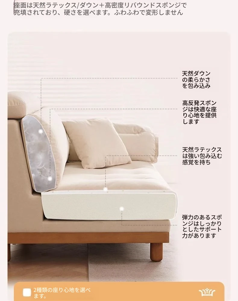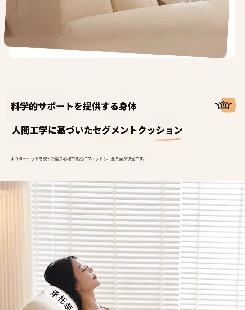 デジット天然木フランネル雲朵ソファ - クリーム風の小型リビングに最適!シンプルで洗えるデザイン、広々とした空間を演出する直線的なファブリックソファ。おしゃれな大人の空間を実現!
