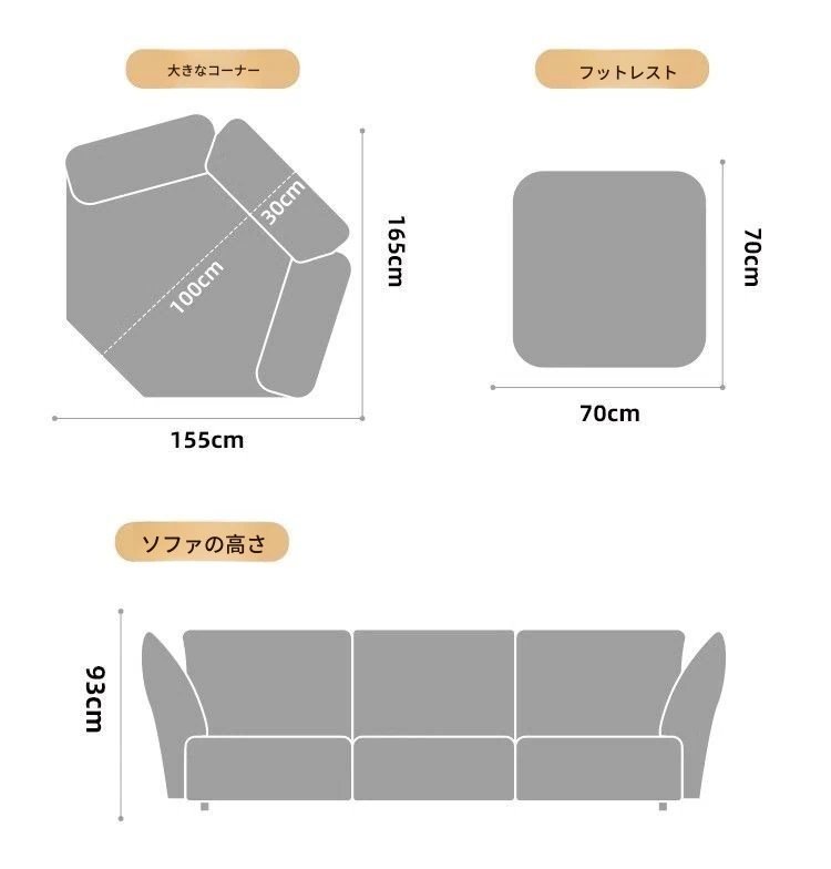 シングルソファ+小さなコーナー+大きなコーナー3.35m
