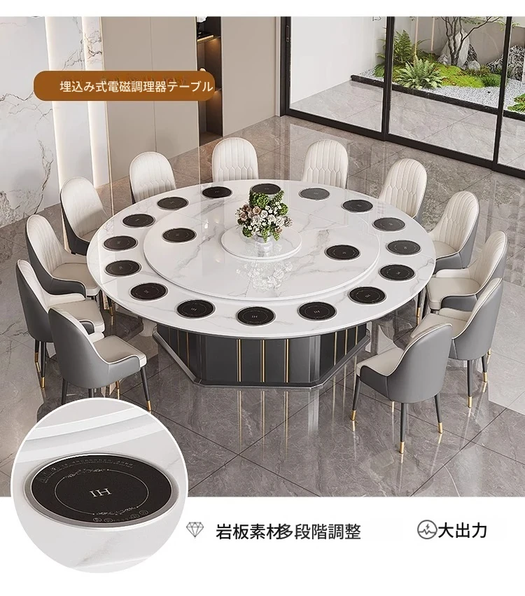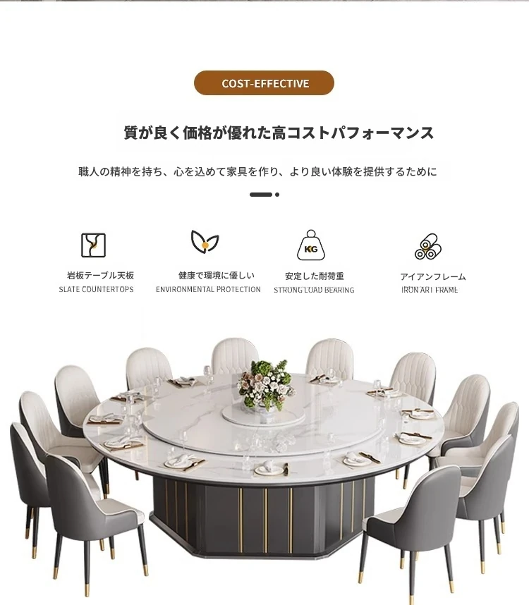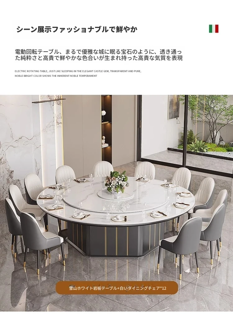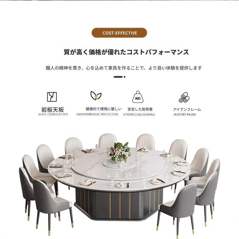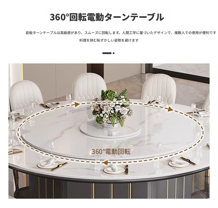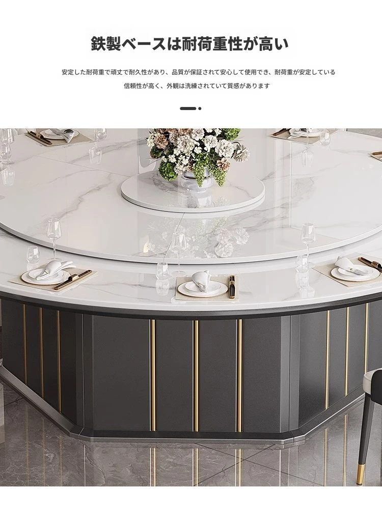 高級感溢れる岩板電動ダイニングテーブル!ホテルやレストランに最適な大サイズ、2m・3mで15人収容可能な円卓。特別な食事体験を提供し、ビジネスシーンにもぴったり!